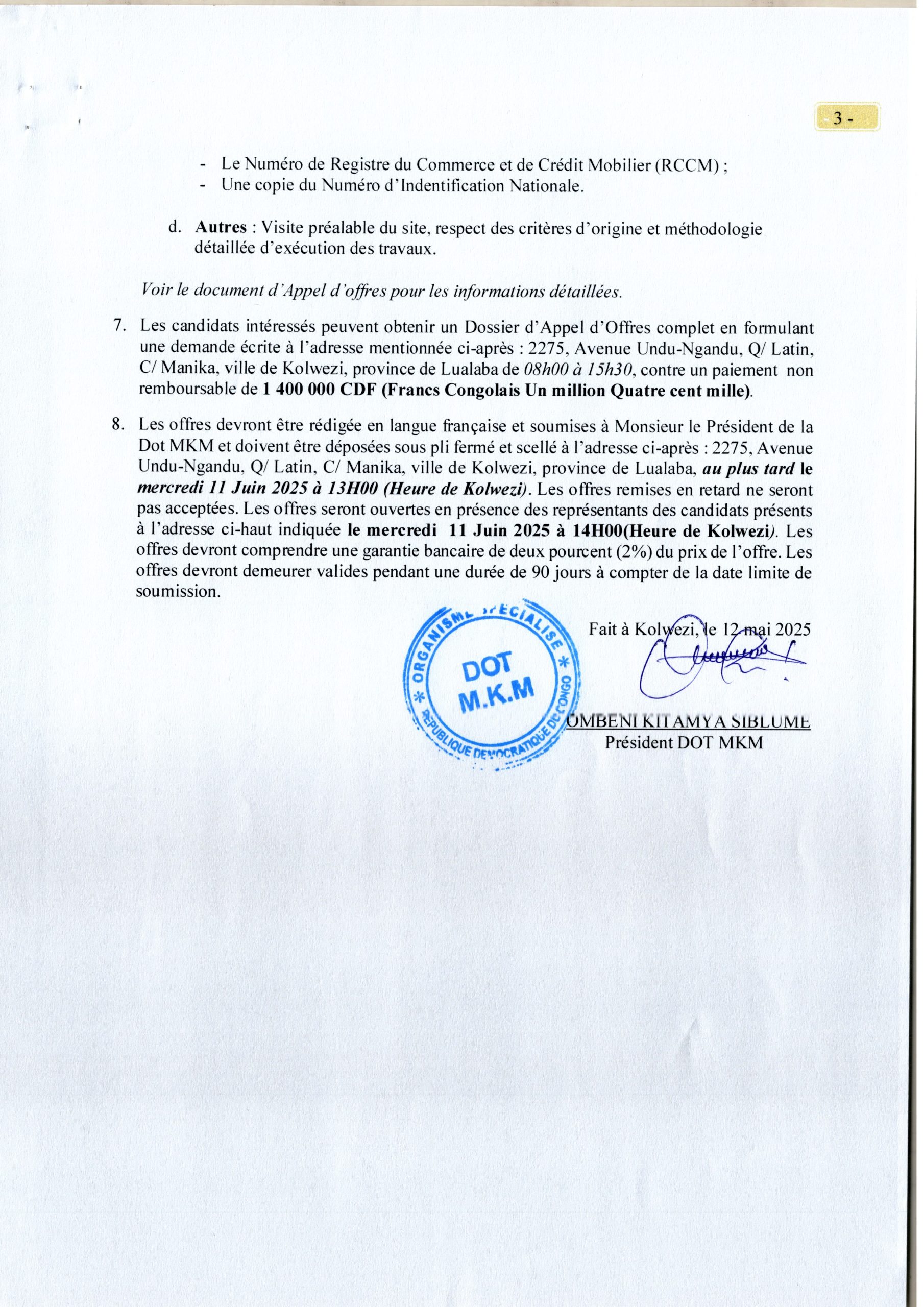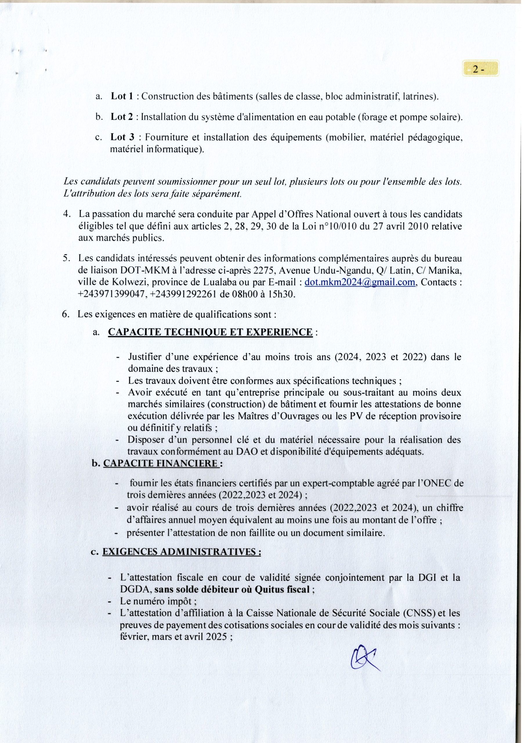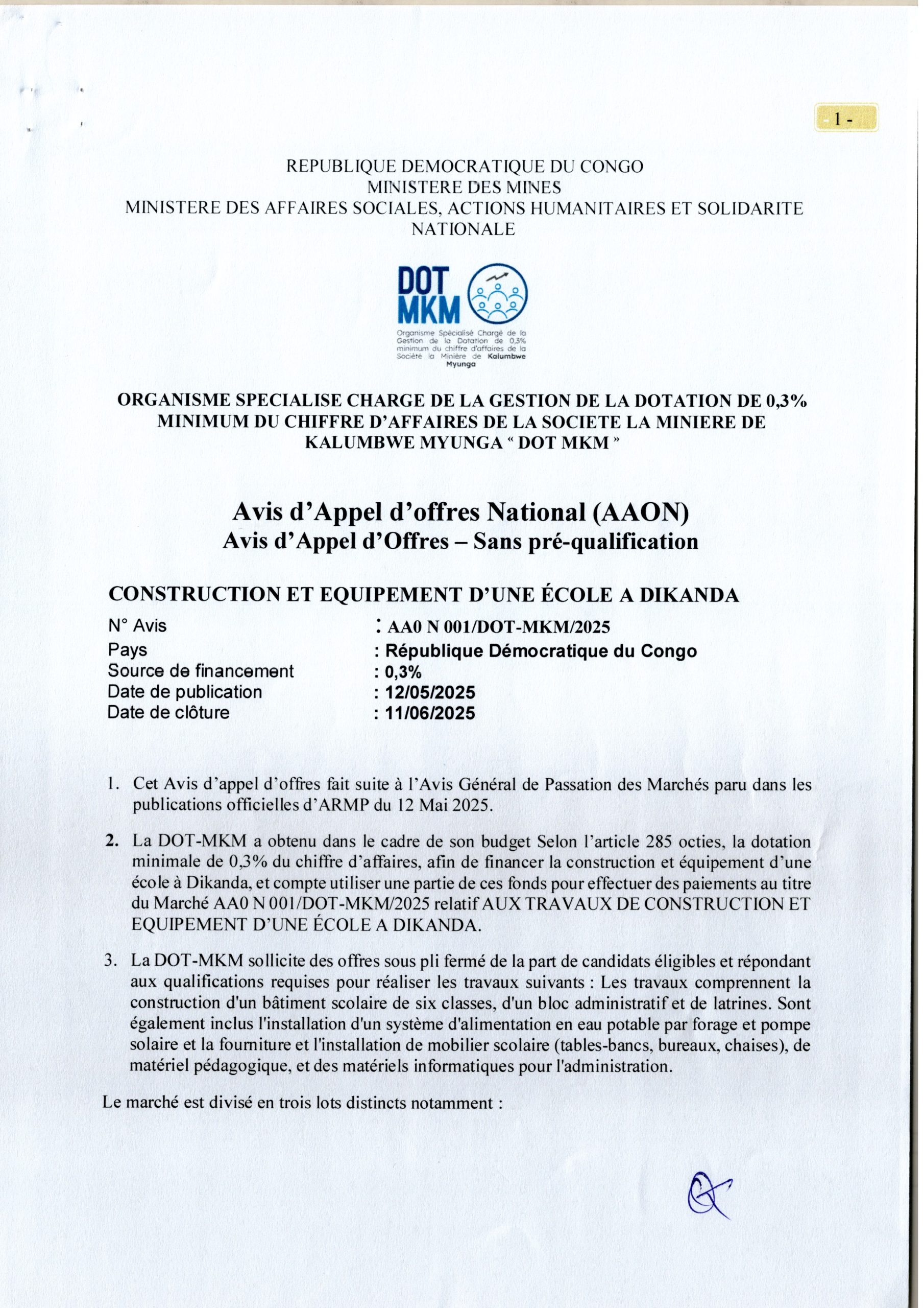Attribution provisoire accordée à l’Entreprise ZS AFRICA SOLUTION relative à la Construction (Rénovation) du mess Mumbunda de la Gécamines