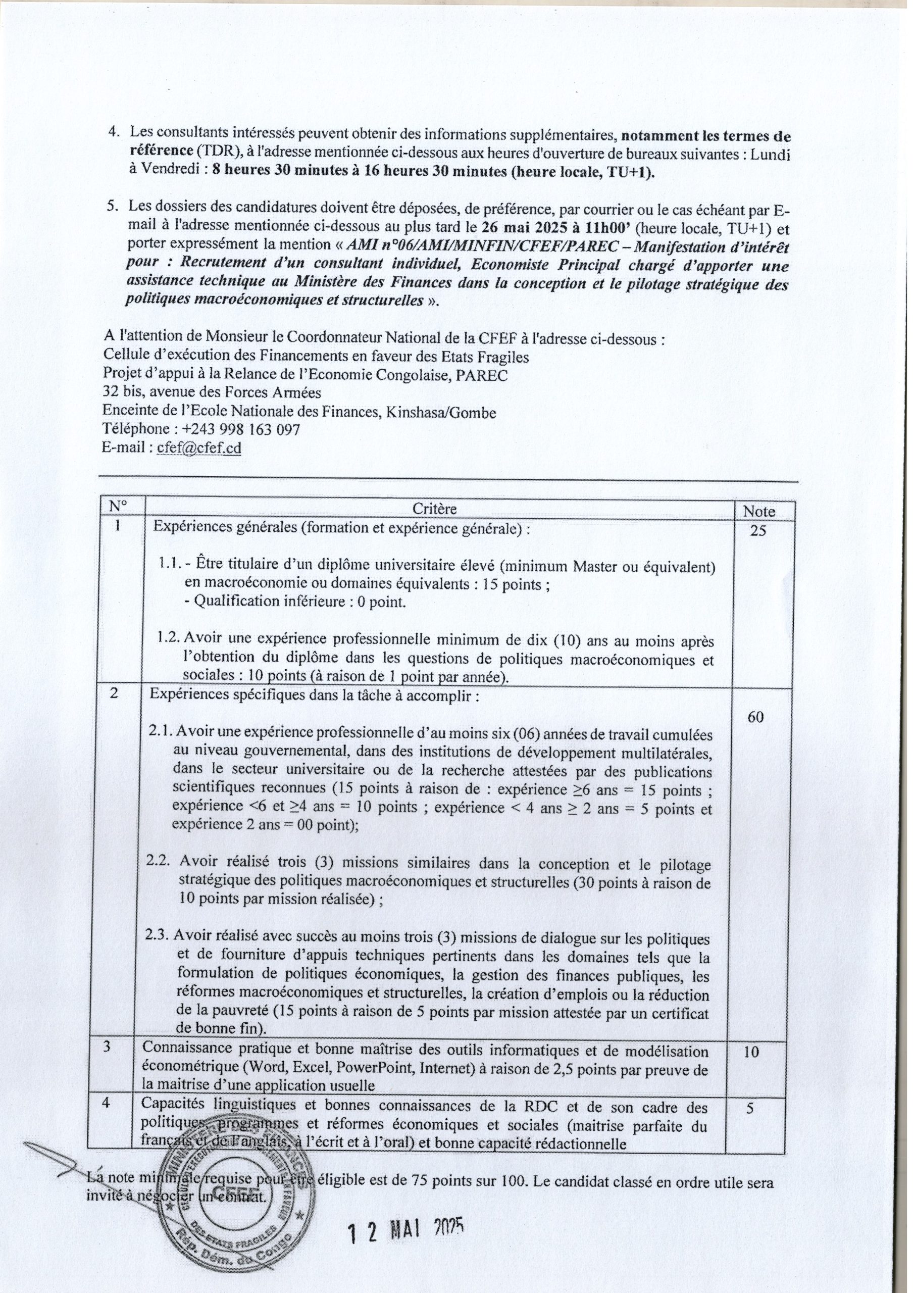 Recrutement d’un consultant individuel Économiste Principal chargé d’apporter une assistance technique au Ministère des Finances dans la conception et le pilotage stratégique des politiques macroéconomiques et structurelles.