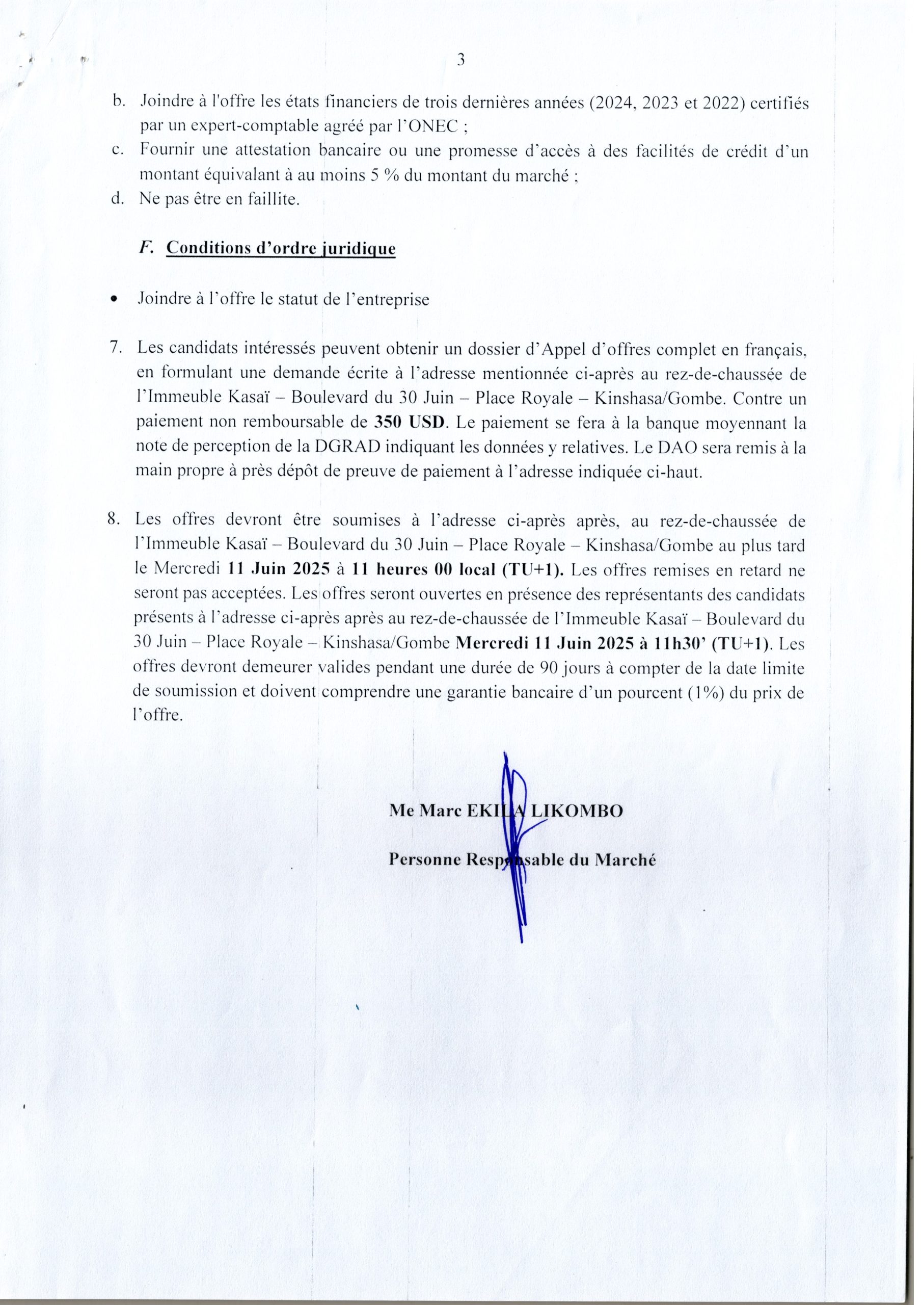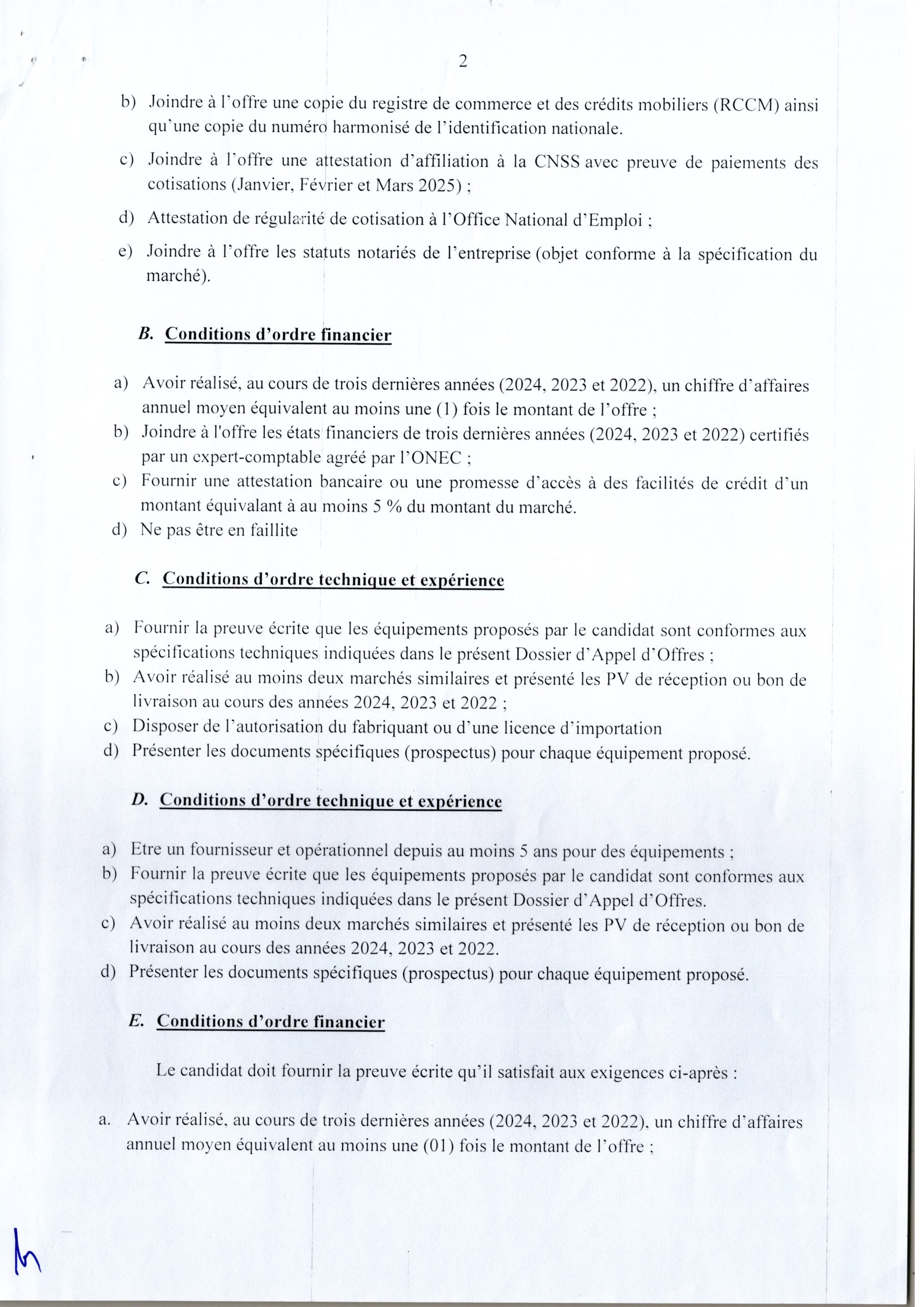 attribution accordée à FICAOGRANT THORNTON relative à la Prestation de services d’audit des comptes du Projet d’Appui à la Connectivité et Transport (PACT) pour les exercices 2024, 2025 et 2026