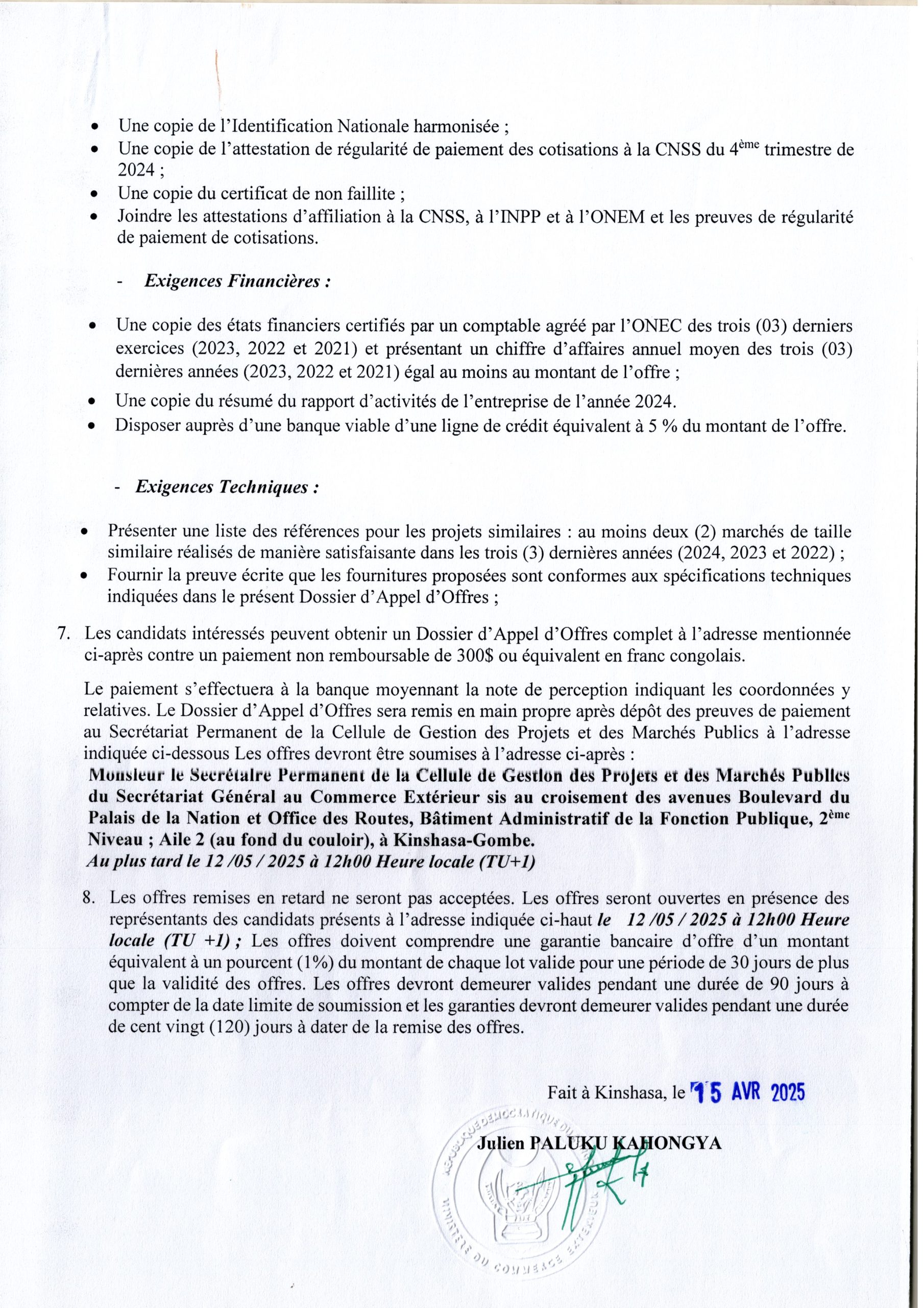 Décision d’attribution provisoire accordée à l’Etablissements ESSOR EQUIPEMENTS Sarl “ETS ESSOR” relative à l’acquisition des équipements et dispositifs médicaux au profit des FARDC et la Police Nationale Congolaise.