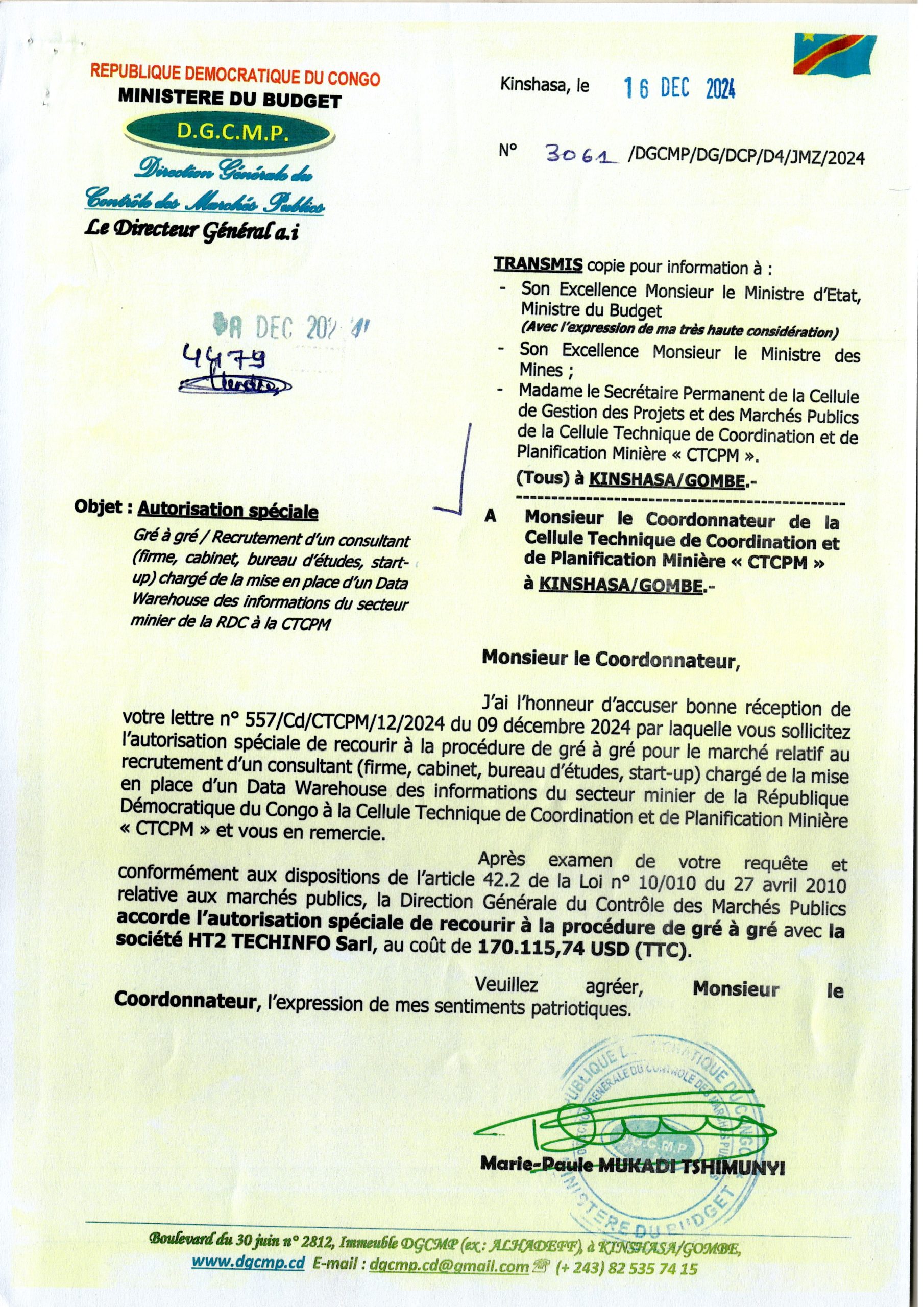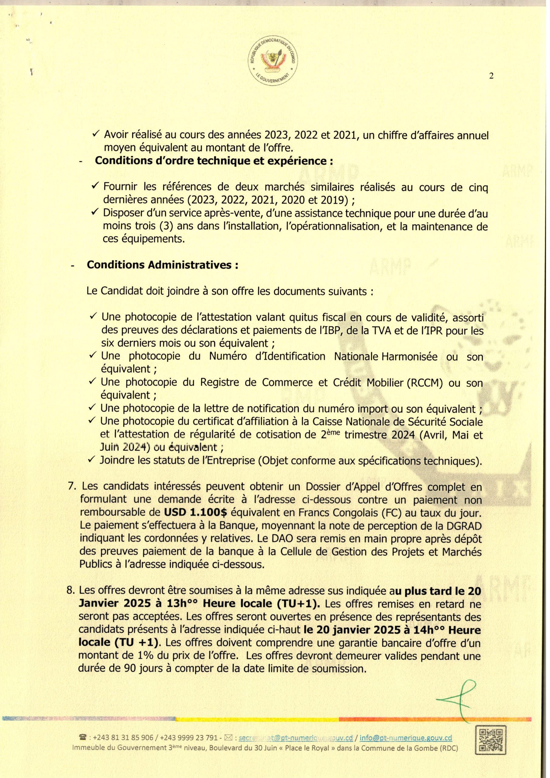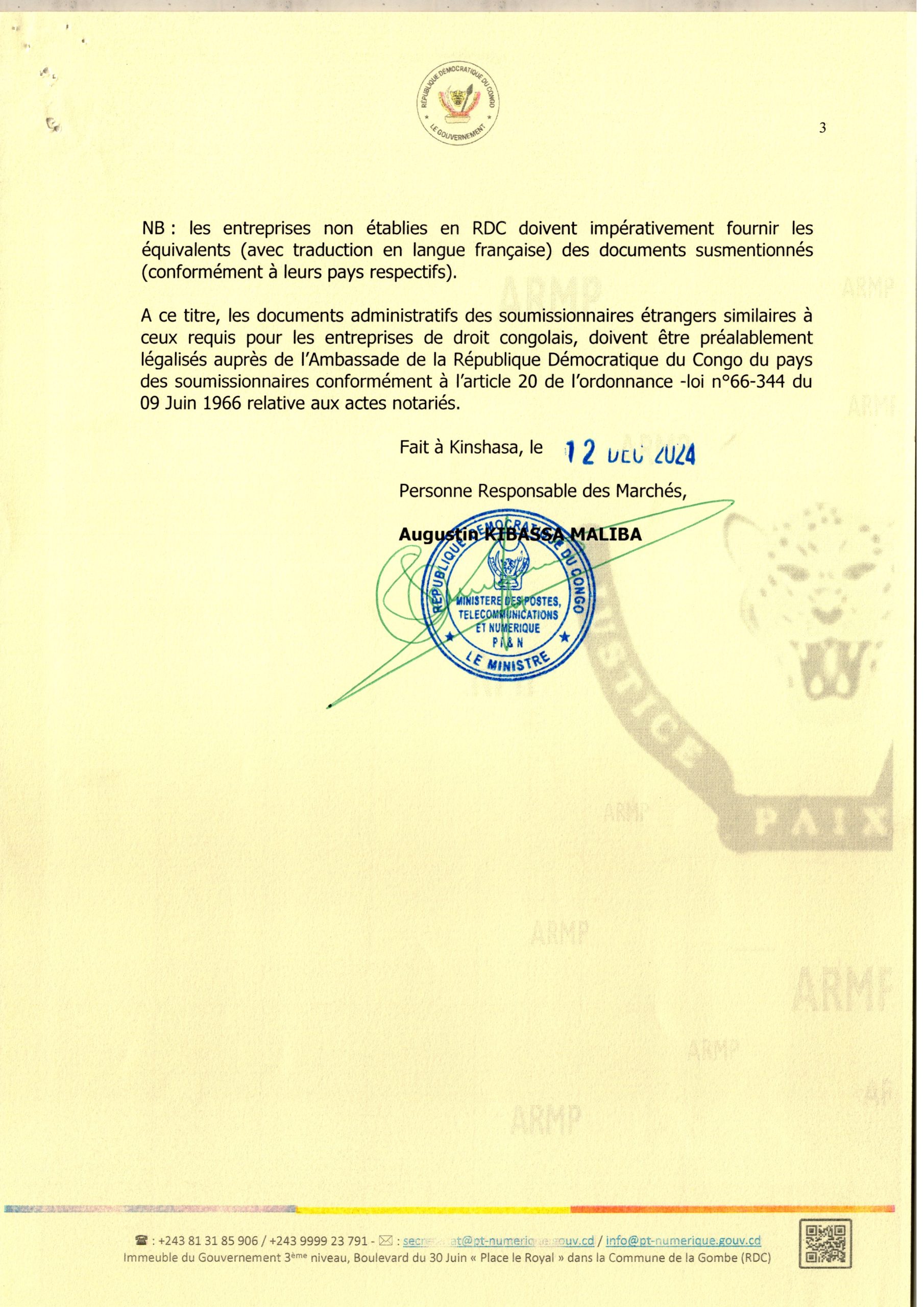 Décision d’attribution provisoire accordée à la société Vodacom Congo relative au recrutement d’un prestataire pour la fourniture de la connexion internet au profit de l’ACOREP.