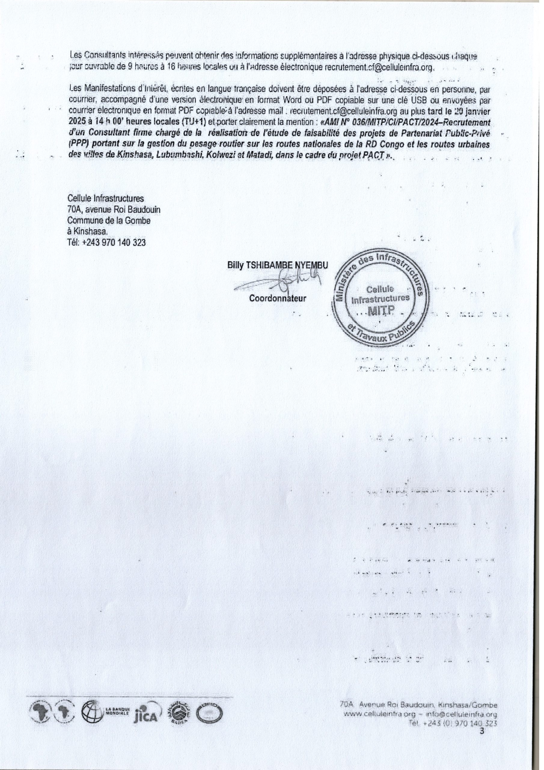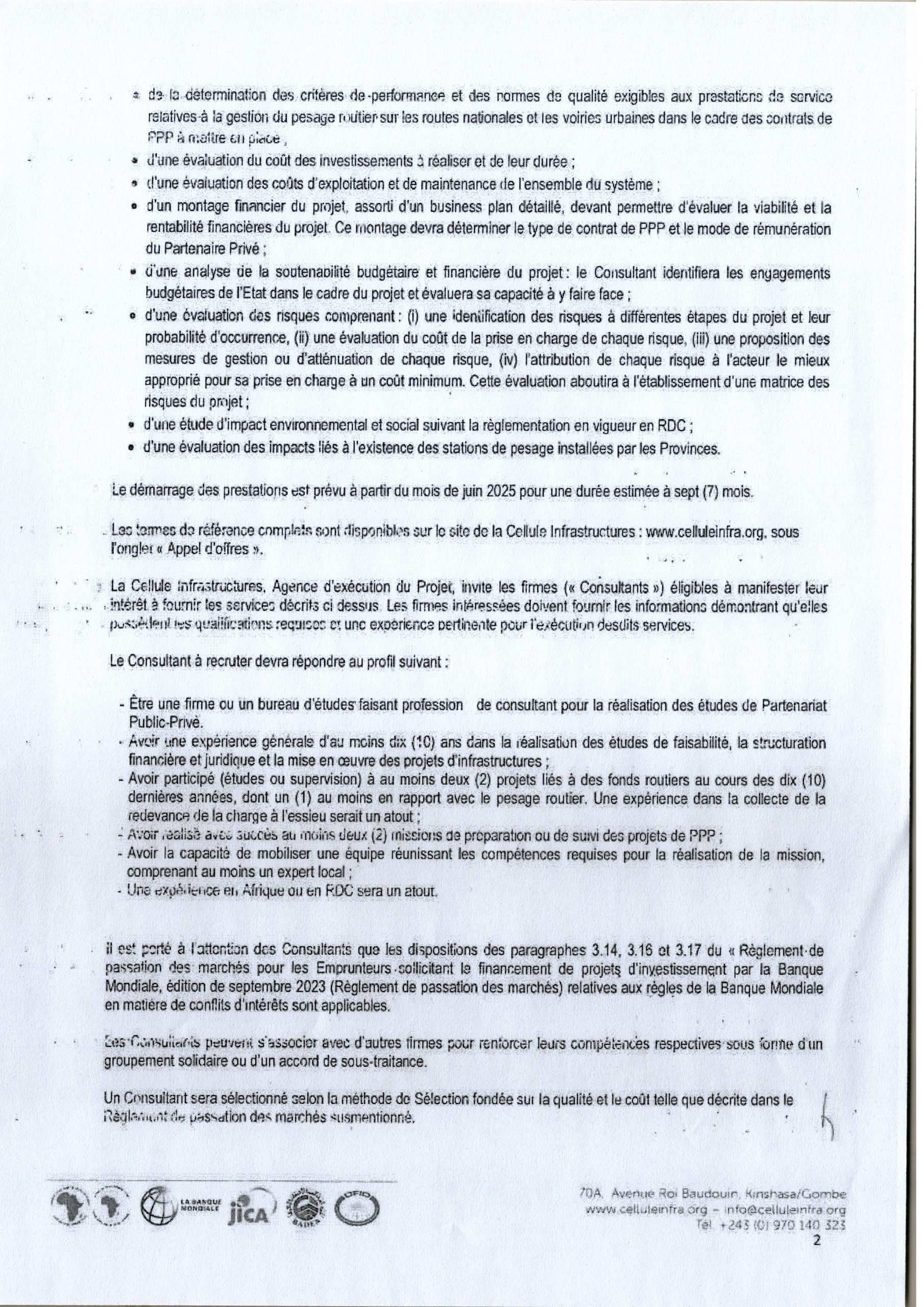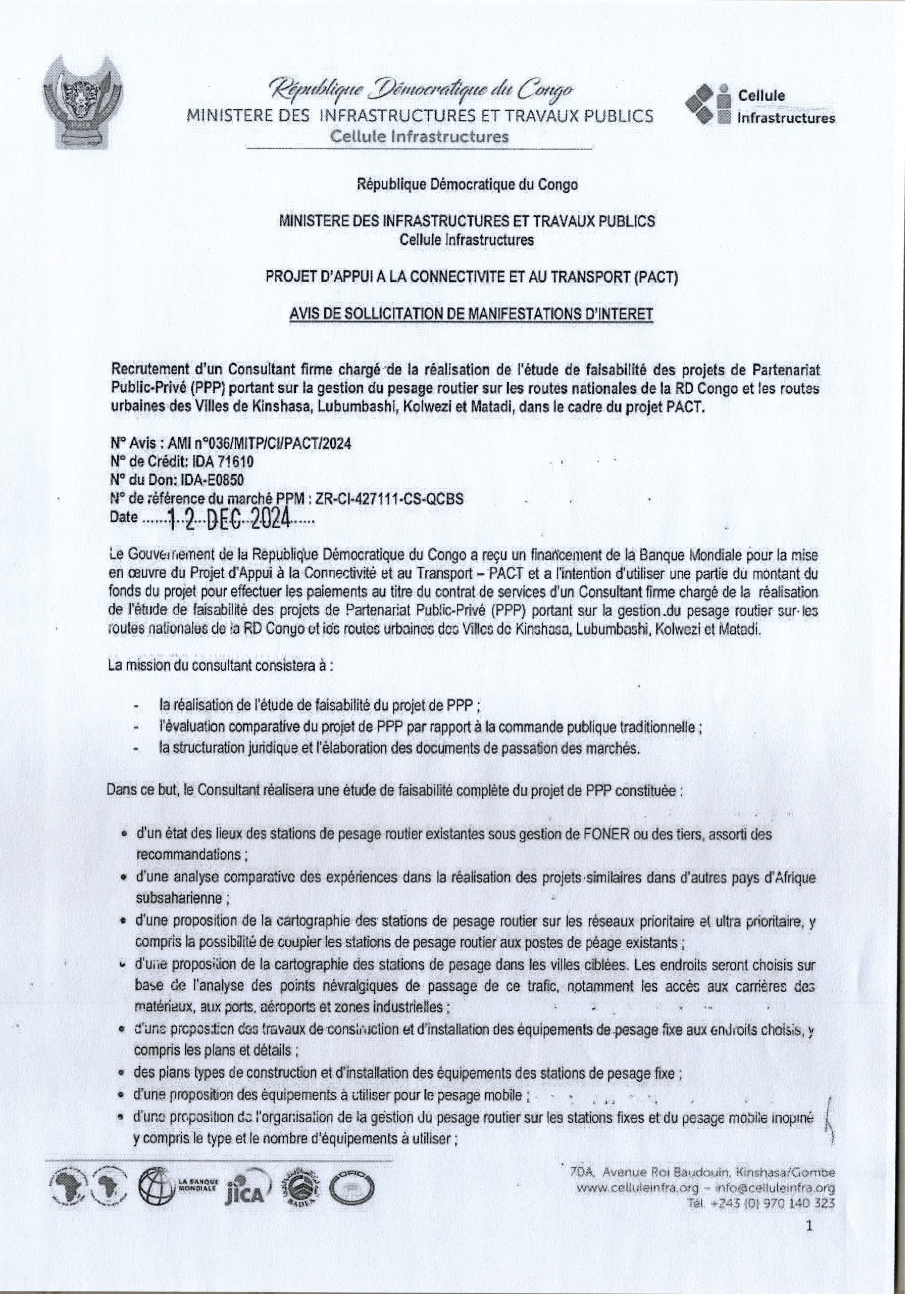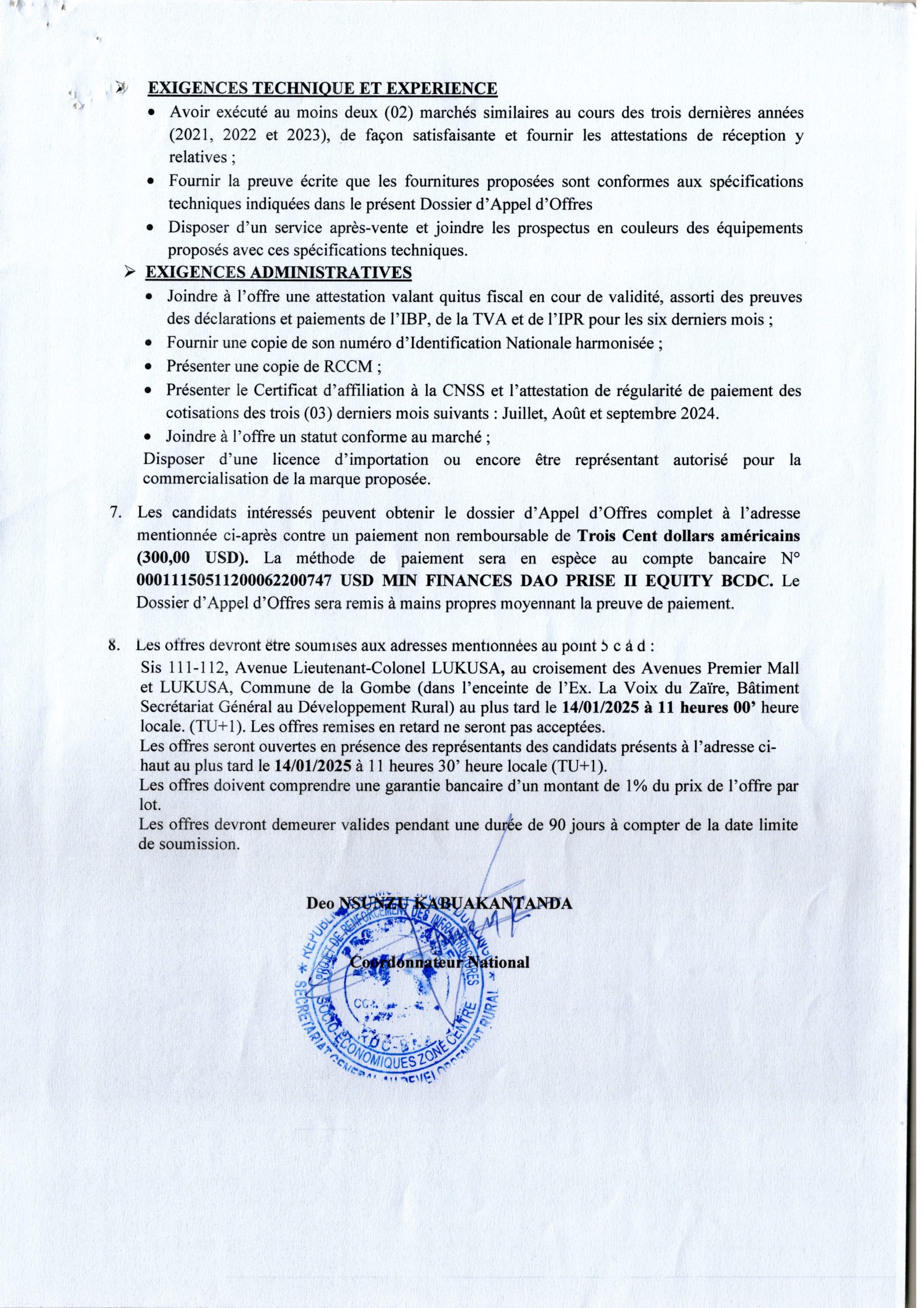 Acquisition d’un bateau (vedette) en lot unique en faveur de la Direction Provinciale du Kongo Central/Agence de Muanda.