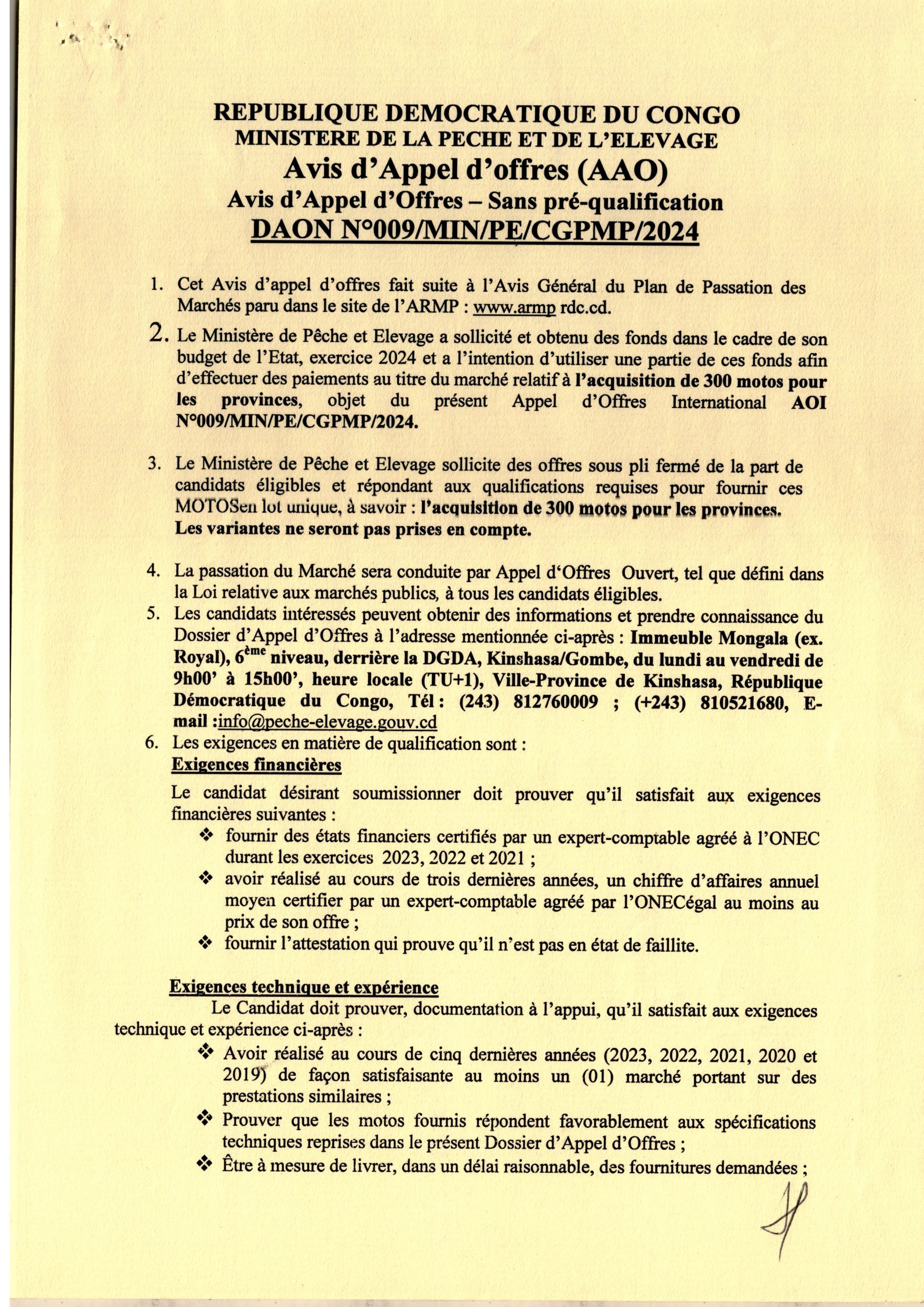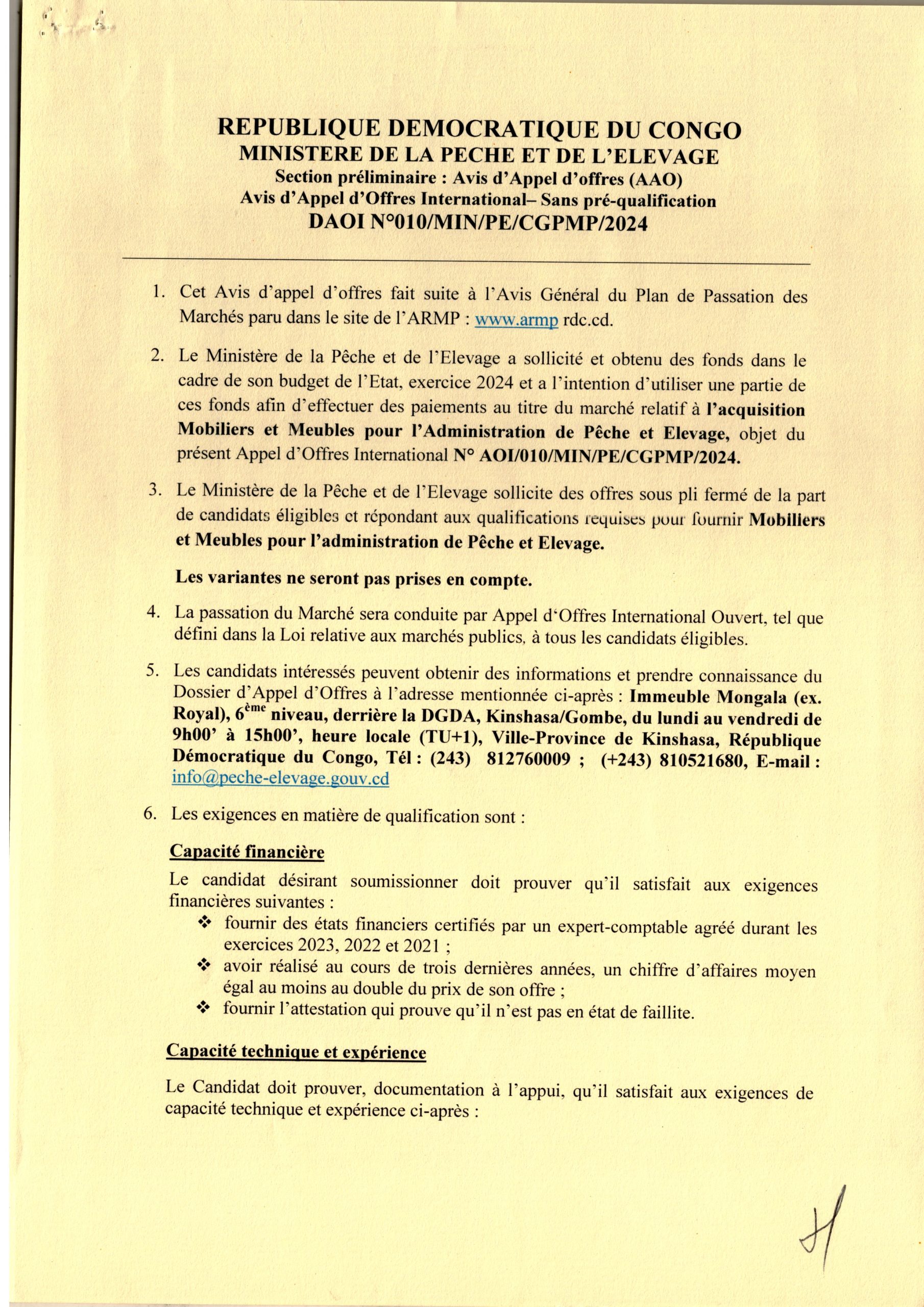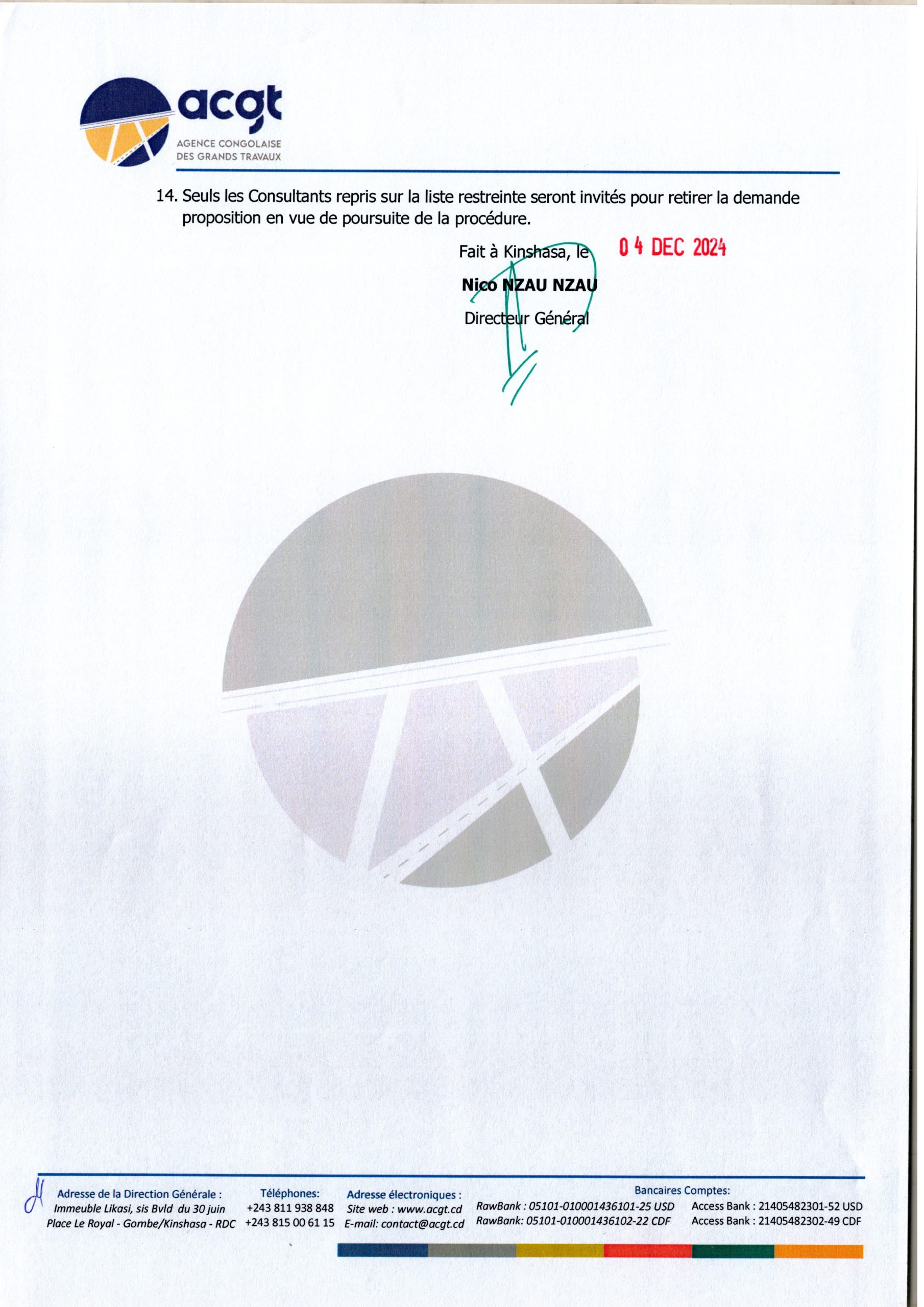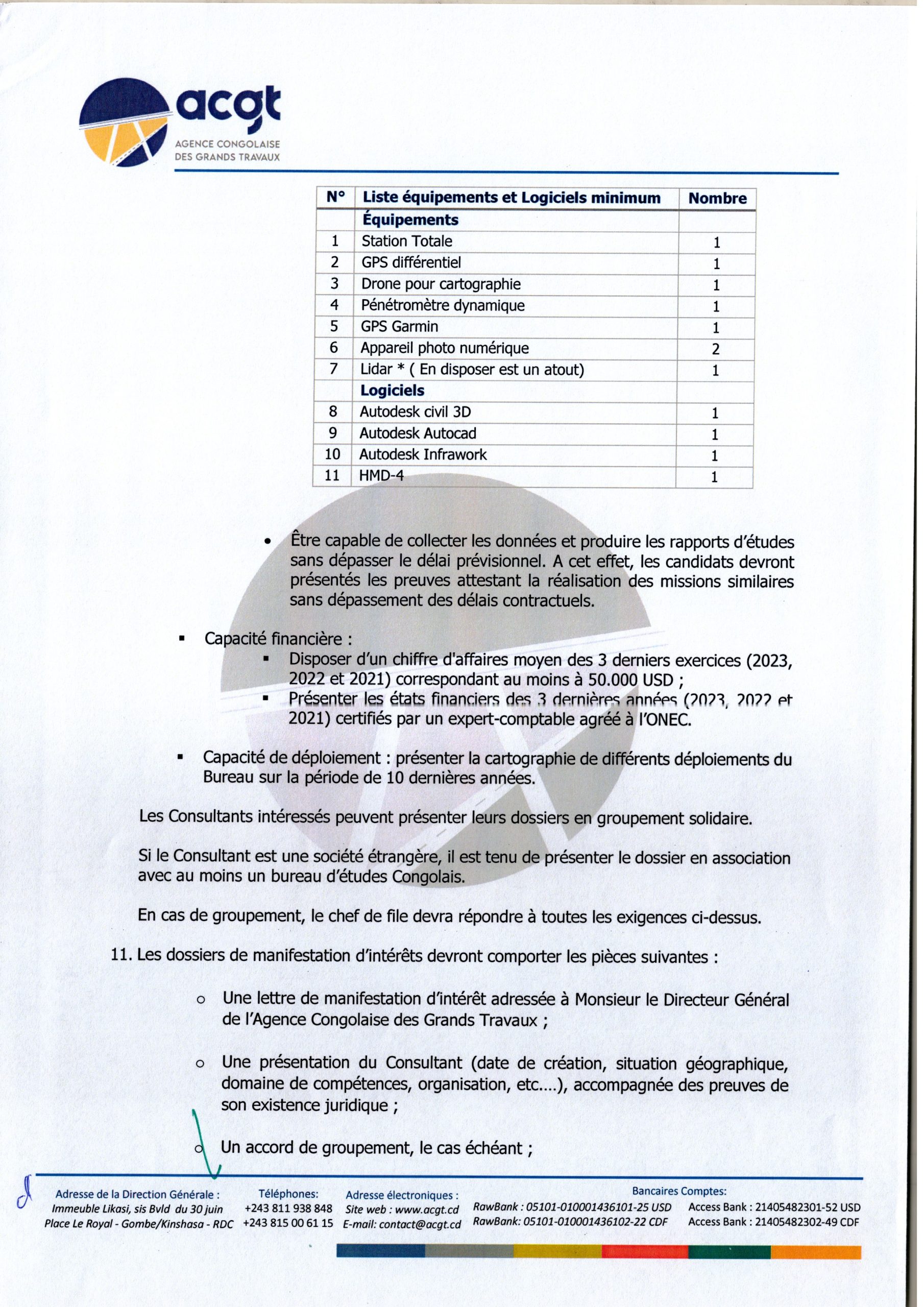 Recrutement des bureaux d’études pour la réalisation des études des projets d’infrastructures dans le cadre du plan Quinquennal 2024-2028 du programme SINO-CONGOLAIS.