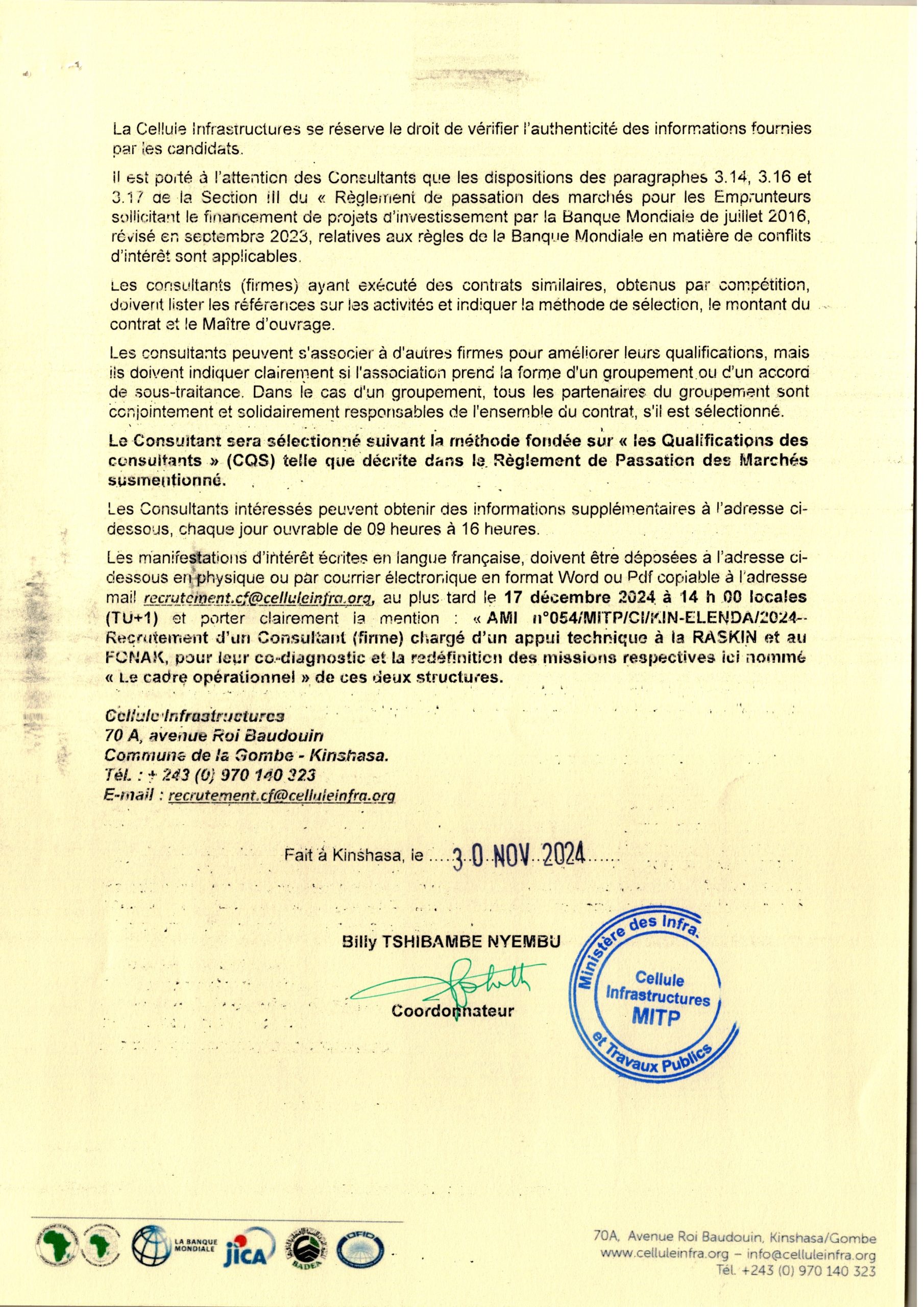 Recrutement d’un Consultant (firme) chargé d’un appui technique à la RASKIN et au FONAK, pour leur co-diagnostic et la redéfinition des missions respectives ici nommé « Le cadre opérationnel » de ces deux structures