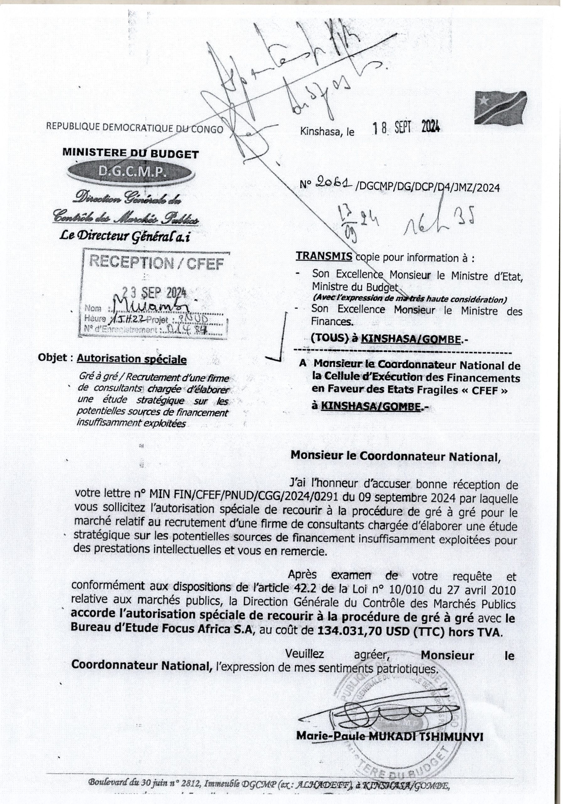 Attribution provisoire accordée au Bureau d’Études FocusAfrica relative au Recrutement d’une firme de Consultants Chargée d’élaborer une étude Stratégique sur les potentielles sources de financement insuffisamment exploitées