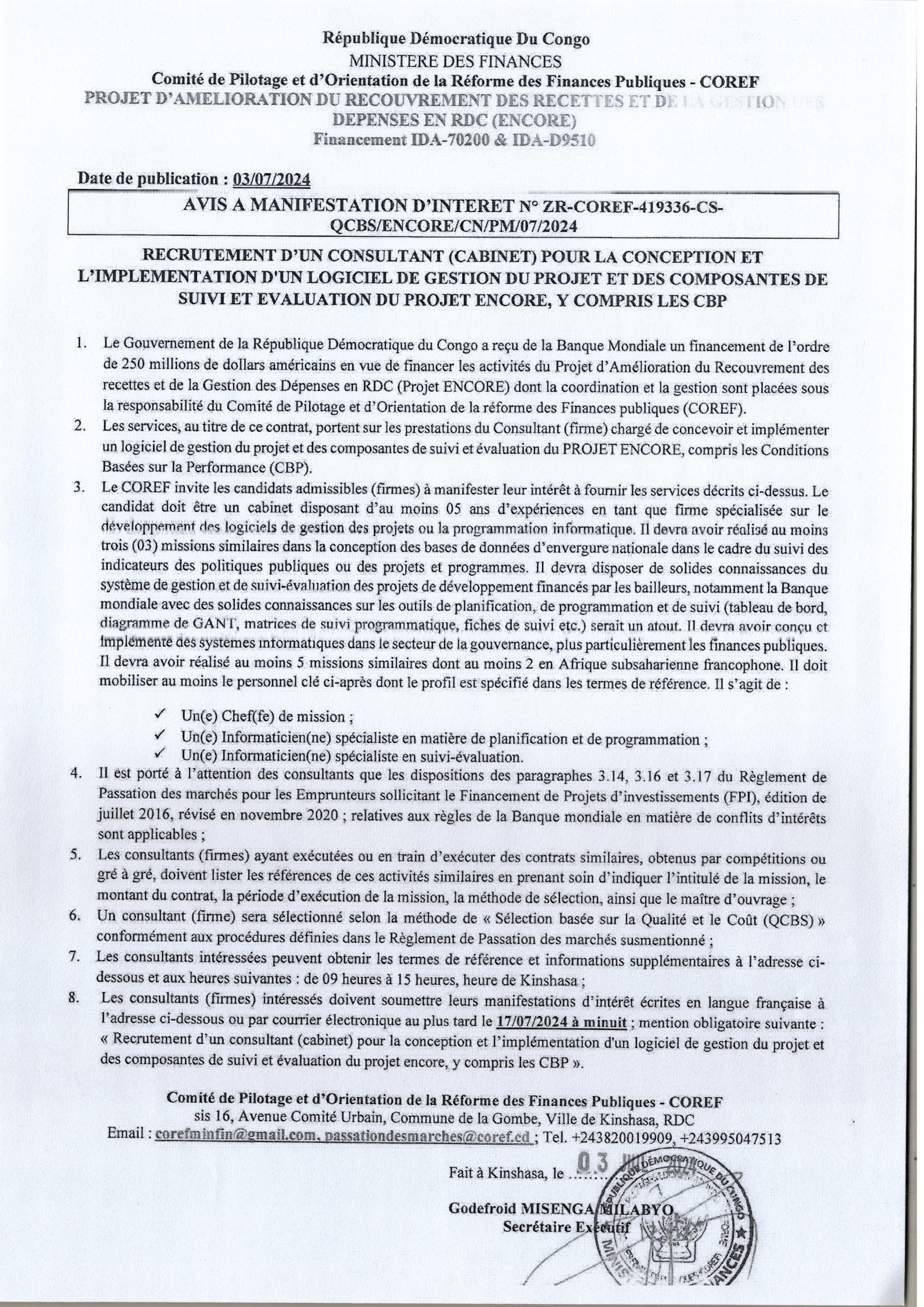 Recrutement d’un consultant (Cabinet) pour la Conception et l’Implémentations d’un logiciel de gestion du projet et des composantes de suivi et évaluation du projet Encore, y compris les CBP