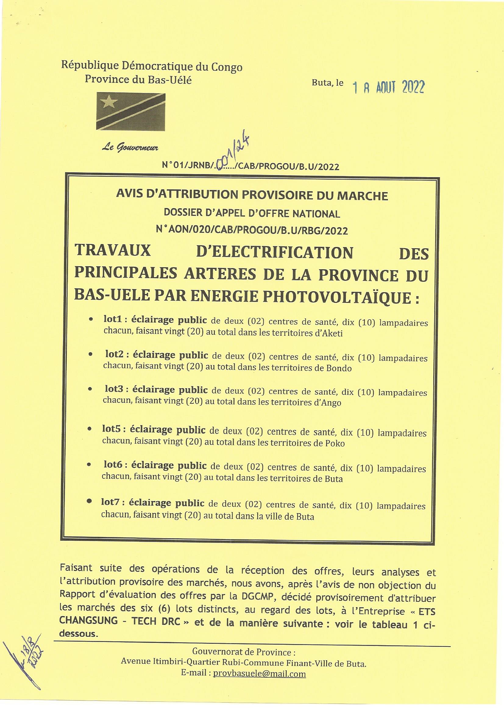 Recrutement d’une firme des consultants chargée d’assurer le contrôle des travaux de réhabilitation/construction et équipement de 53 écoles primaires, 21 centres de santé et de 5 bâtiments administratifs dans les 5 territoires de la province du Kwango