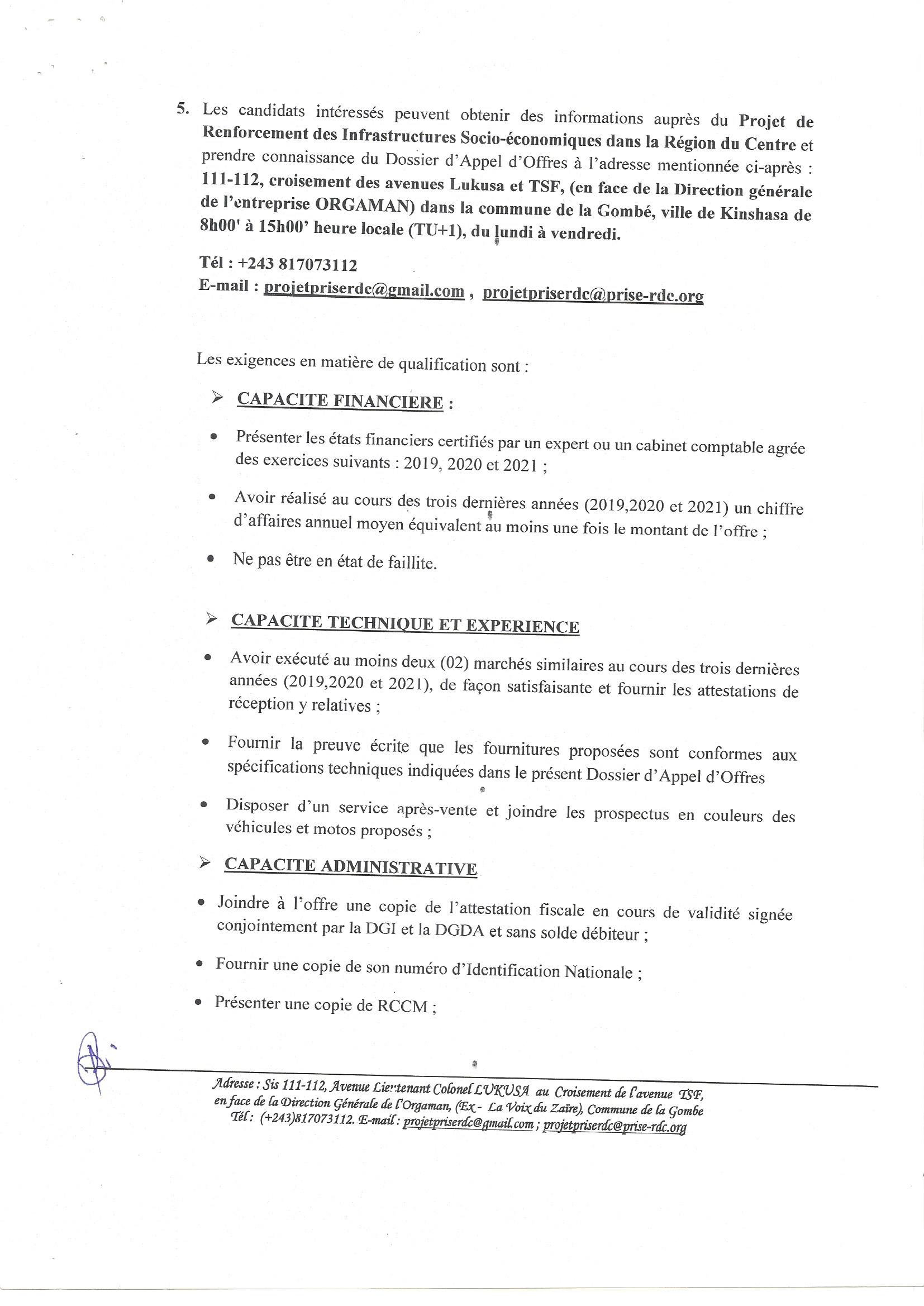 Recrutement d’un Consultant chargé de la mise en œuvre des Plans d’actions de réinstallation des personnes affectées par le projet des travaux relatifs à la fourniture et pose des conduites de transferts et distribution en aval de l’usine de traitement;..