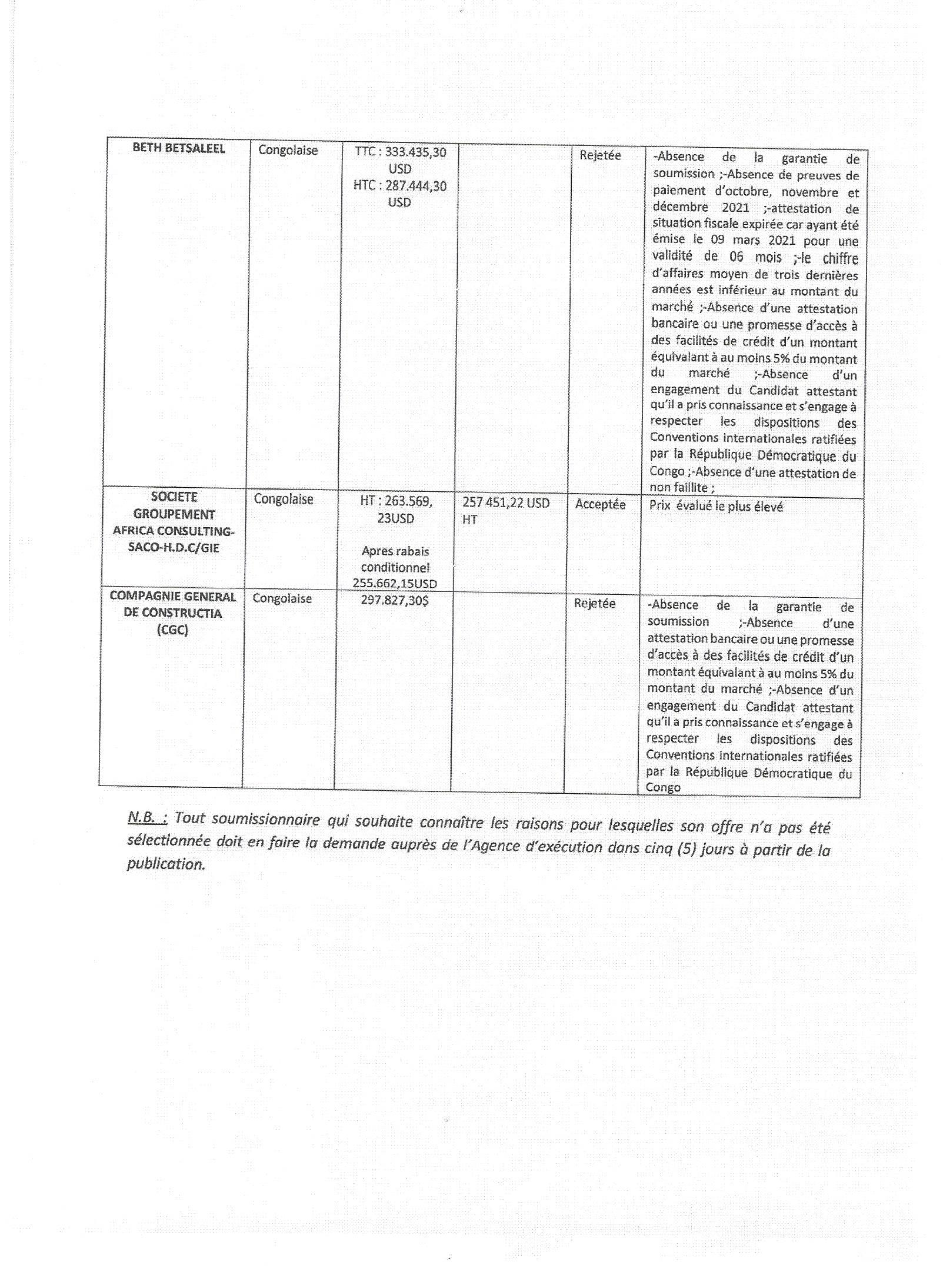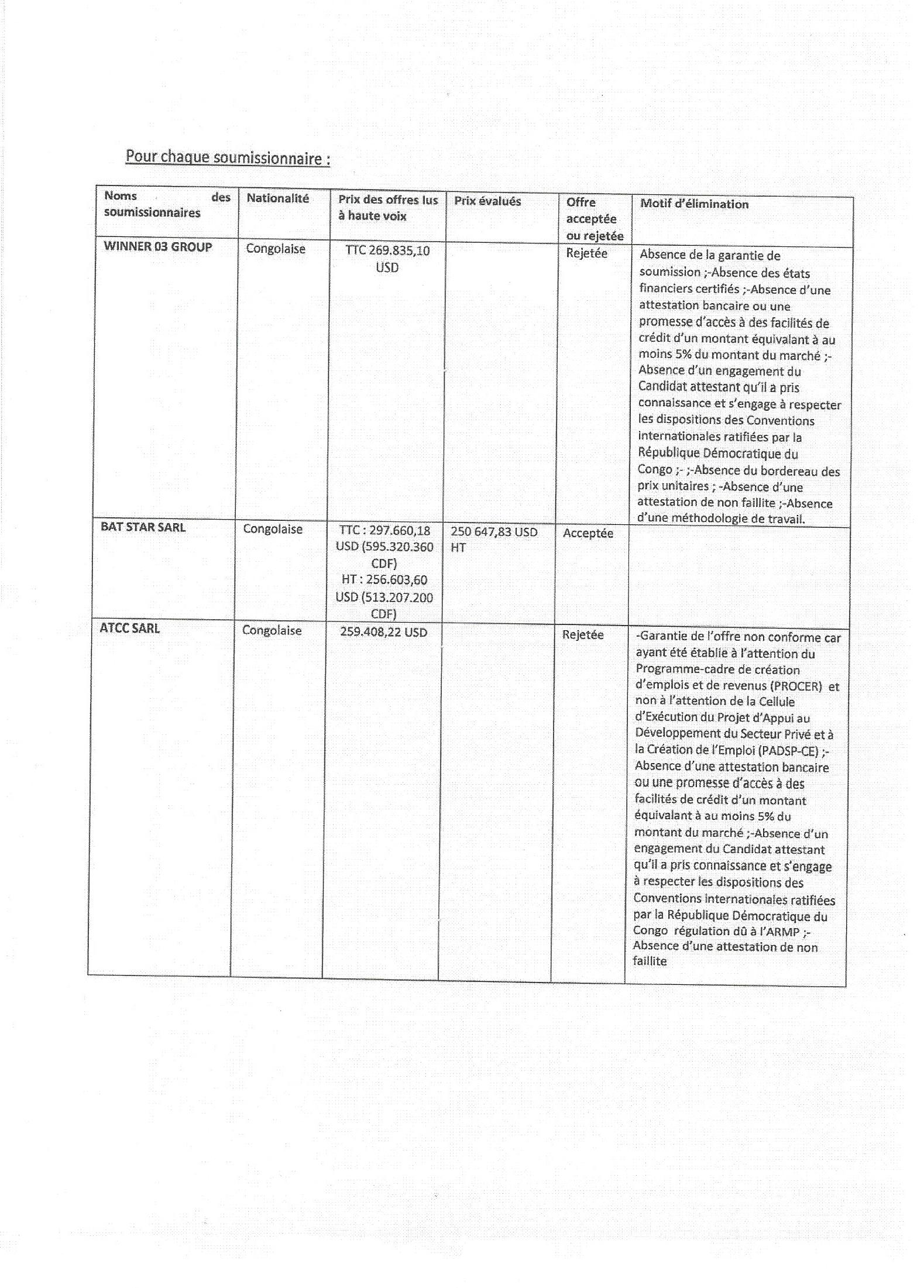 Attribution Provisoire du marché pour la construction d’une école à six portes, avec bureau et latrine dans le Groupement de bakwa village de Muanza manda au laboratoire d’Etudes et Construction « L.E.C. »