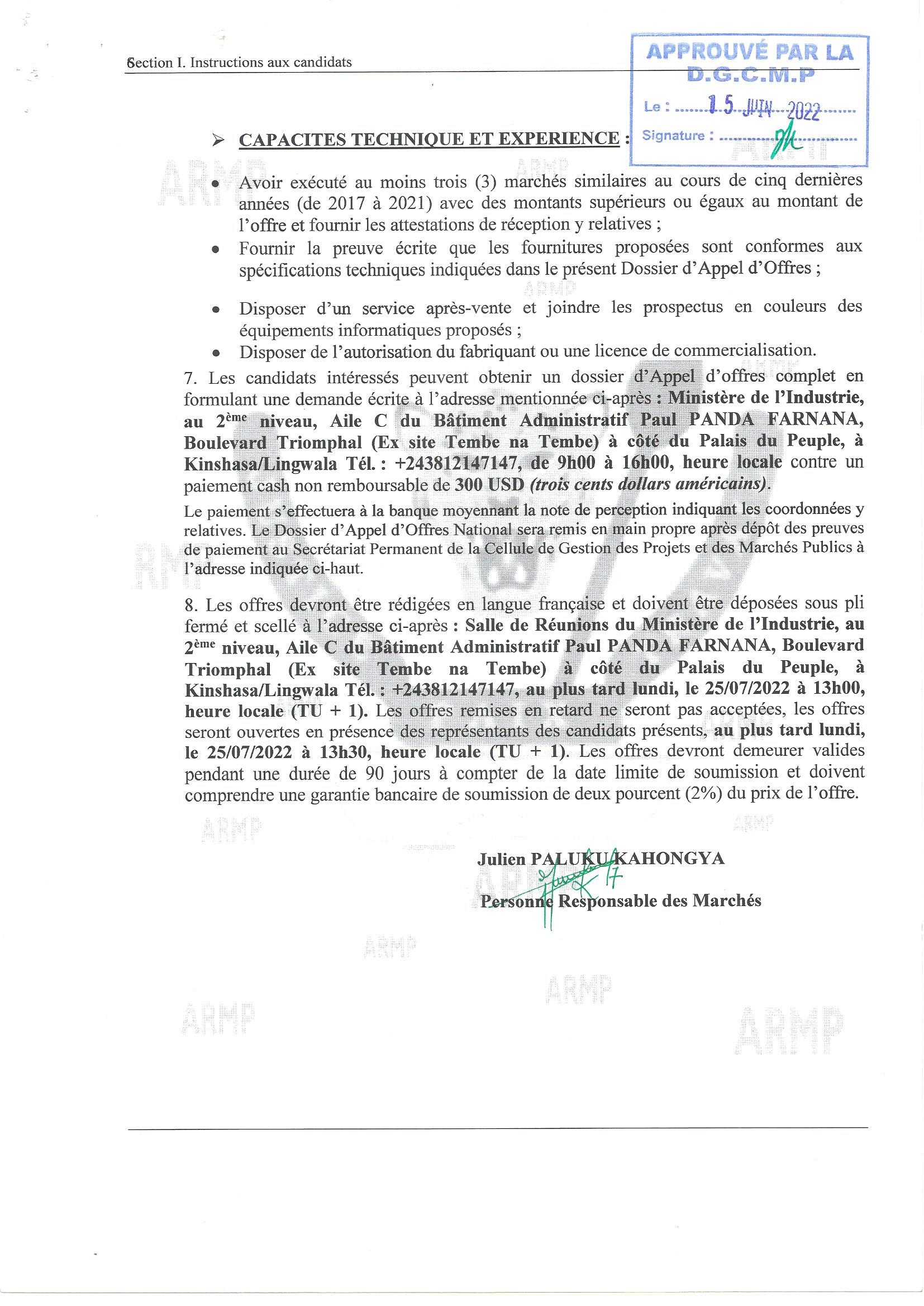 Acquisition des équipements informatiques au profit du Ministère de l’Industrie…