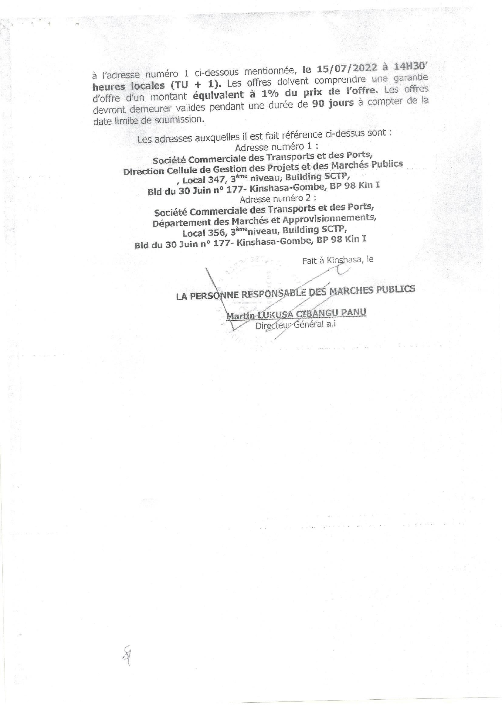 TRAVAUX DE CONSTRUCTION D’UN BÂTIMENT ADMINISTRATIF POUR LE COMPTE DU SECRÉTARIAT GENERAL À LA L’URBANISME ET HABITAT À KINSHASA /GOMBE