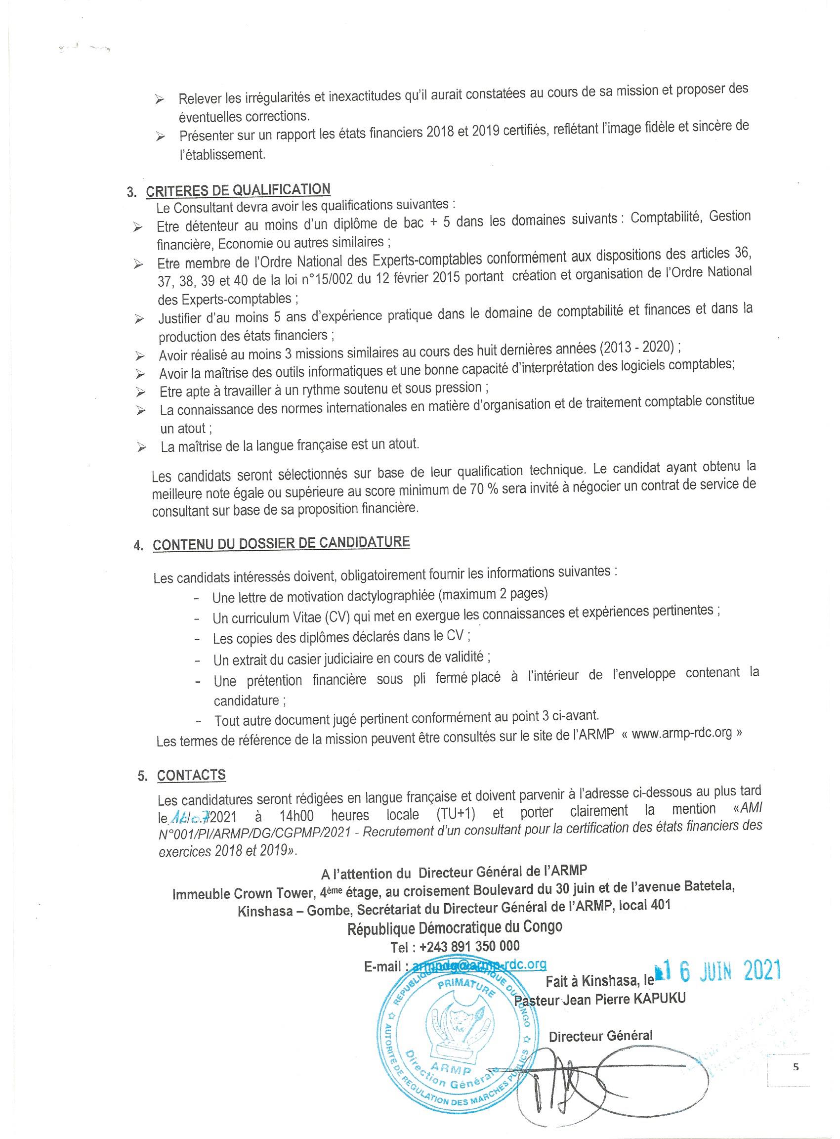 Recrutement d’un consultant pour la certification des états financiers des exercices 2018 et 2019