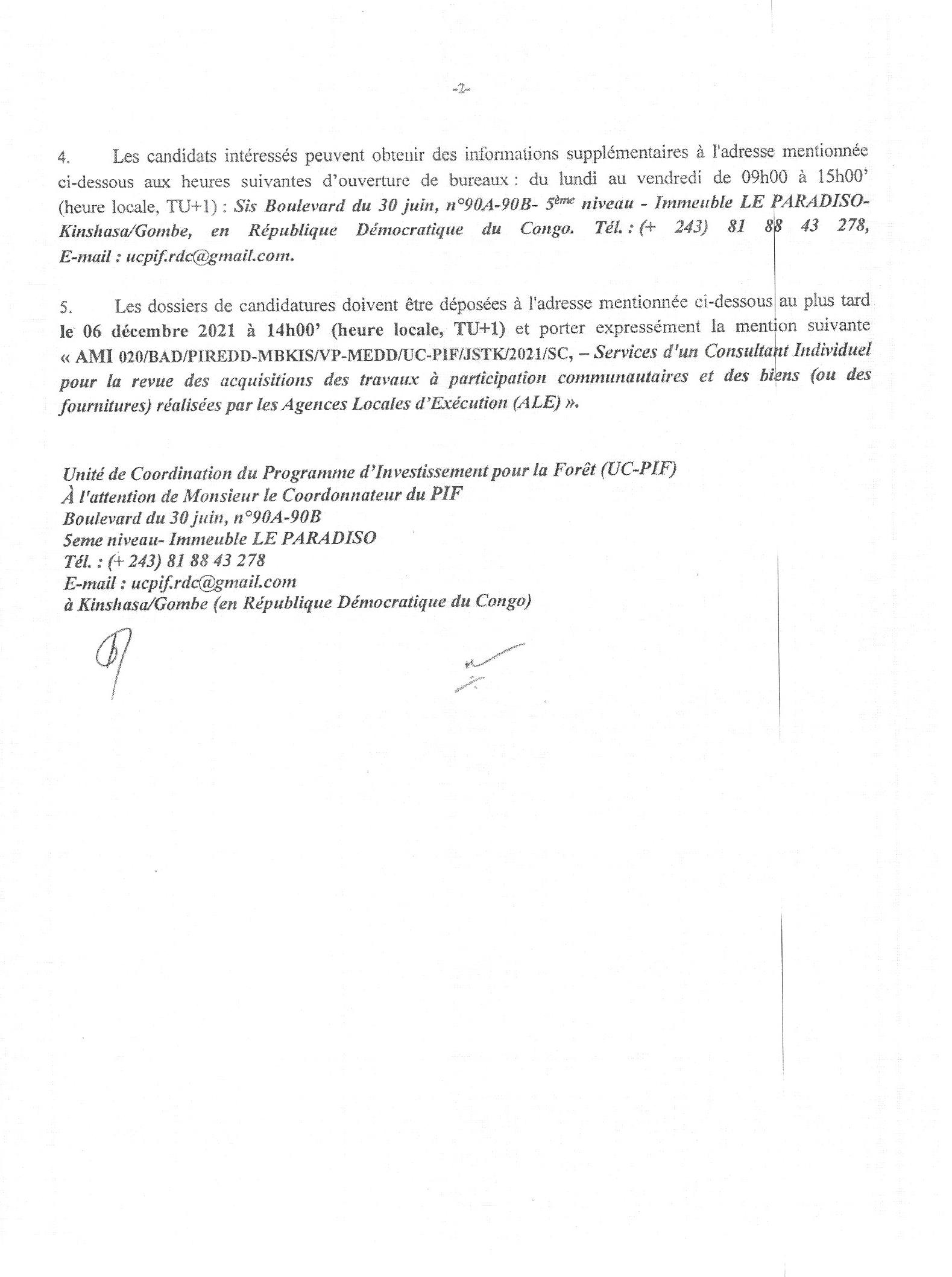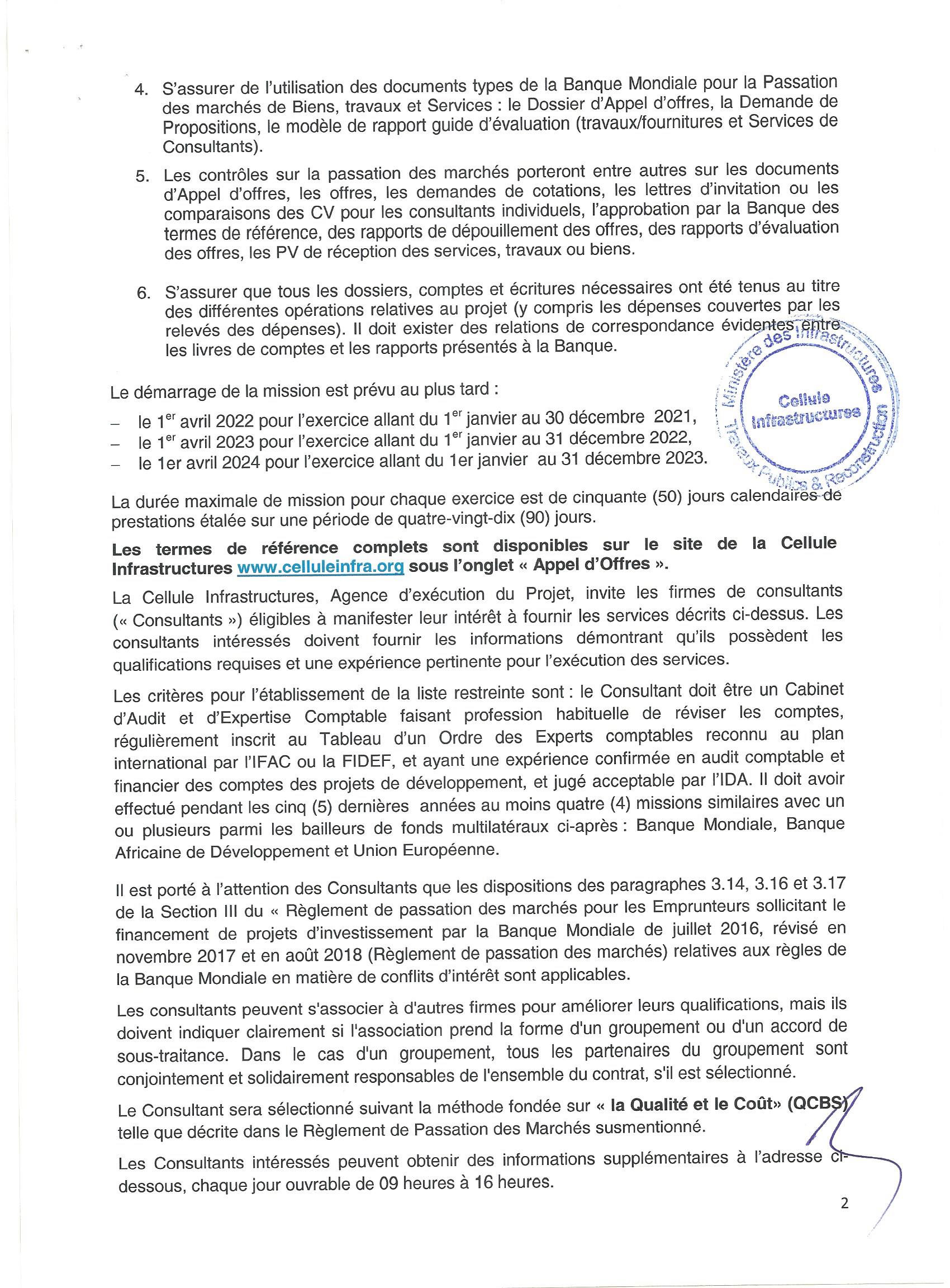 SERVICES D’UN CONSULTANT INDIVIDUEL POUR LA REVUE DES ACQUISITIONS DES TRAVAUX A PARTICIPATION COMMUNAUTAIRES ET DES BIENS….
