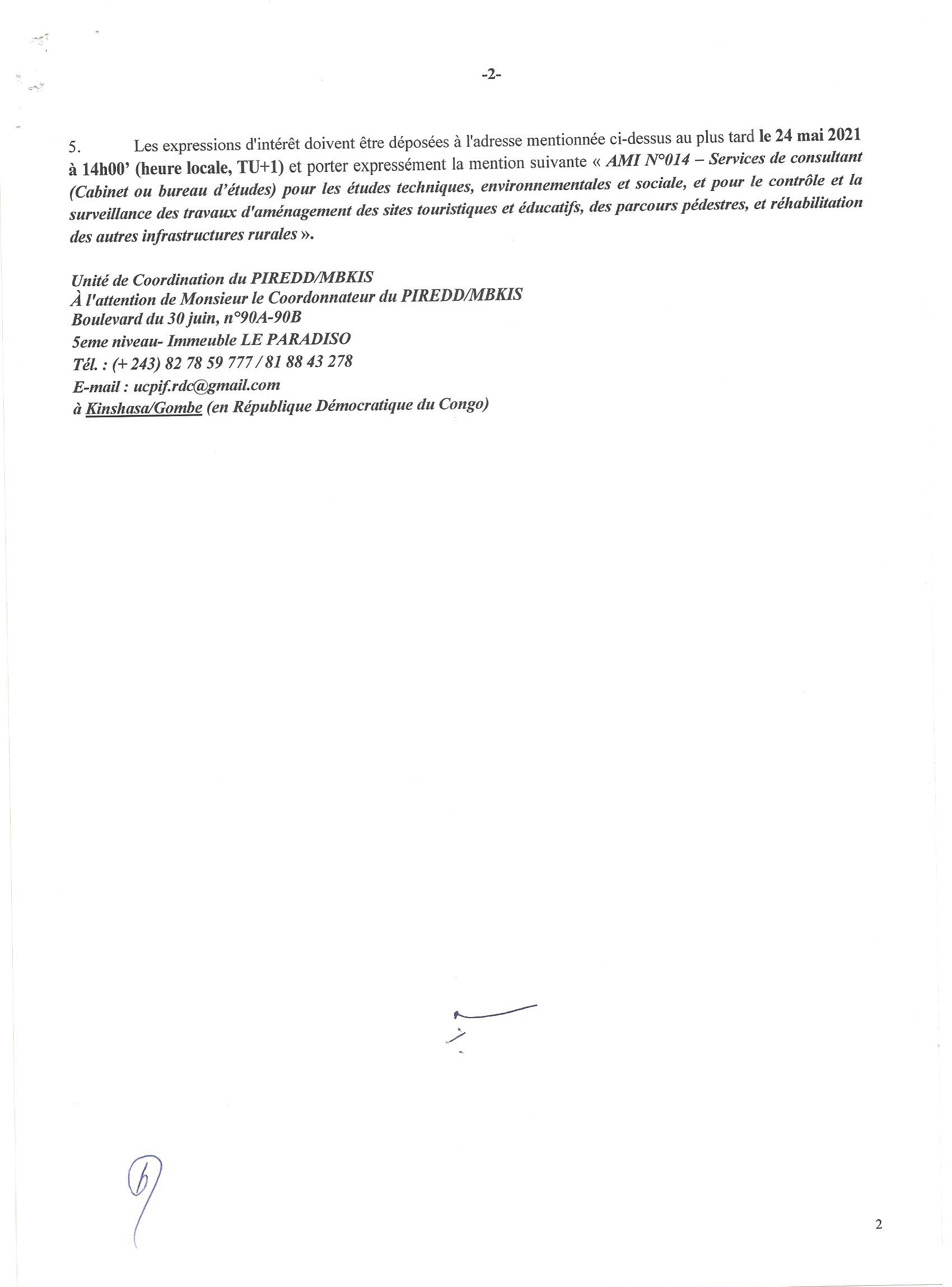 Service de consultant (cabinet ou bureau d’étude) pour les études techniques, environnementales et sociales, et pour le contrôle et la surveillance des travaux d’aménagement des sites touristiques et éducatifs, de parcours pédestres, et réhabilitation des autres infrastructures rurales