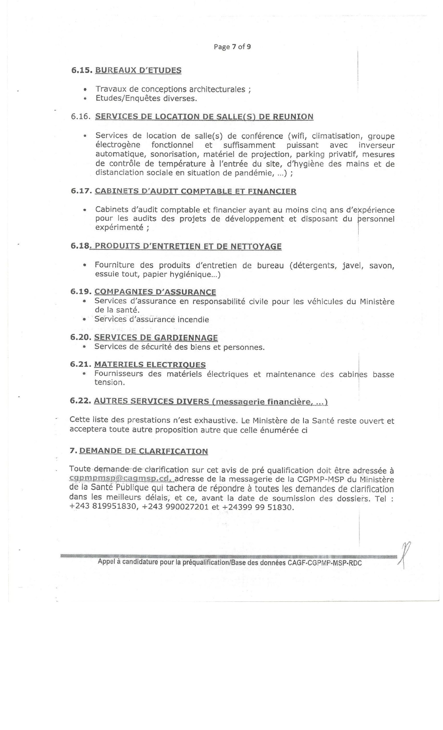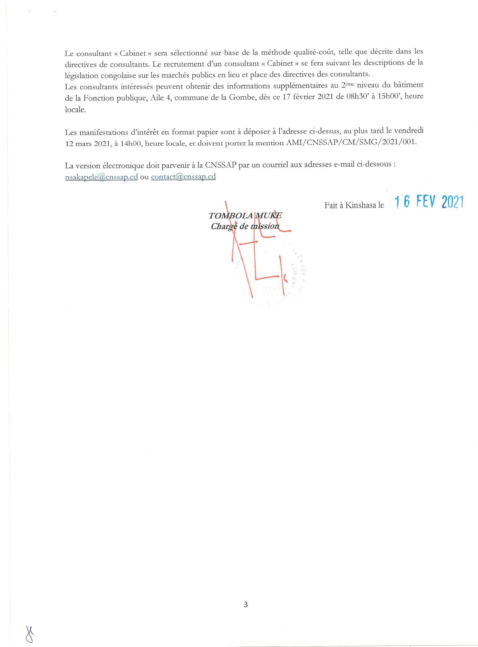 ADDENDUM N°1 AU DOSSIER D’APPEL D’OFFRE N° : 001/AOI/CGPMP-MSP/CAGF/2021