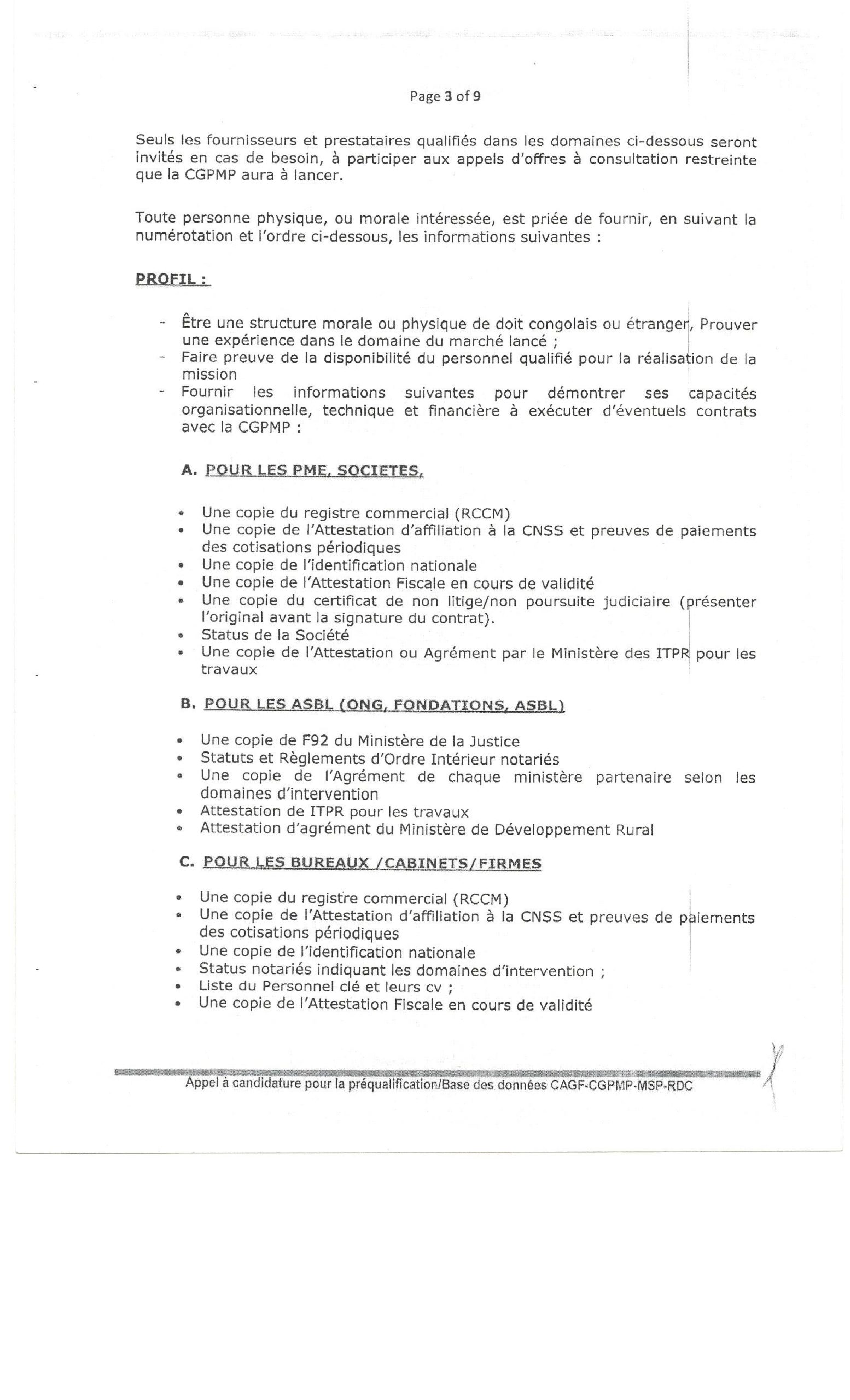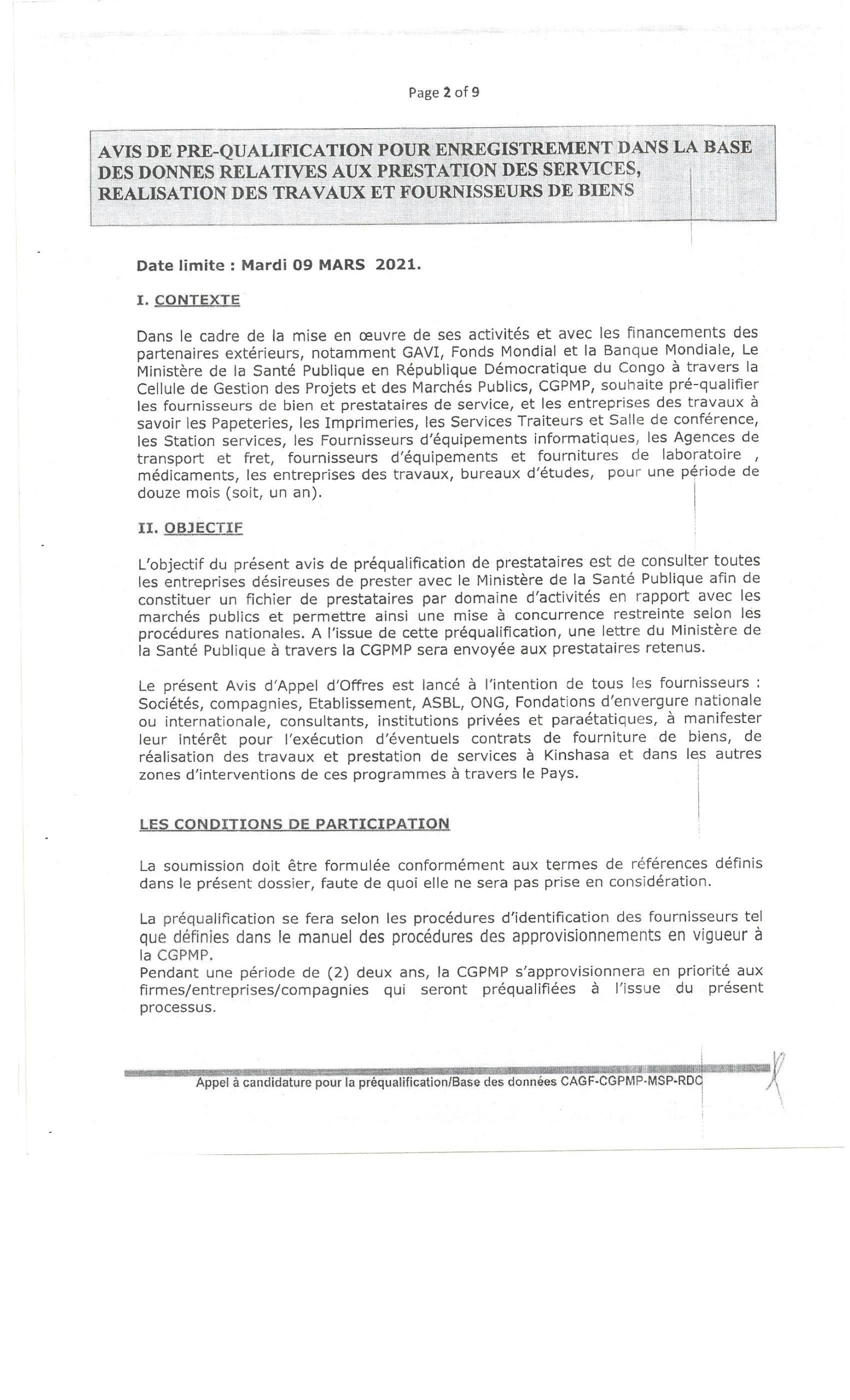 Avis de préqualification pour enregistrement dans la base des données relatives aux prestation des services, réalisations des travaux et fournisseurs de biens