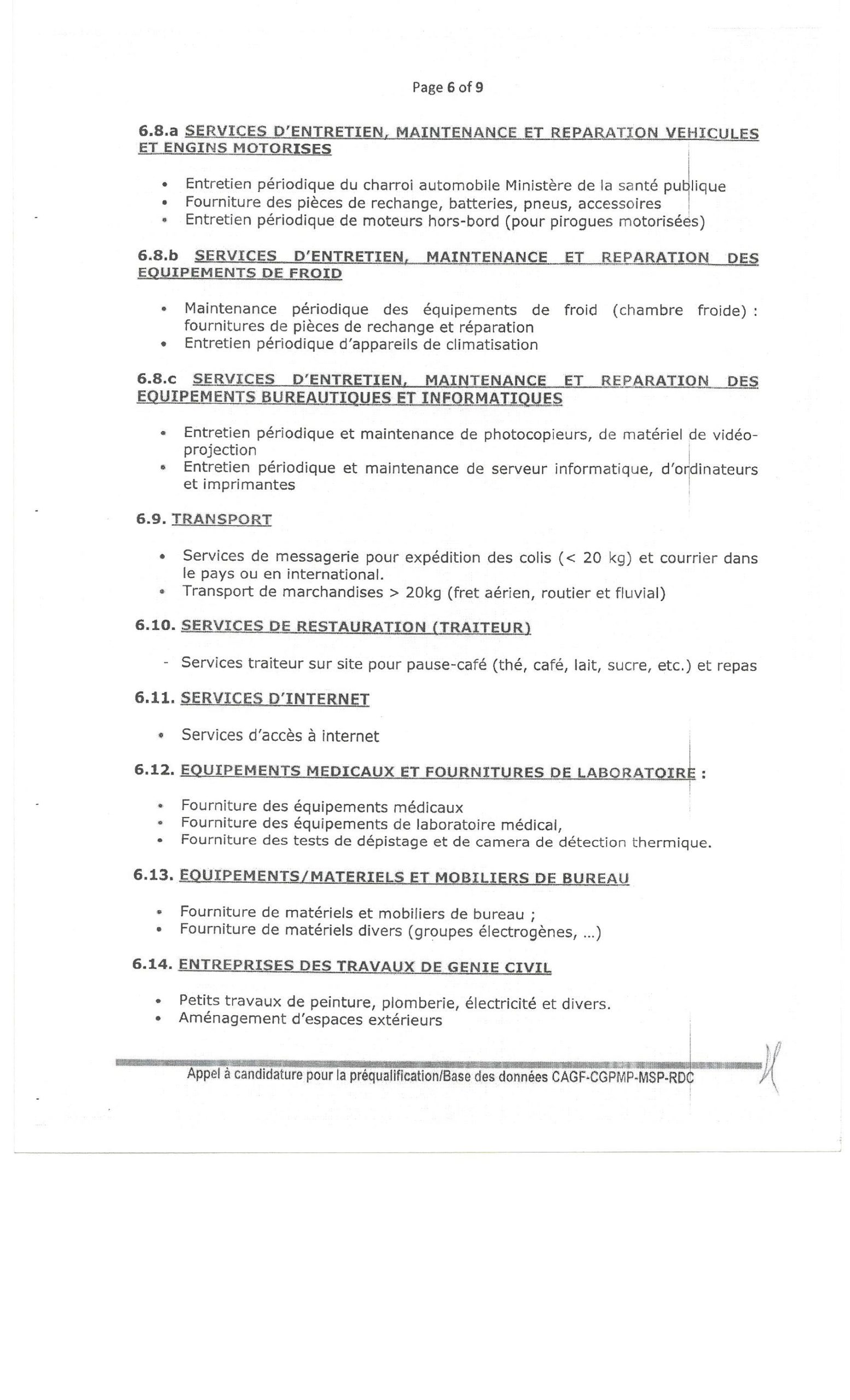 AVIS D’APPEL D’OFFRE INTERNATIONAL SANS PRE-QUALIFICATION POUR LE TRANSPORT DES VACCIN ET AUTRES PRODUITS NON MEDICAUX AU PROFIT DES PROGRAMMES DU SECTEUR DE LA SANTE EN RD CONGO