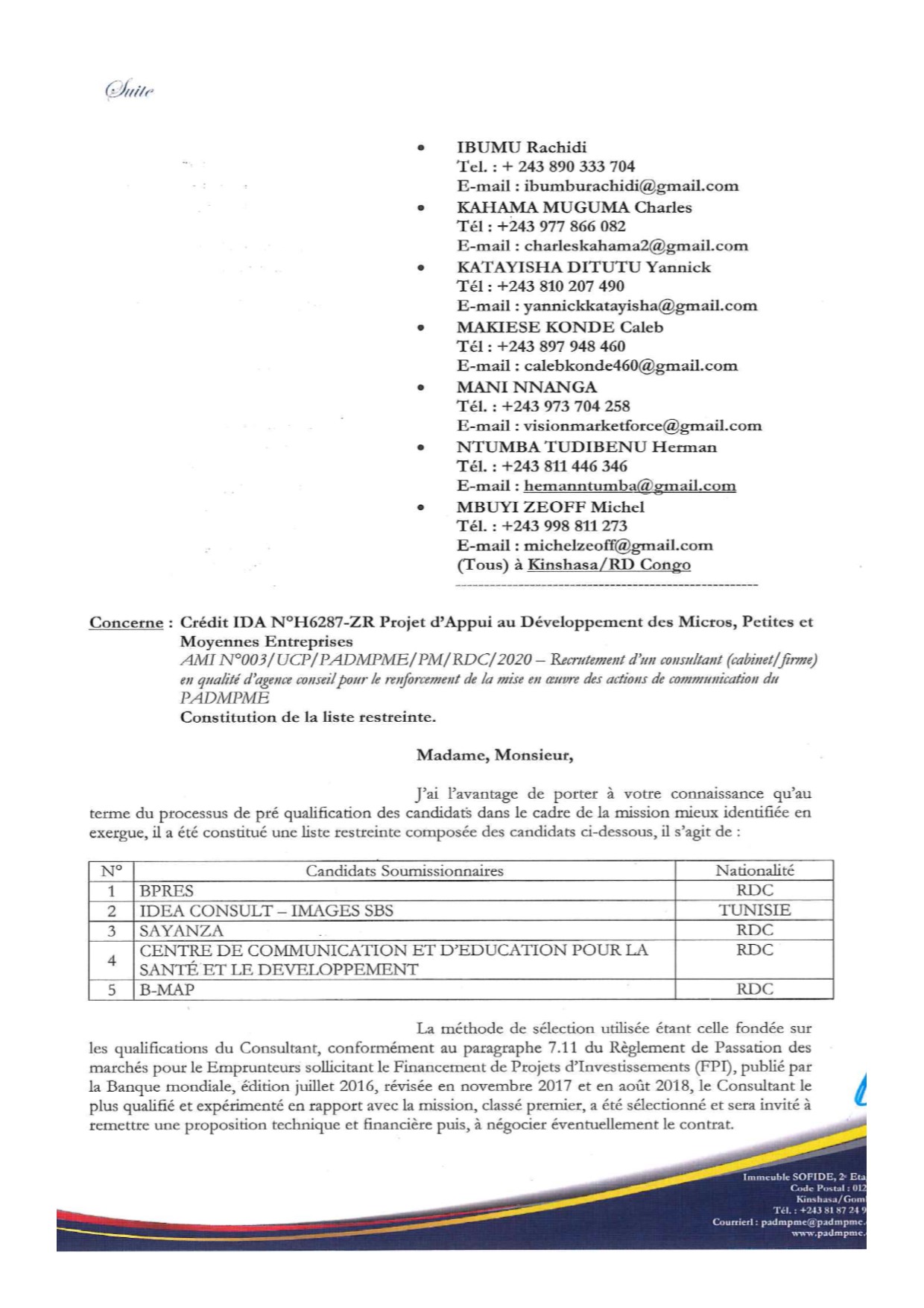 AMI RELATIF AU RECRUTEMENT D’UN CONSULTANT (CABINET/FIRME) EN QUALITE D’AGENCE CONSEIL POUR LE RENFORCEMENT DE LA MISE EN OEUVRE DES ACTIONS DE COMMUNICATION DU PADMPME