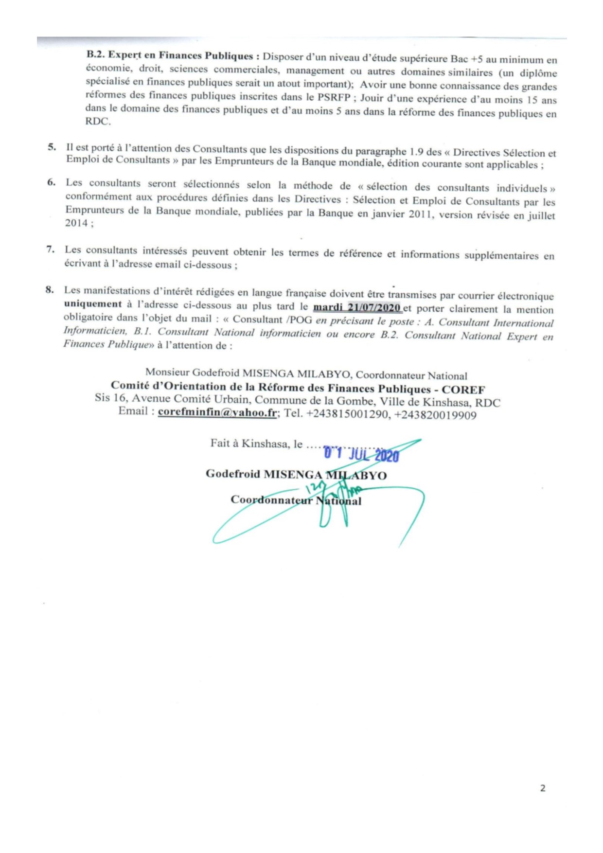 AMI RELATIF A LA SELECTION D’UN (01) CONSULTANT INTERNATIONAL ET DE DEUX (02) CONSULTANTS NATIONAUX POUR LA REVUE ET L’ACTUALISATION DU PLAN D’ORIENTATION GLOBALE DE L’INFORMATISATION DU SYSTEME DE GESTION DES FINANCES PUBLIQUES ET DE L’ADMINISTRATION …