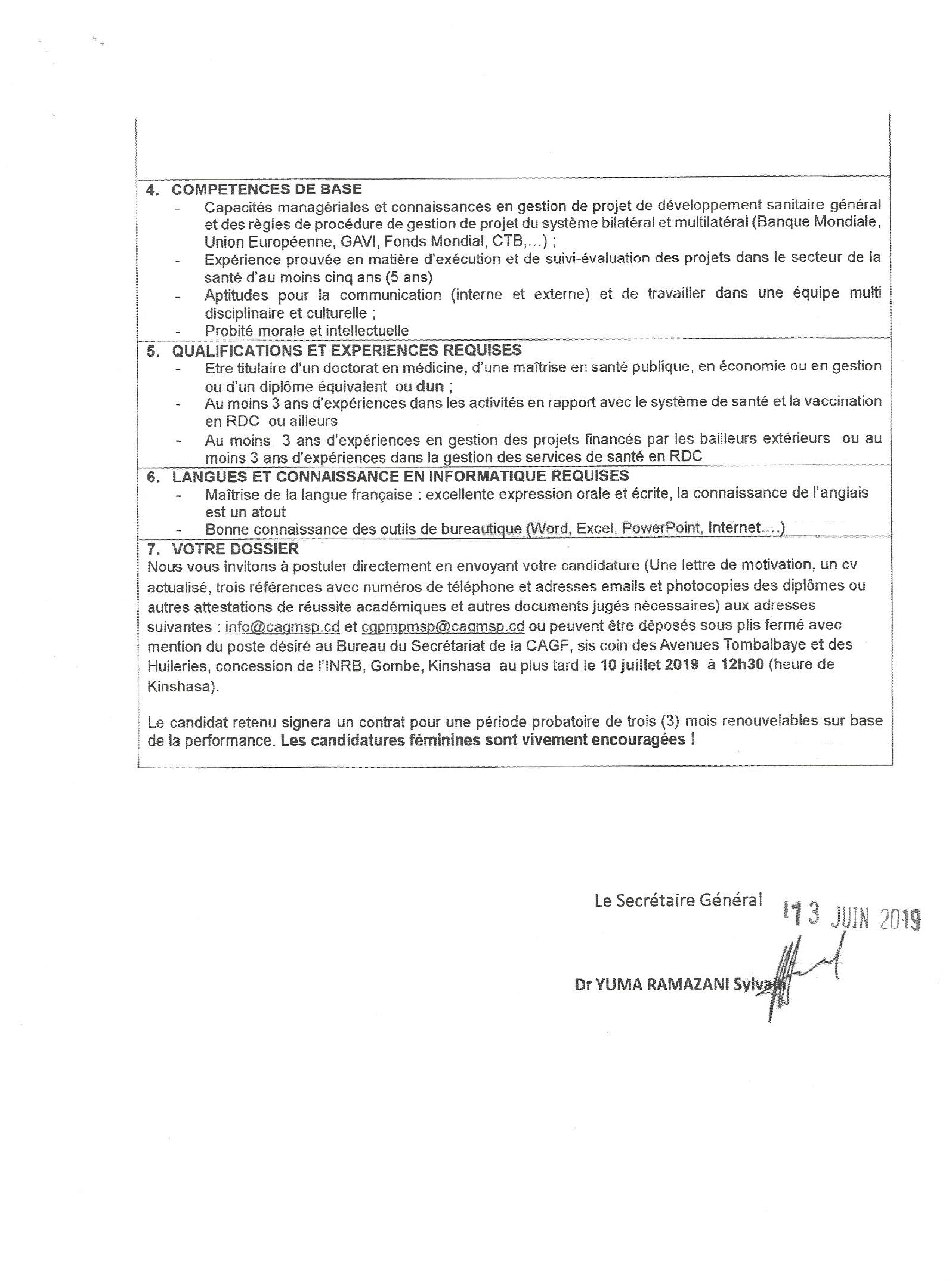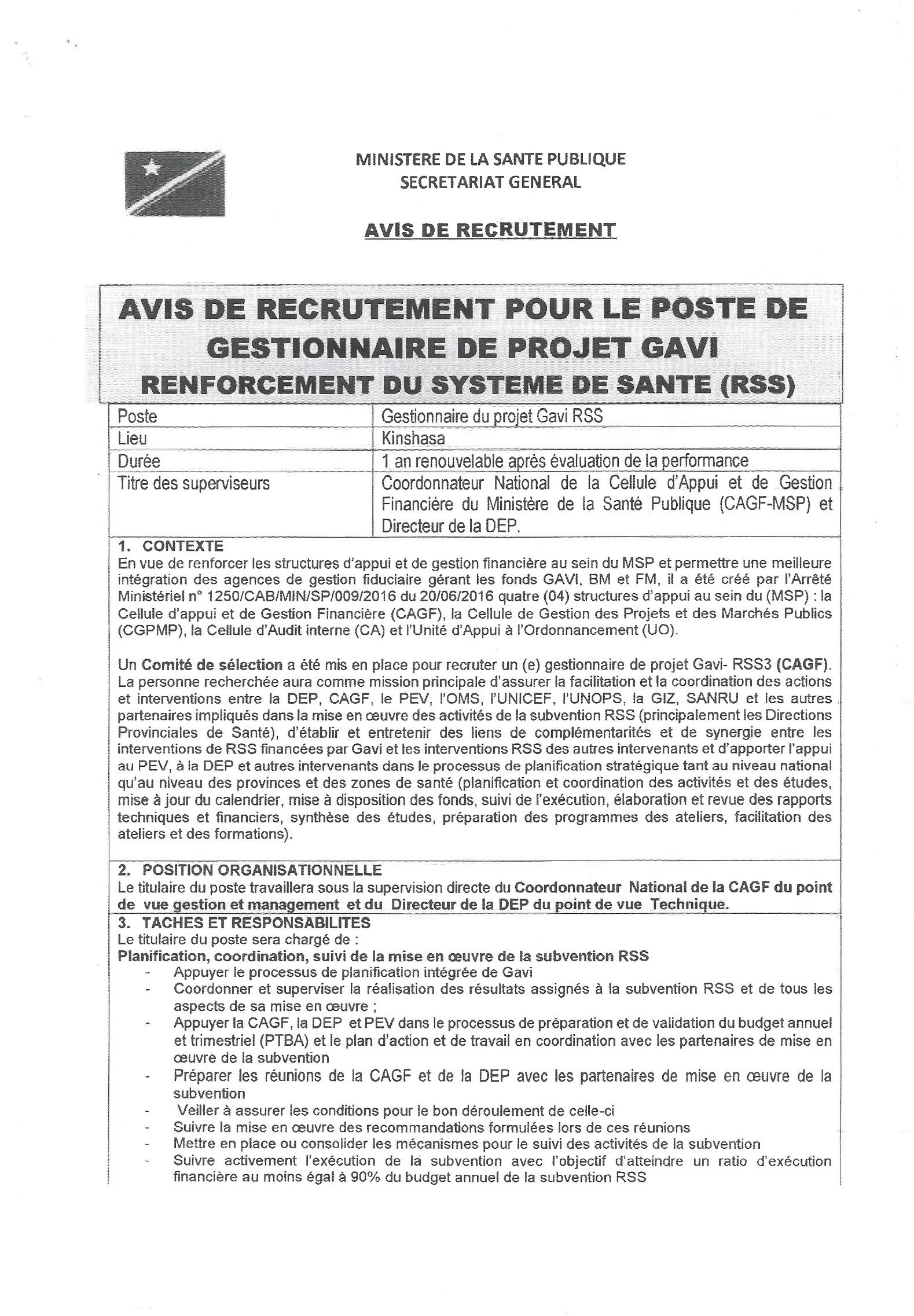 Recrutement pour le poste de Gestionnaire de Projet GAVI Renforcement du système de Santé.