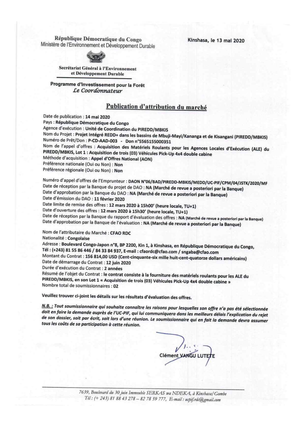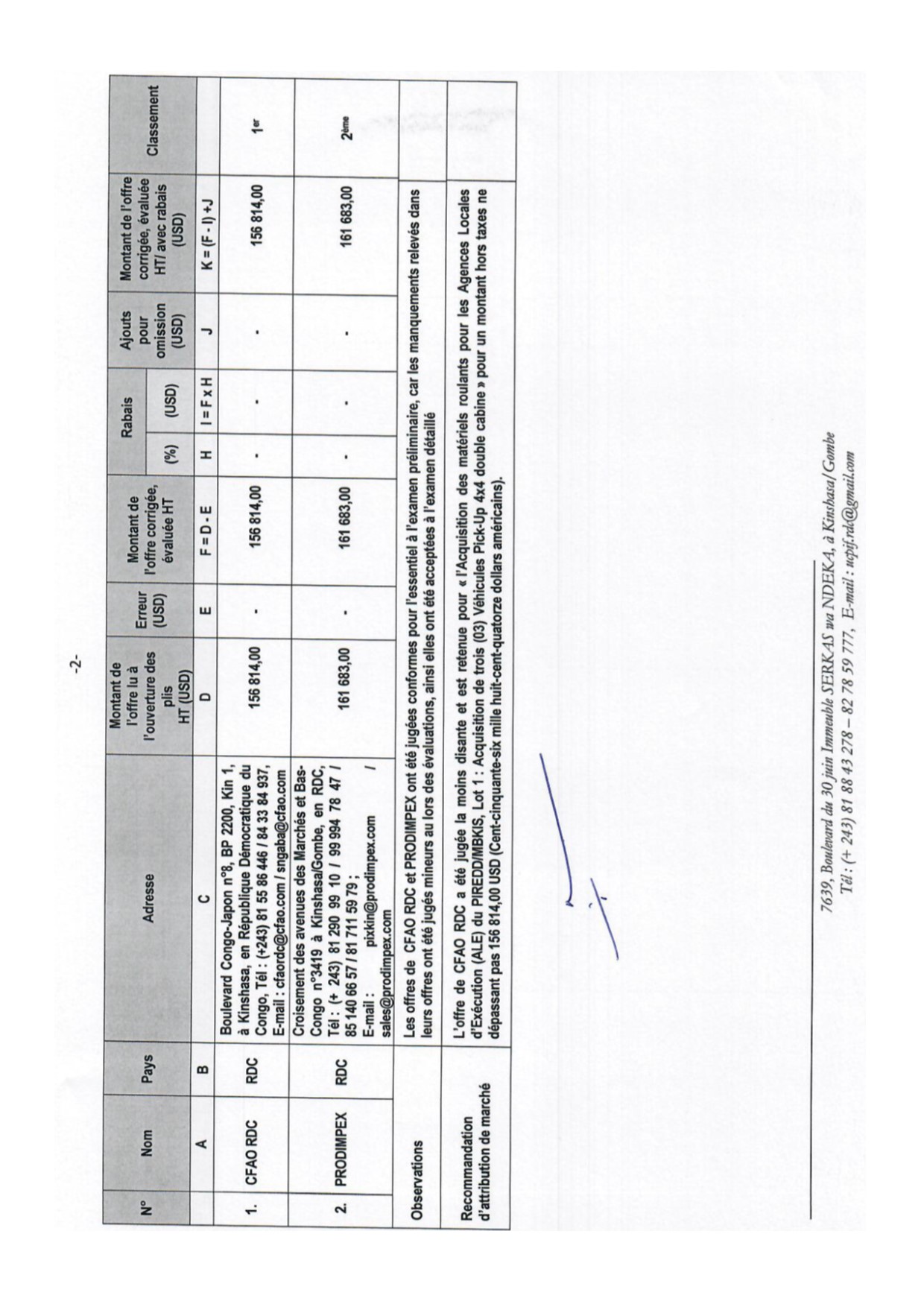Attribution provisoire du marché relatif à la fourniture des véhicules a l’entreprise CFAO-RDC