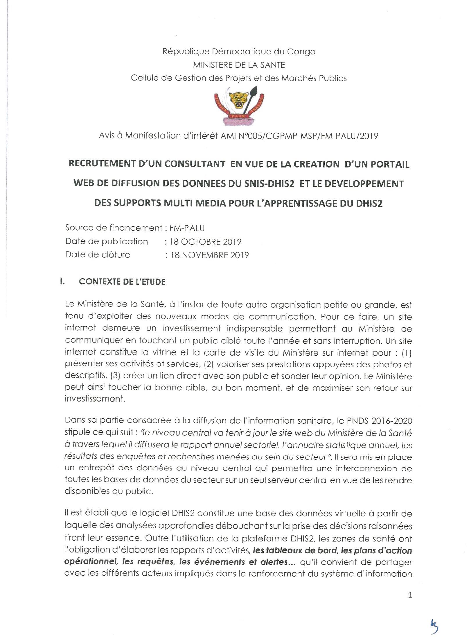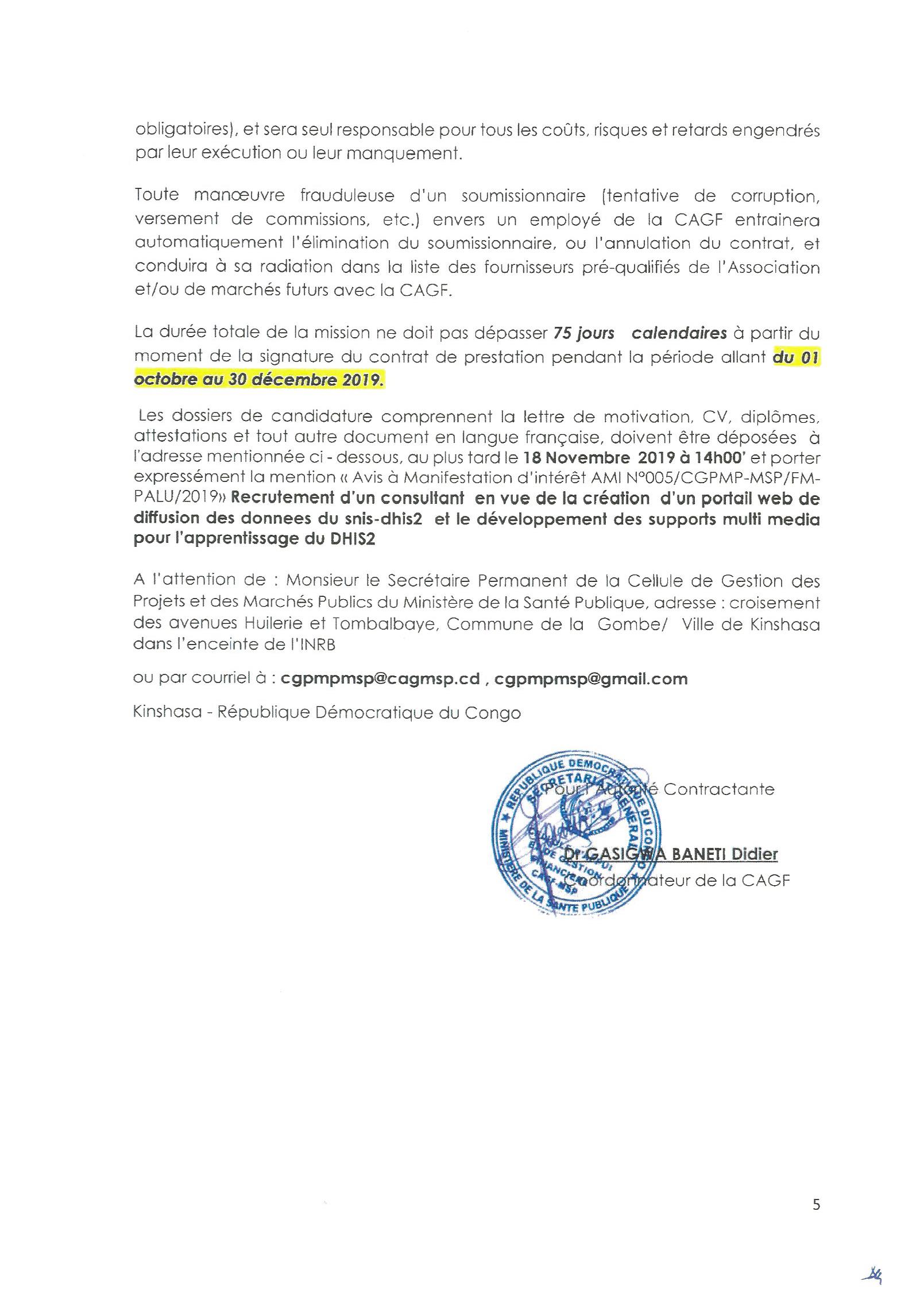 IMPRESSION, REPRODUCTION ET LIVRAISON DES OUTILS DE COLLECTE DES DONNÉES DU PNLS, MODIFIE L’AVIS PUBLIÉ EN DATE DU 26/10/2018 PAR LA CGPMP-MSP AU POINT 6 RELATIF À UNE RÉUNION PRÉPARATOIRE ; …