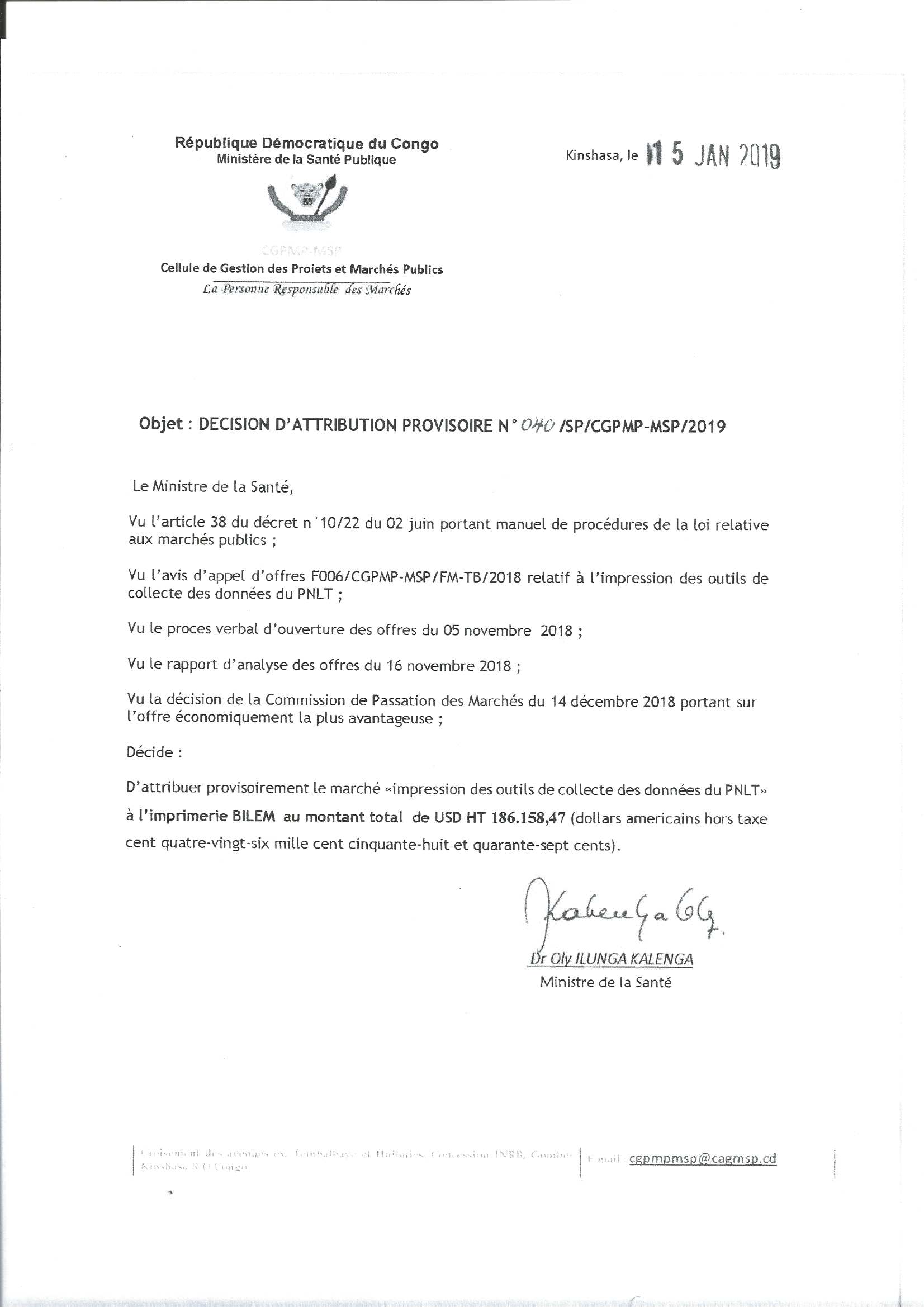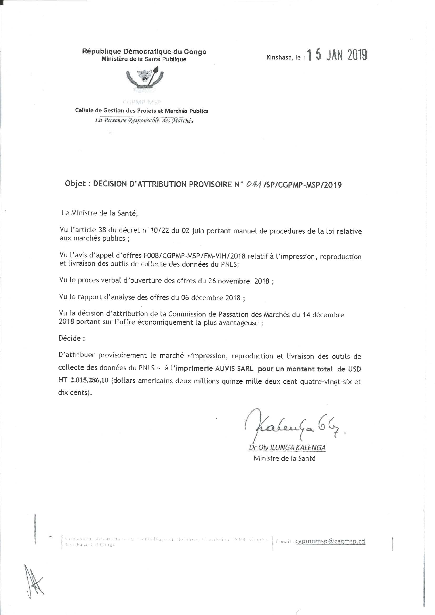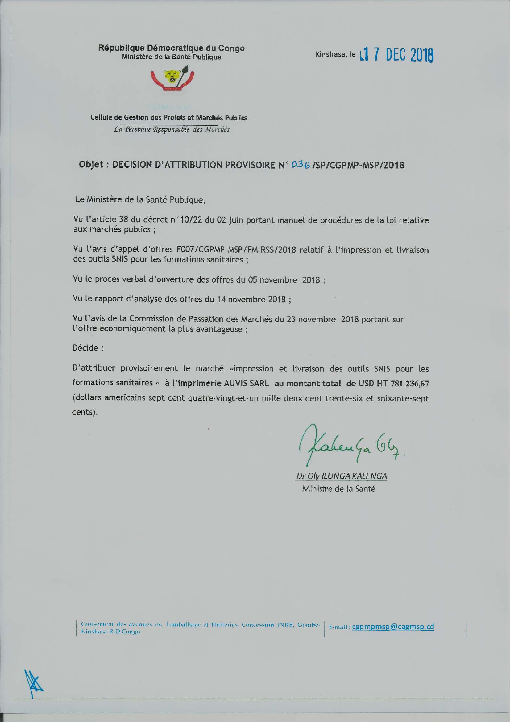 Marché d’impression et livraison des snis pour les formations sanitaires à l’imprimerie auvis sarl.