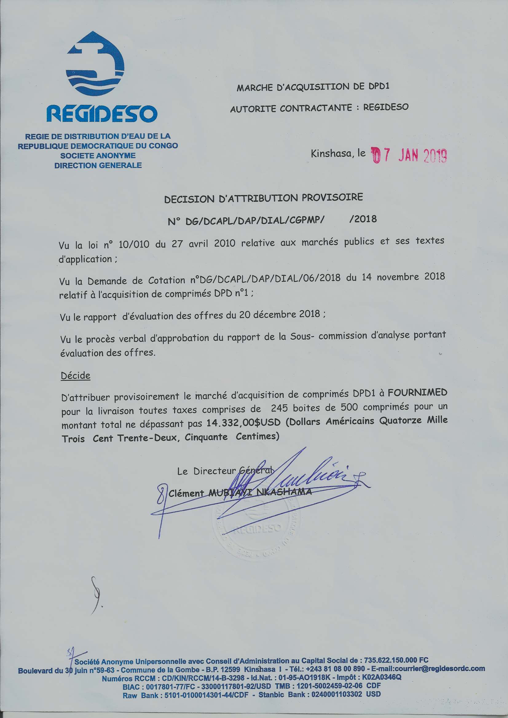 Attribution provisoire du marché d’acquisition de comprimés (dpd1) à fournimed.