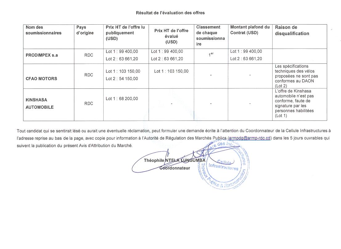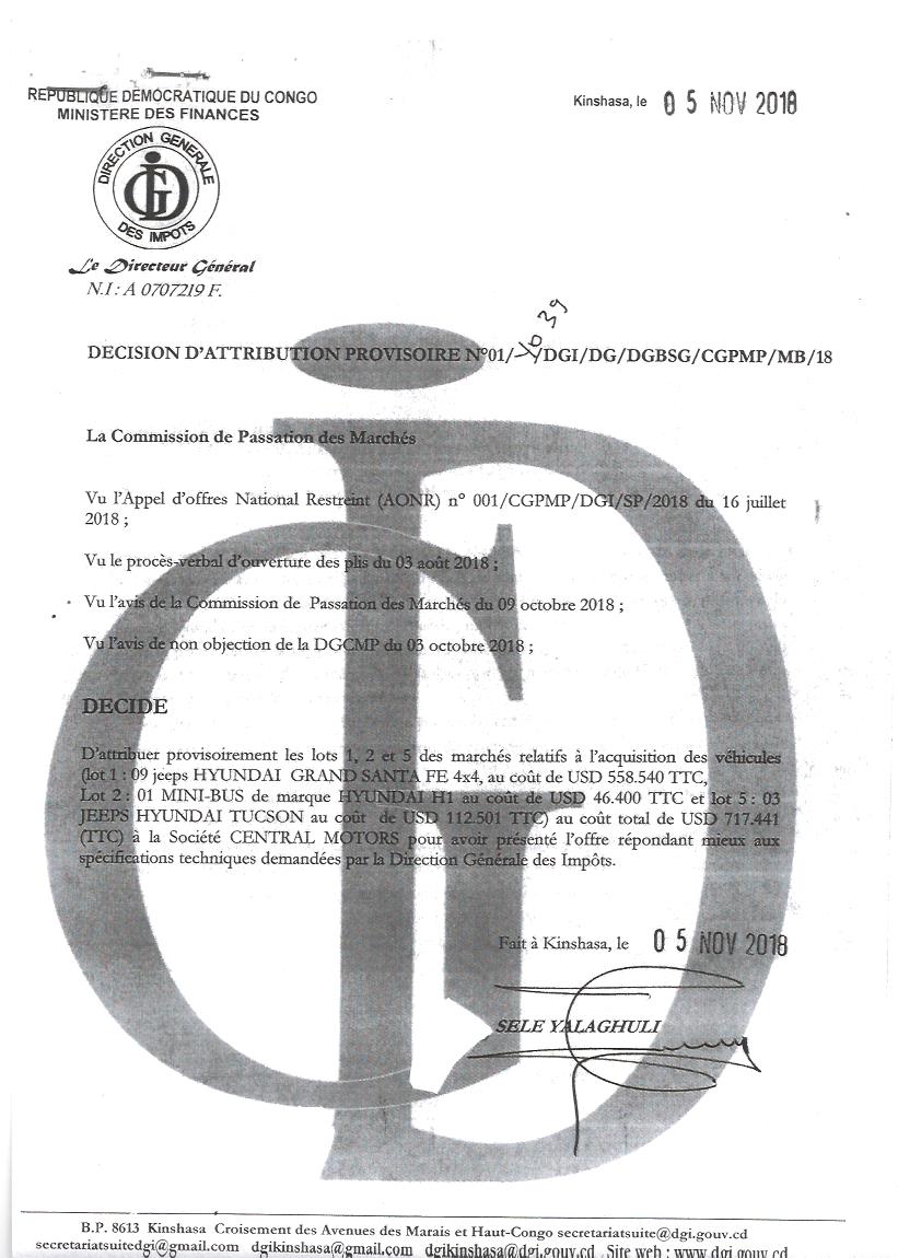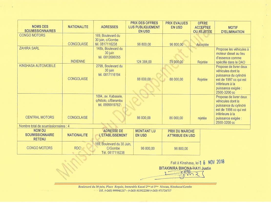 Attribution provisoire du marché d’acquisition des véhicules terrestres pour la direction administrative et financière « DAF » à la société CONGO MOTORS