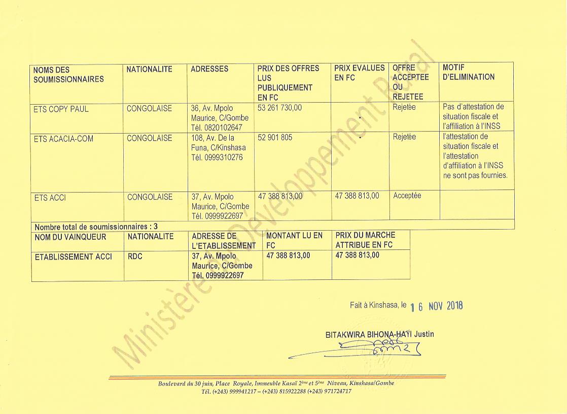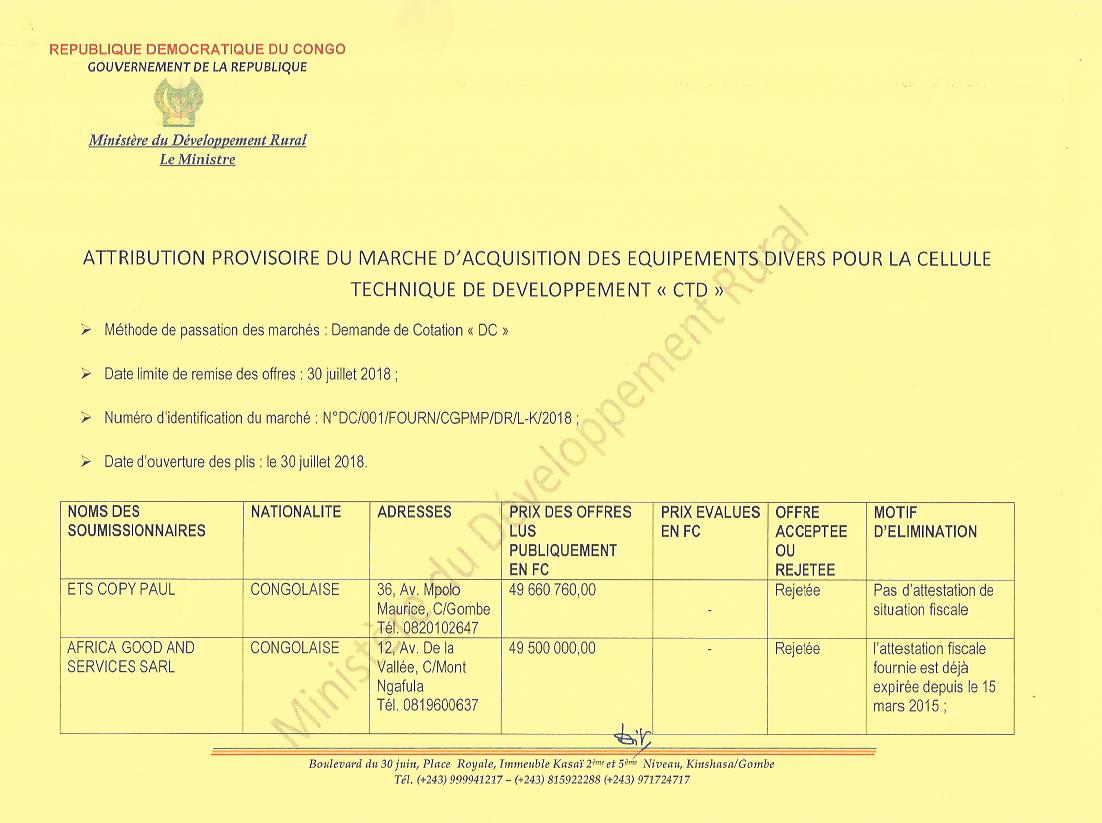 Attribution provisoire du marché d’acquisition des équipements divers pour la cellule technique de développement « ctd » à l’établissement acci.
