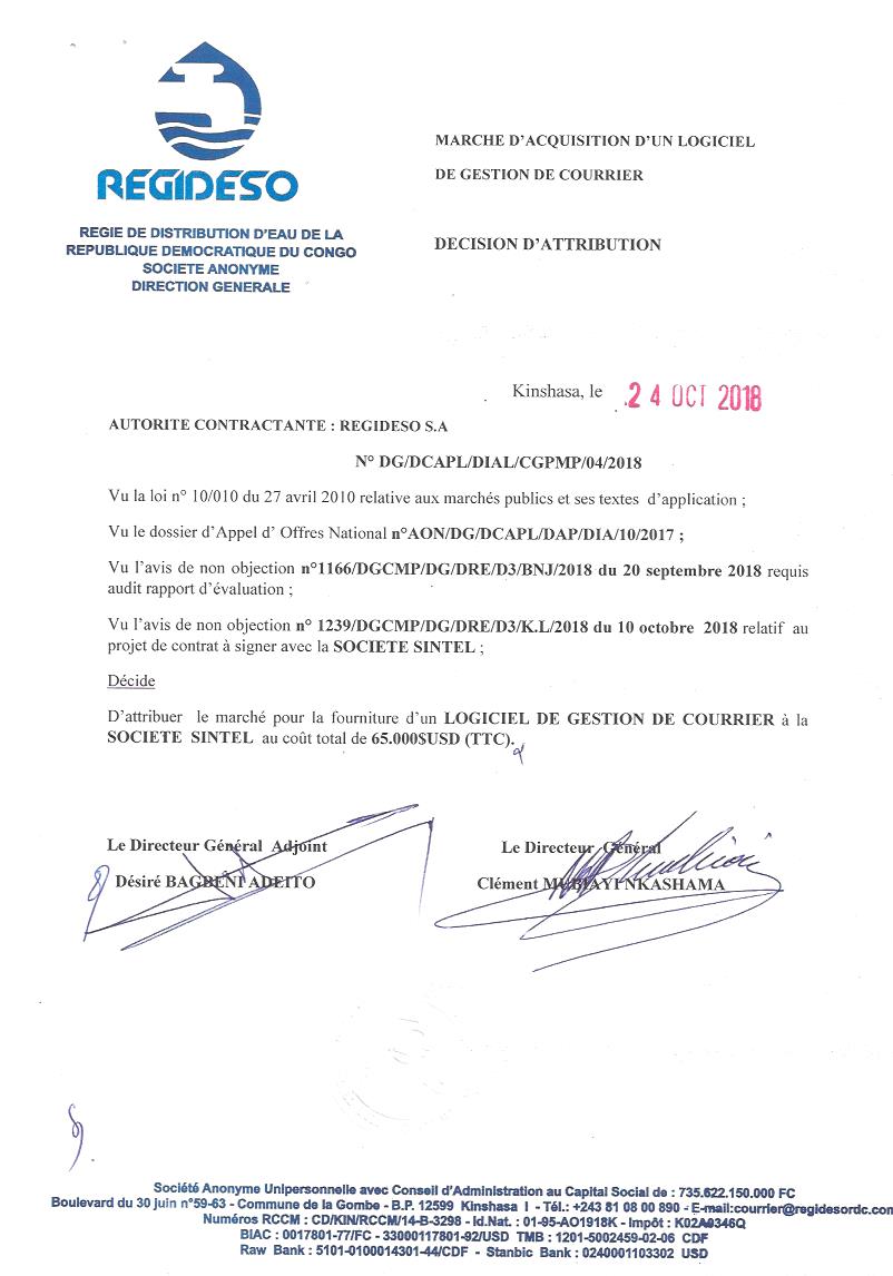 Attribution du marché relatif à la fourniture d’un logiciel de gestion de courrier à la société SINTEL.