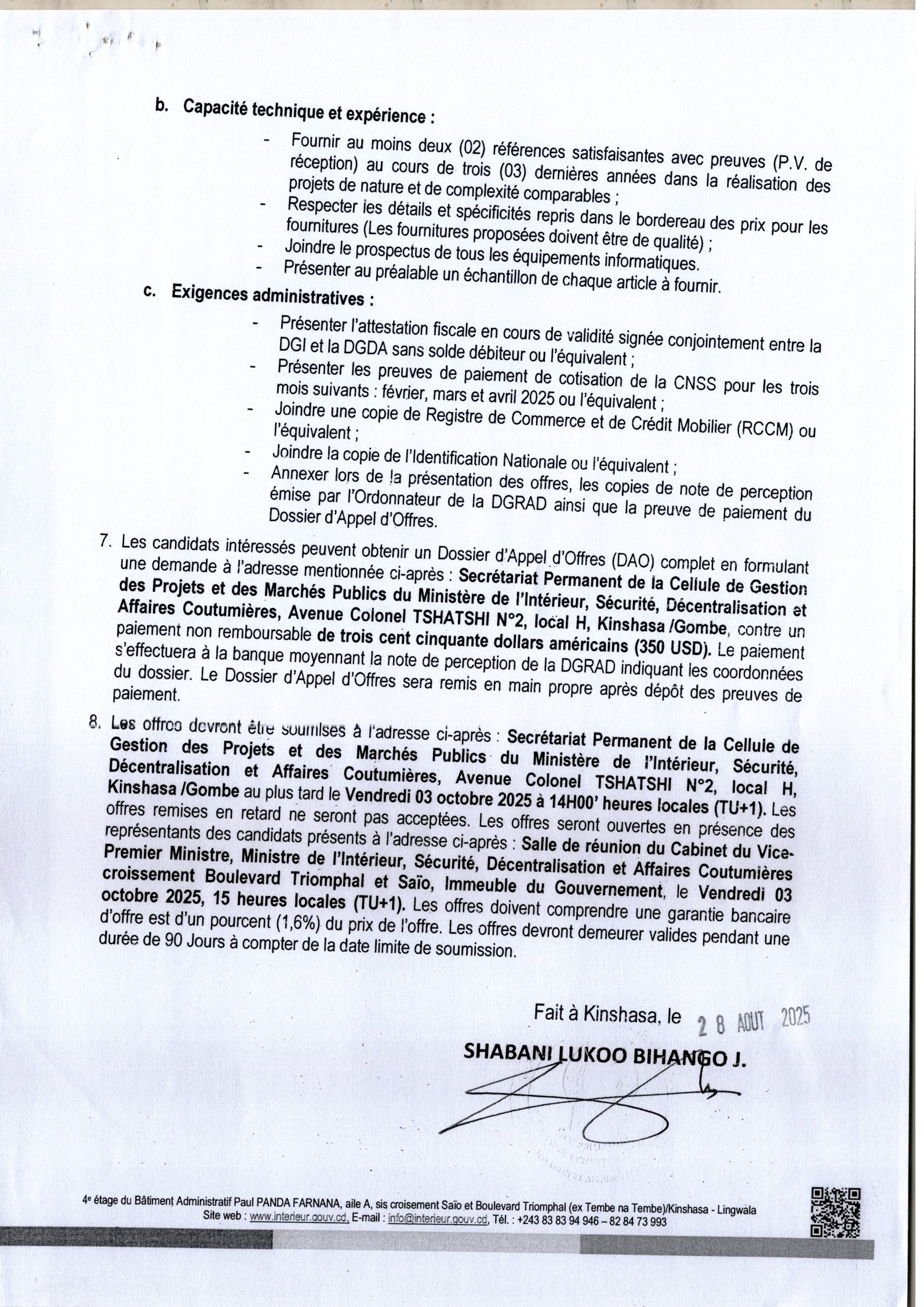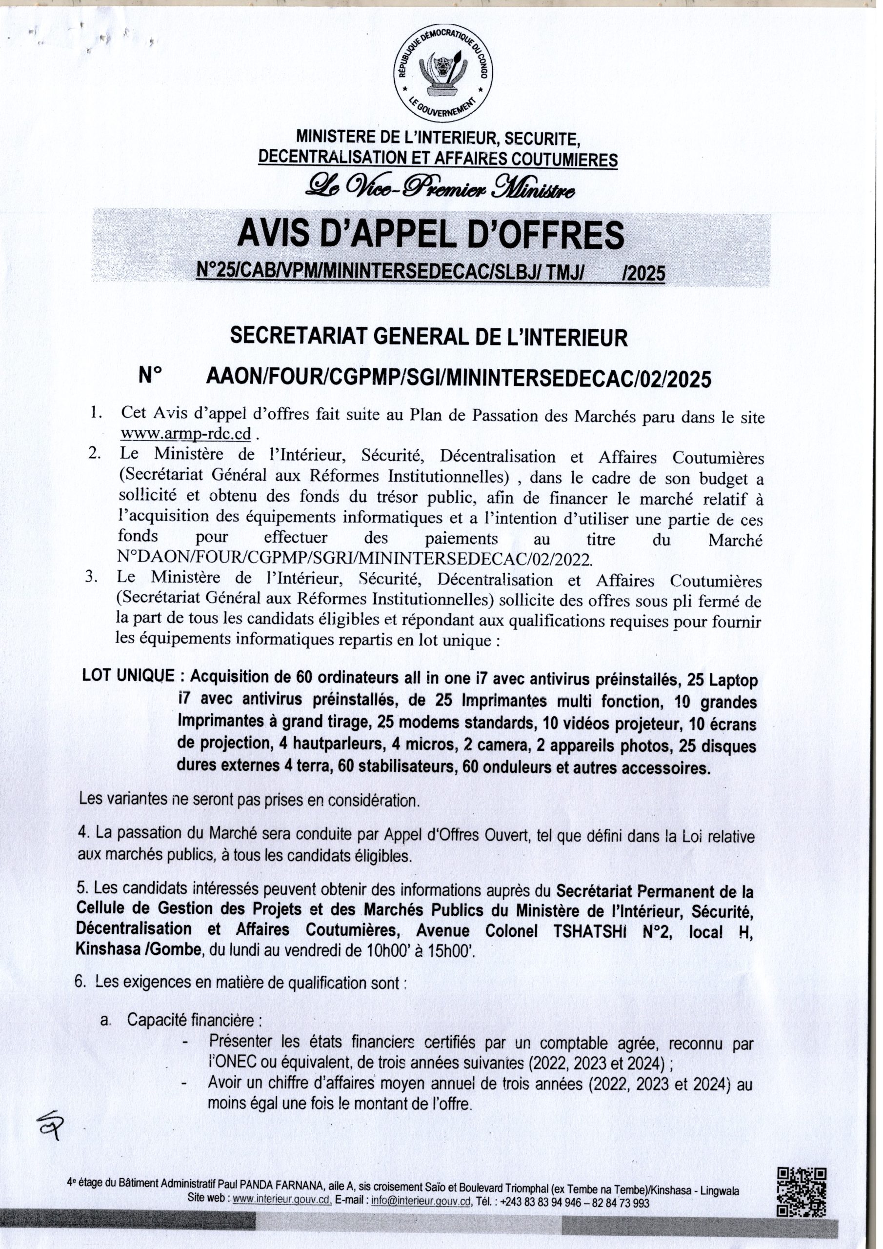 Attribution provisoire accordée à la société CUPRO LABO SARL relative à l’acquisition des réactifs de laboratoire national de contrôle qualité de Kinshasa au profit de l’Autorité Congolaise de Règlementation Pharmaceutique.