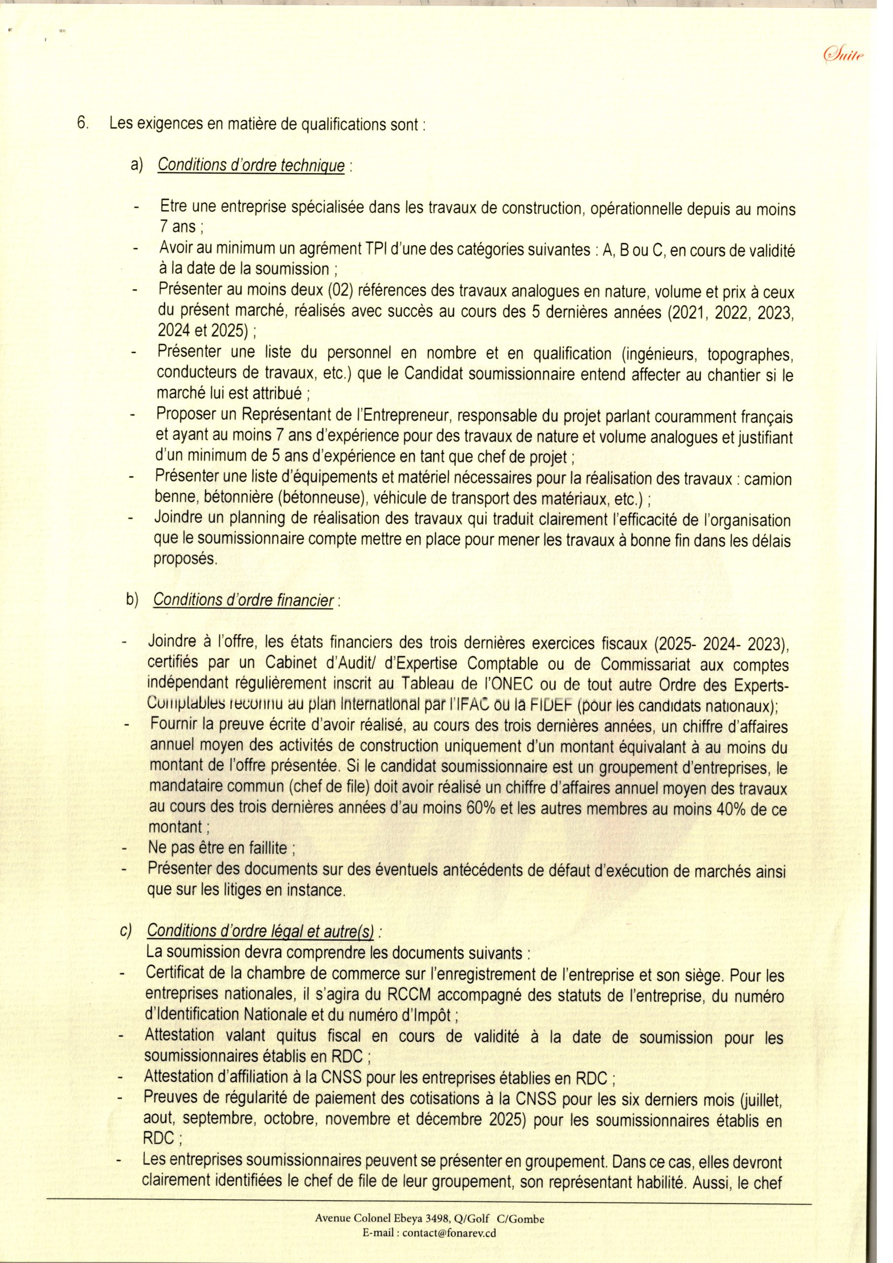 Recrutement d’un consultant (firme) pour l’audit financier et de passation des marches de la Régie des Voies Aériennes (RVA), exercices 2025 et 2026.