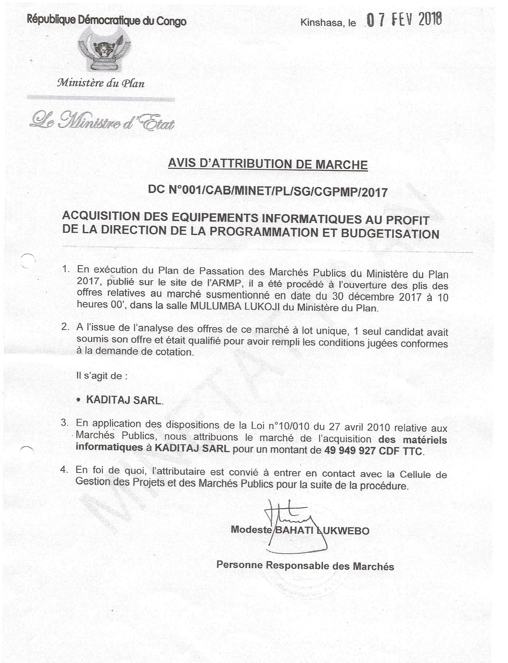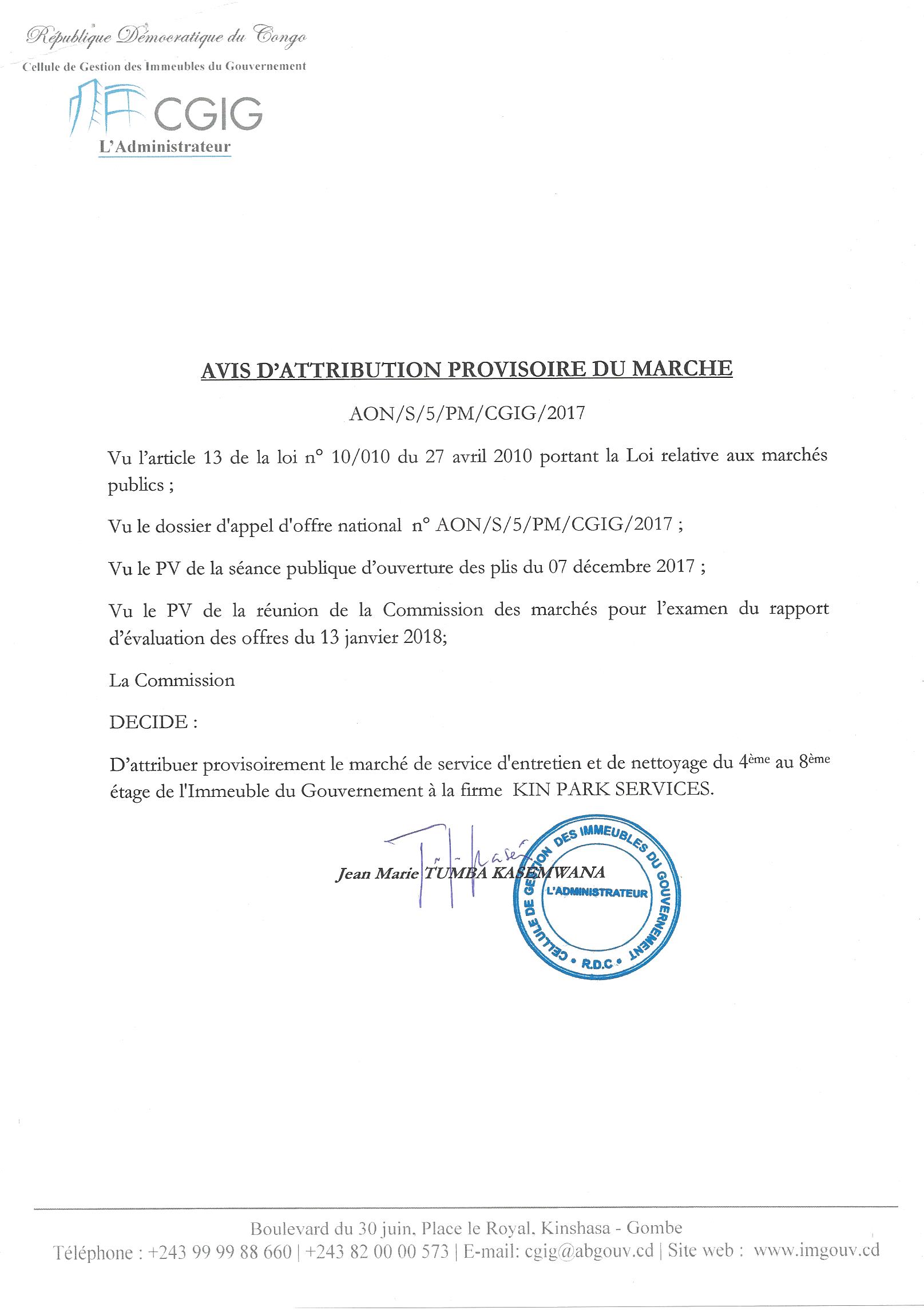 Attribution provisoire accordée à la société AEG Congo relative au marché d’acquisition de générateurs électriques/ systèmes solaires