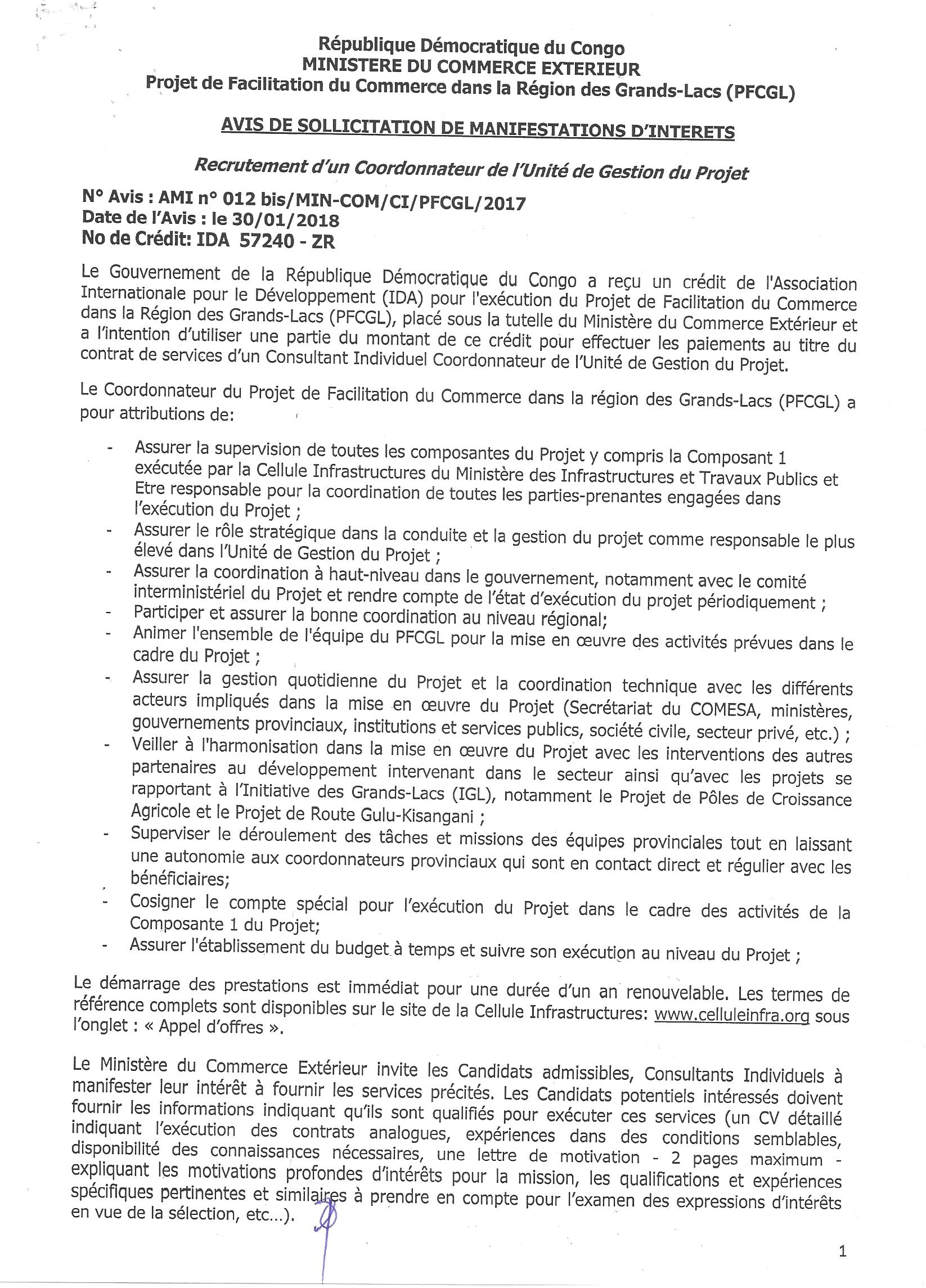 Recrutement d’un Consultant(Firme) chargé du Plan Directeur d’alimentation en eau potable des villes de Likasi et Kolwezi – horizon 2035 et l’APS du programme d’investissement prioritaire
