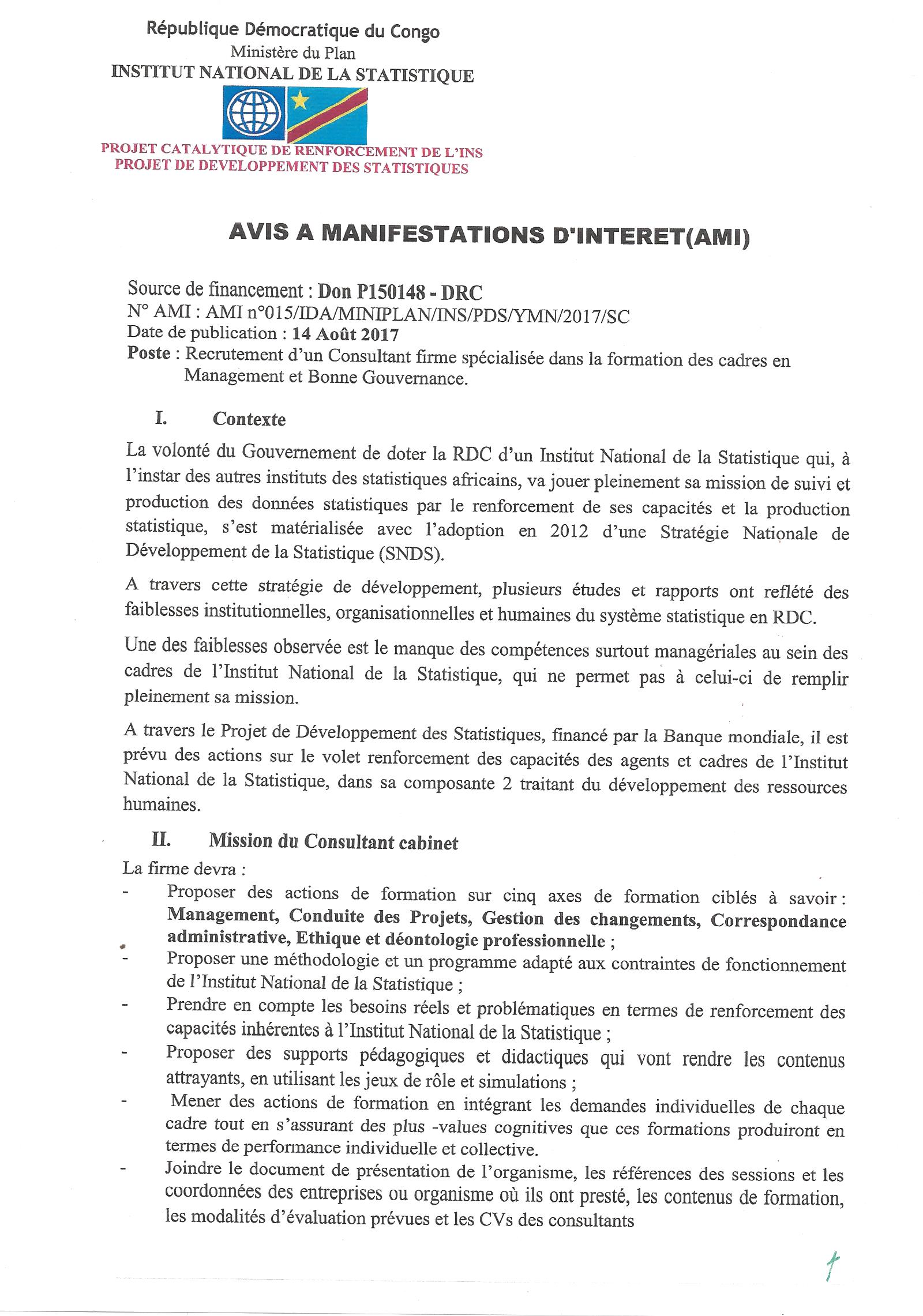Recrutement d’un Consultant firme spécialisée dans la formation des cadres en Management et Bonne Gouvernance.
