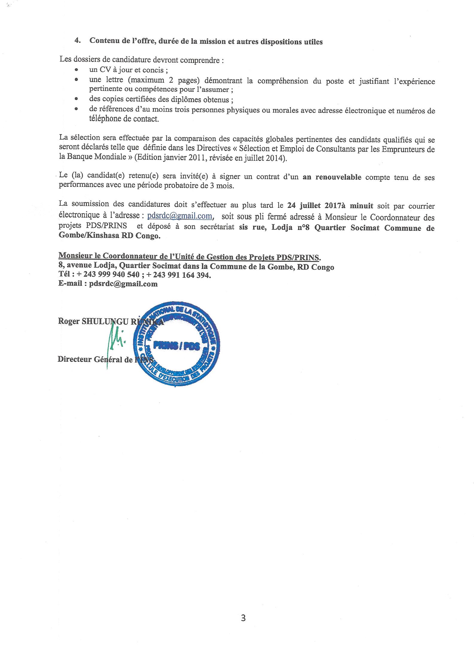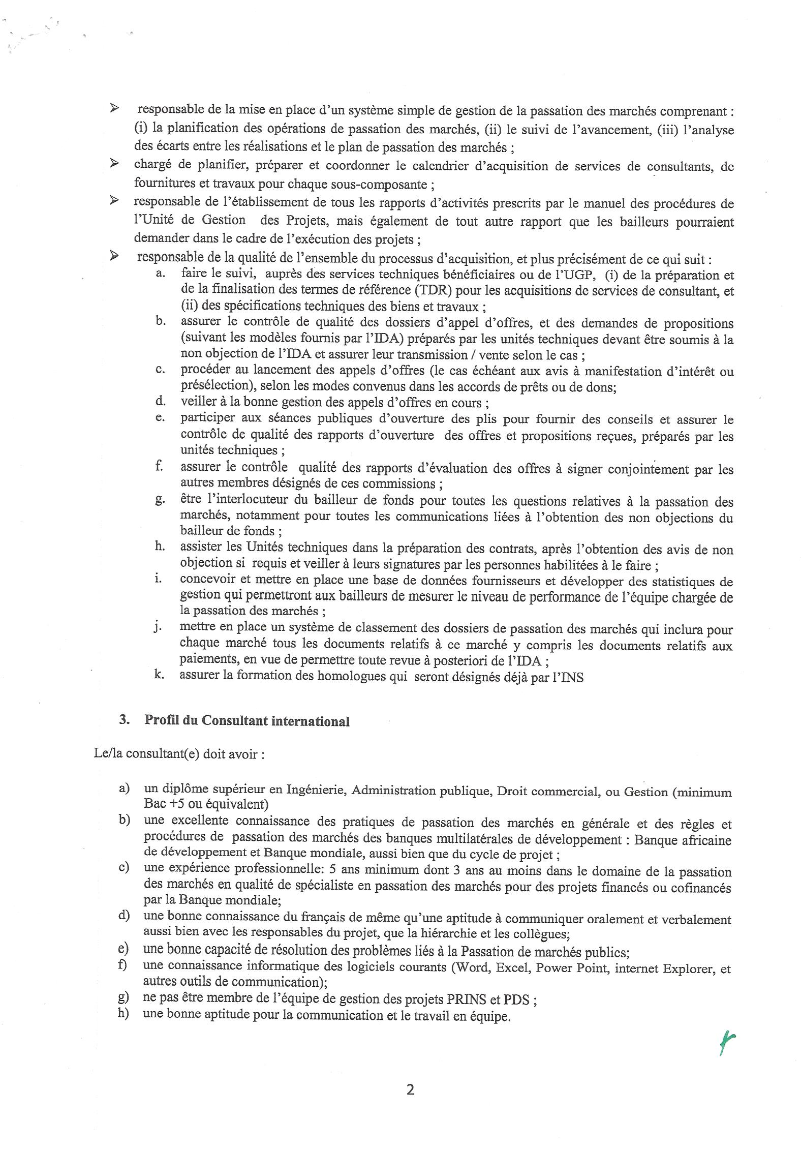 Recrutement d’un Consultant international – Expert (e)en Passation des Marchés pour les projets PRINS et PDS.