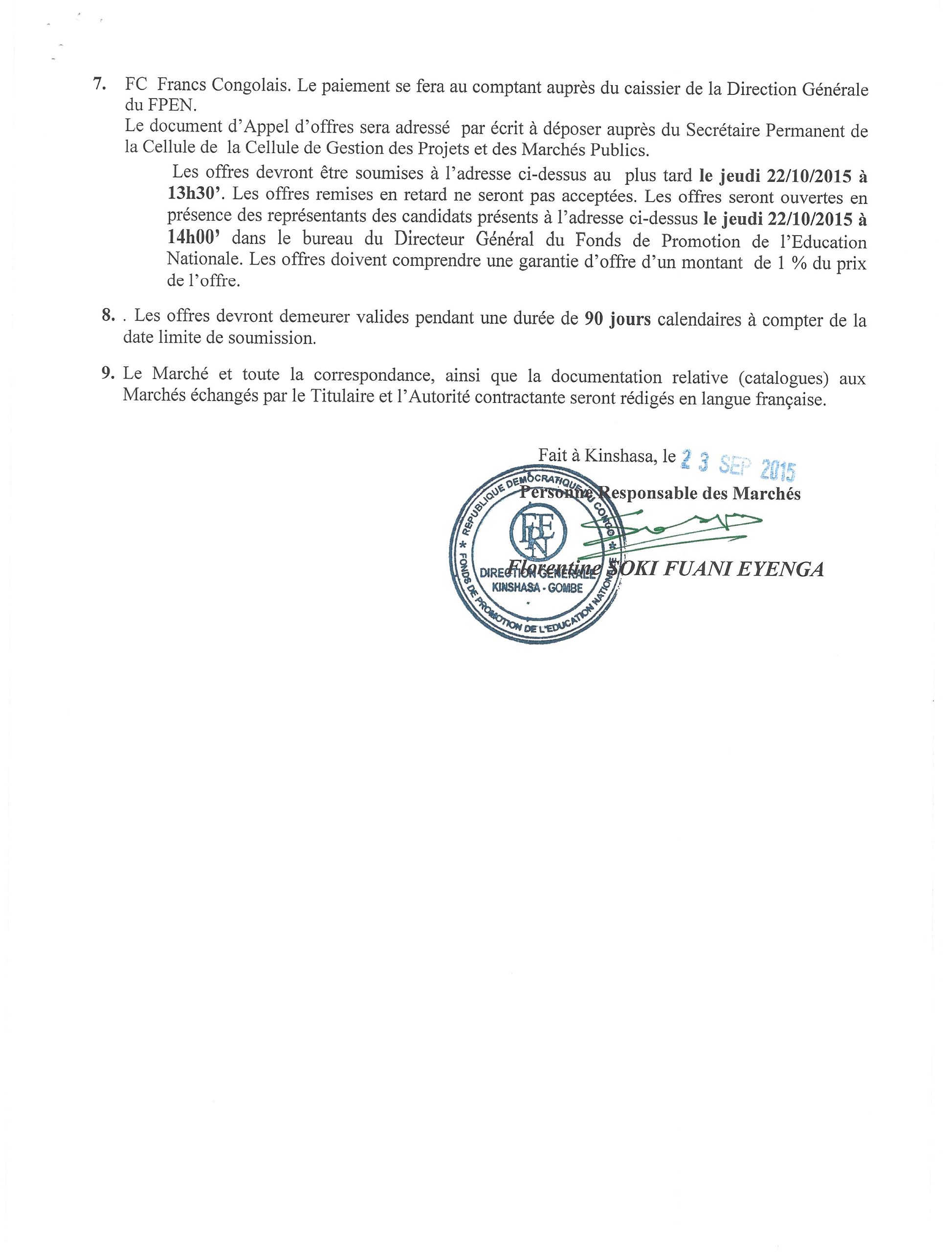 Attribution provisoire au prestataire de service mful-a-mpungu du marché relatif aux services d’entretien des climatiseurs pour le COPIREP