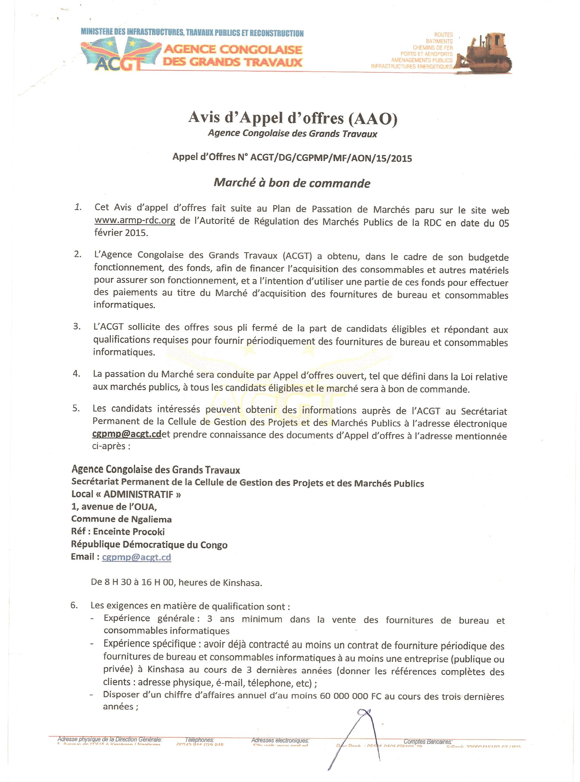 Marché d’acquisition des fournitures de bureau et consommables informatiques.