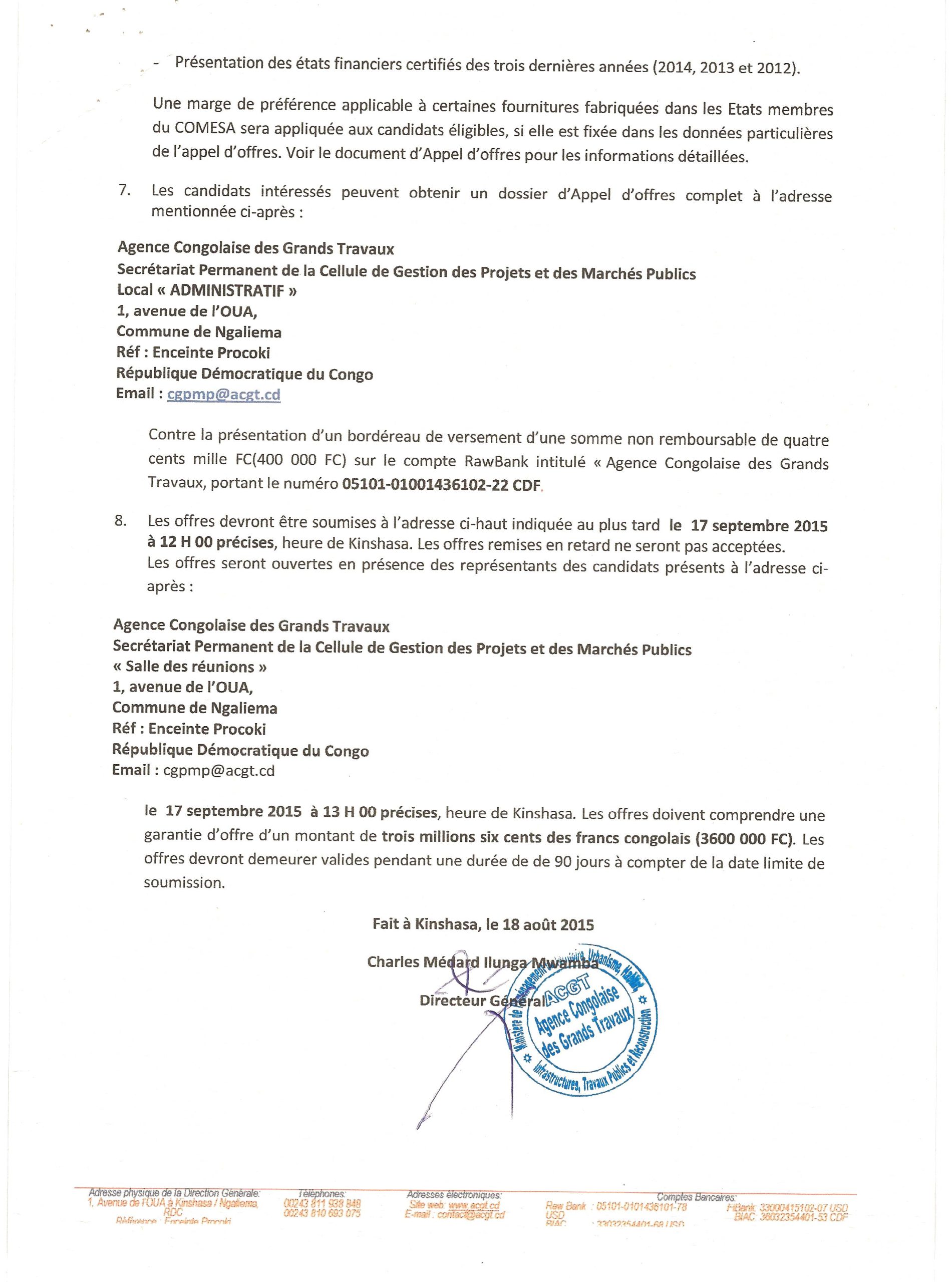 Attribution définitive accordée à l’entreprise « société congolaise de construction moderne (SCCM) du marché relatif à la fourniture et l’installation des mobiliers dans les sept (7) immeuble en réhabilitation à la place le royal à KINSHASA-GOMBE.