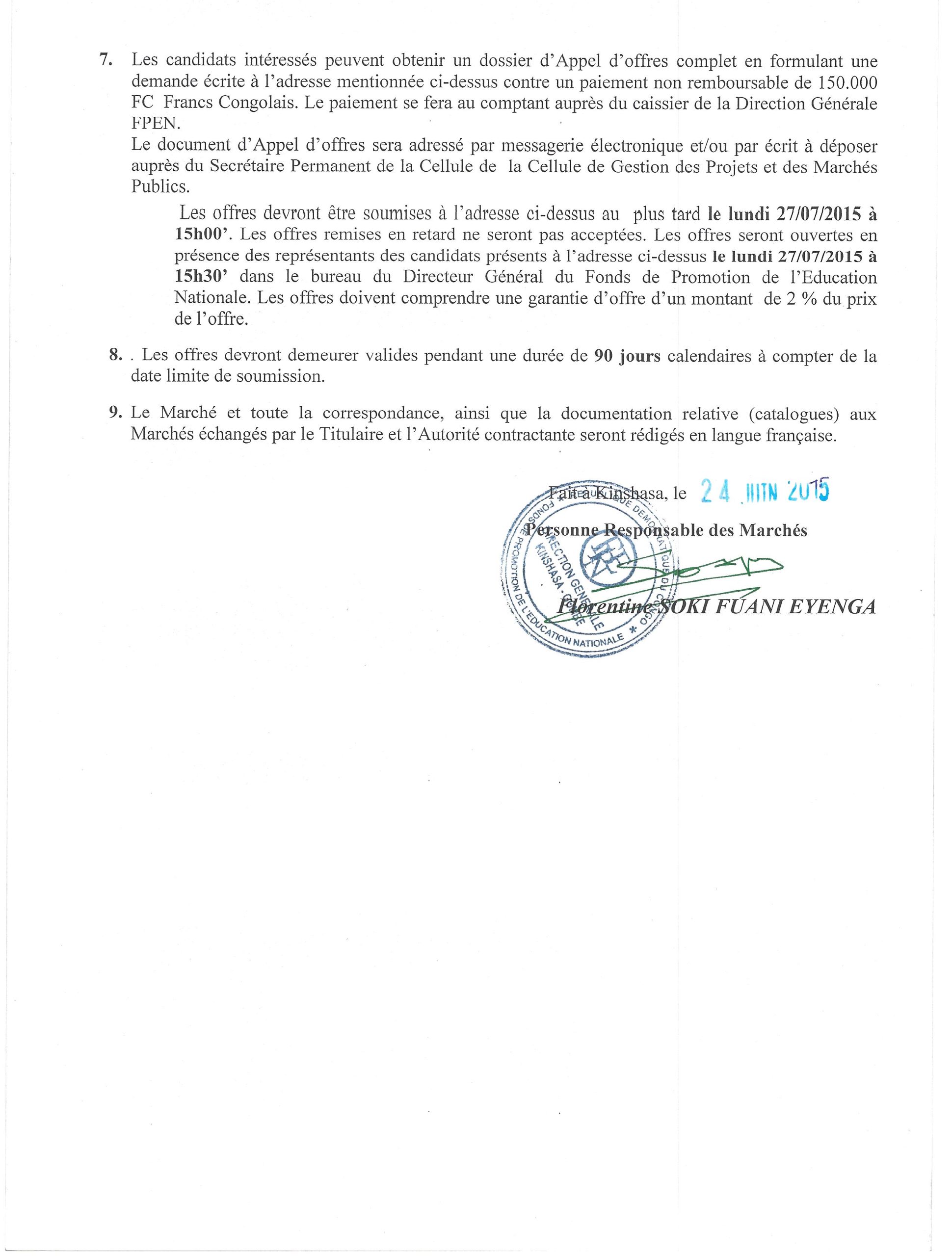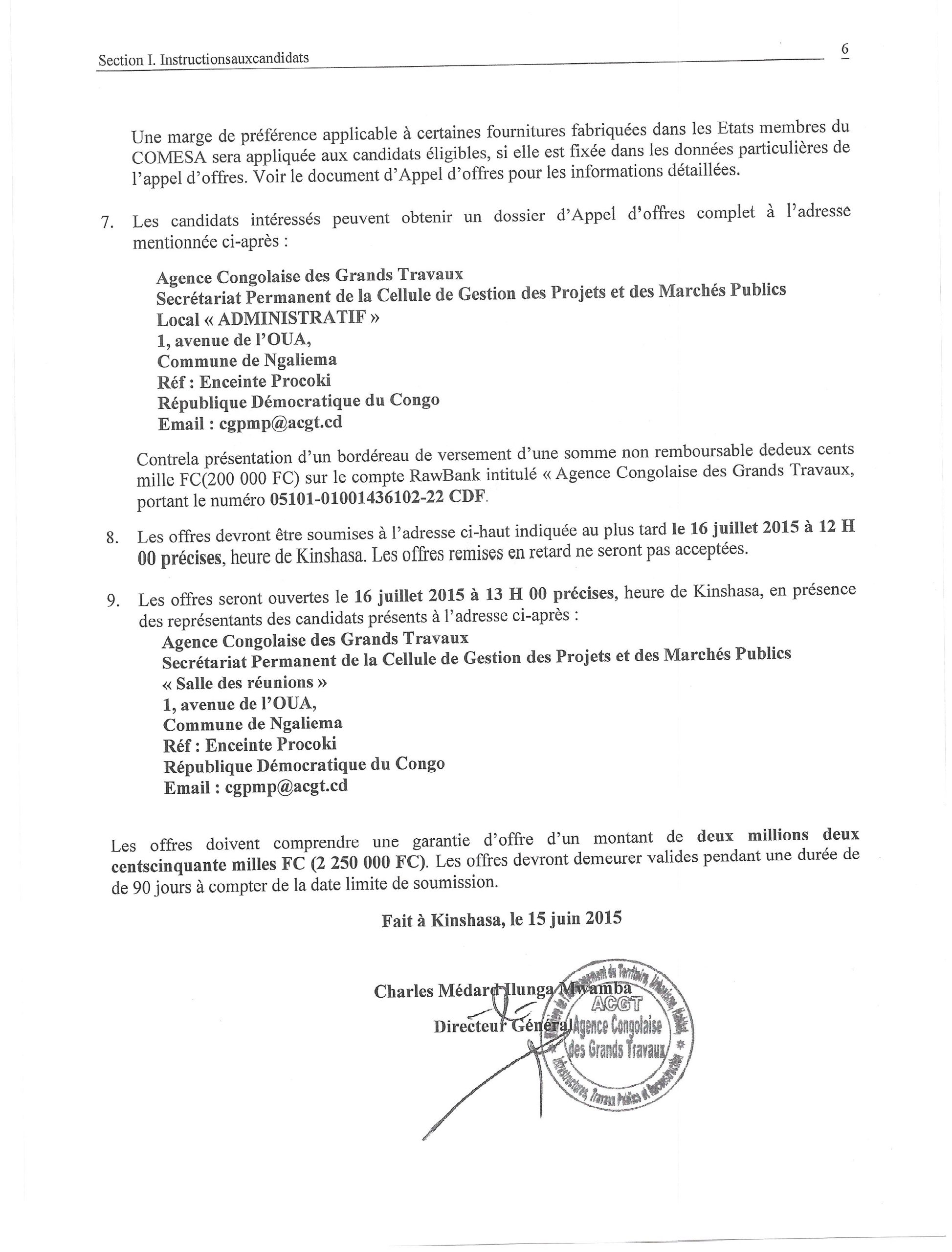 attribution provisoire accordée à l’entreprise « PAN CHINA CONSTITUTION GROUP » du marché relatif à la fourniture, l’installation et la mise en service de vingt-huit (28) ascenseurs dans les sept (7) immeubles en réhabilitation à la place le royal à Kinshasa- Gombe.