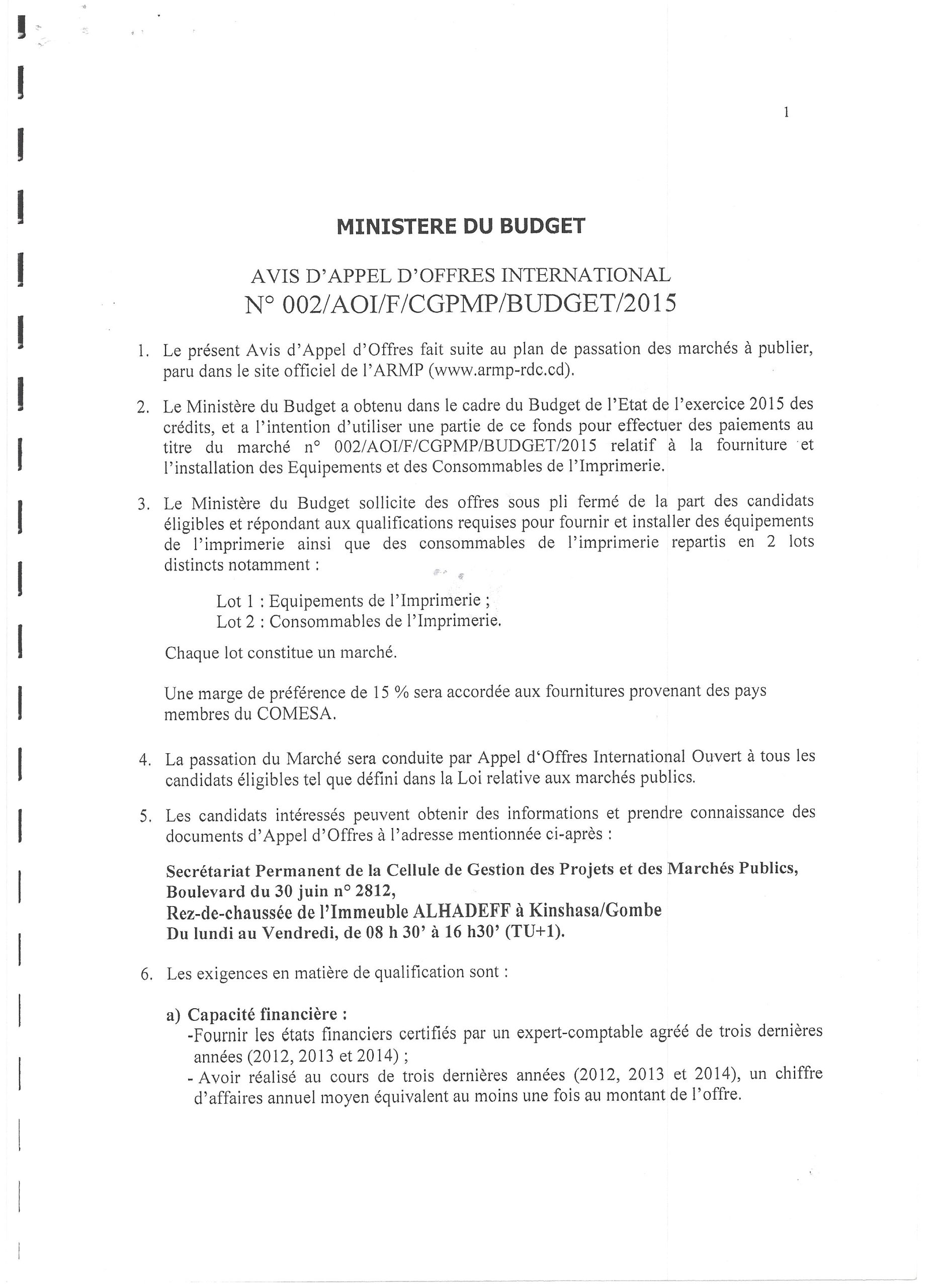 Marché relatif à la fourniture et l’installation des Equipements et des Consommables de l’Imprimerie.