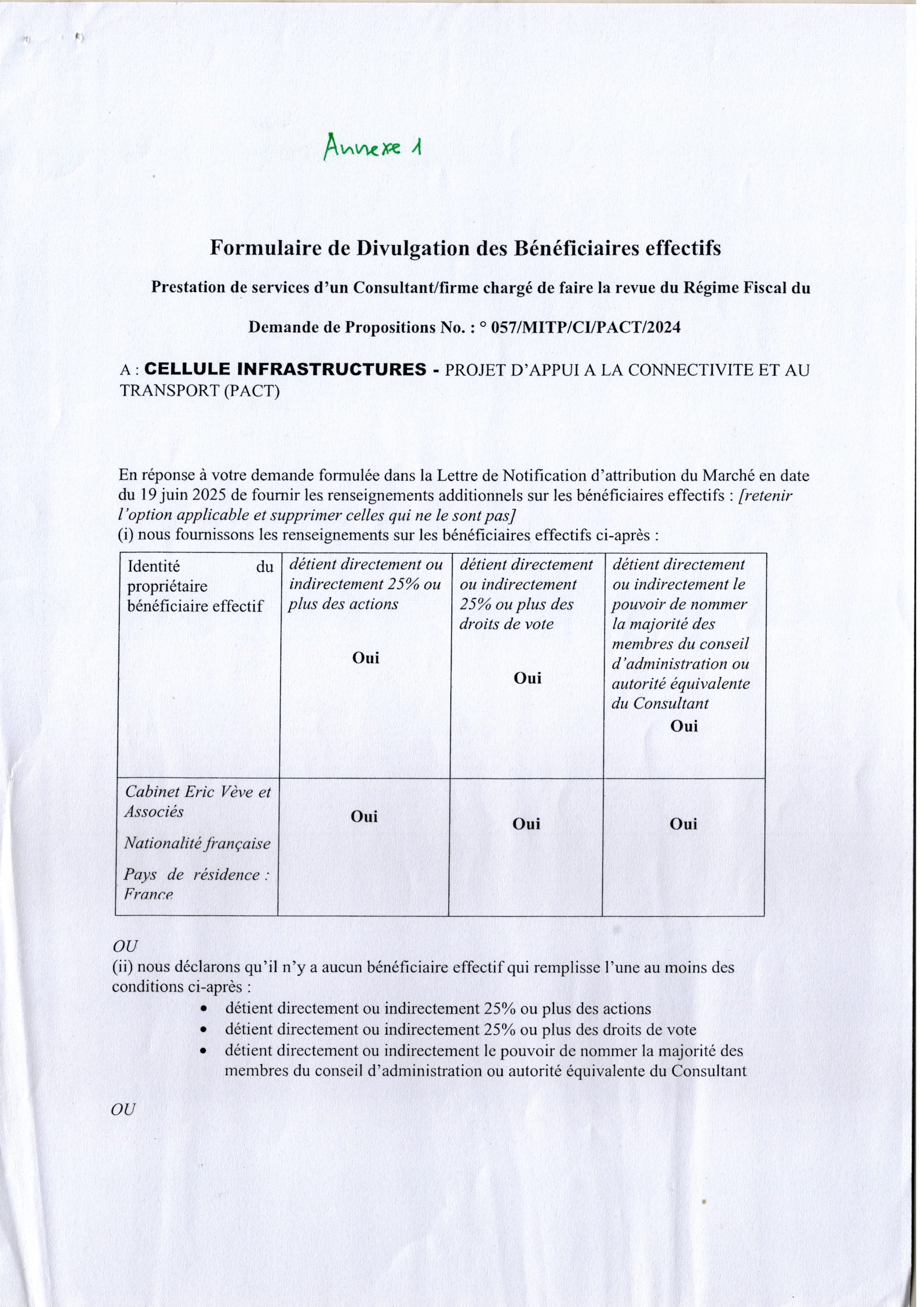 Attribution provisoire accordée aux groupement “KLAROFF-IAF CONSTRUCT” le marché relatif au recrutement d’un consultant (Cabinet/Firme) pour la réalisation des études de faisabilité pour l’érection des postes frontaliers à arrêt unique en RDC.