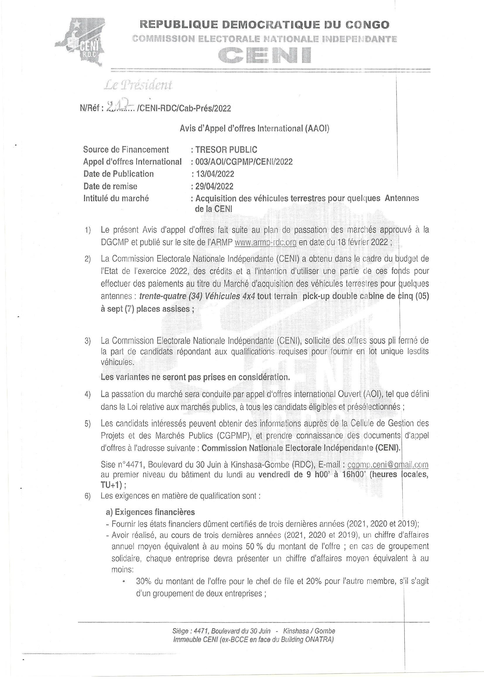 Acquisition (34) véhicules terrestres pour quelques antennes.