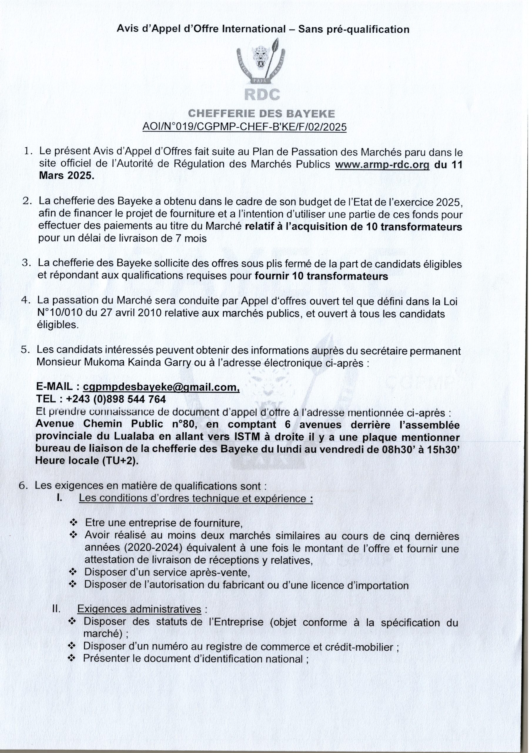 CHEFFERIE DE BAYEKE
