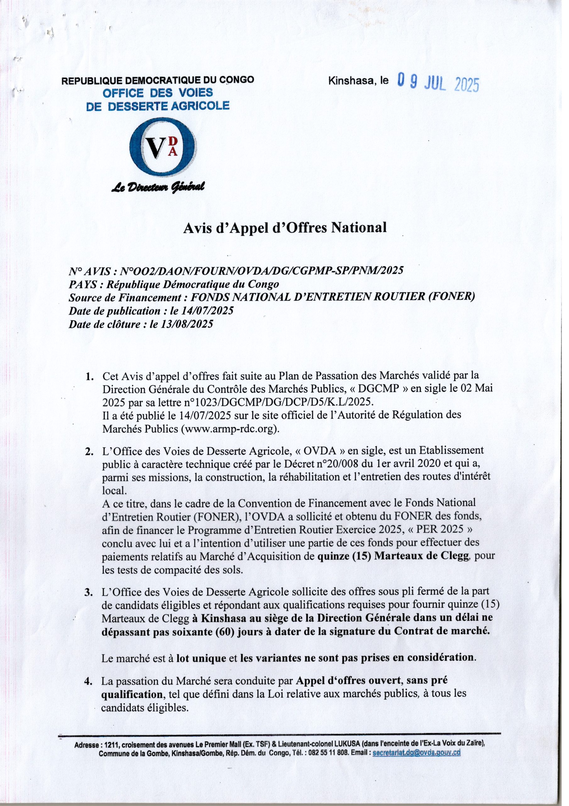 Acquisition de quinze (15) Marteaux de Clegg pour les tests de compacité des sols.