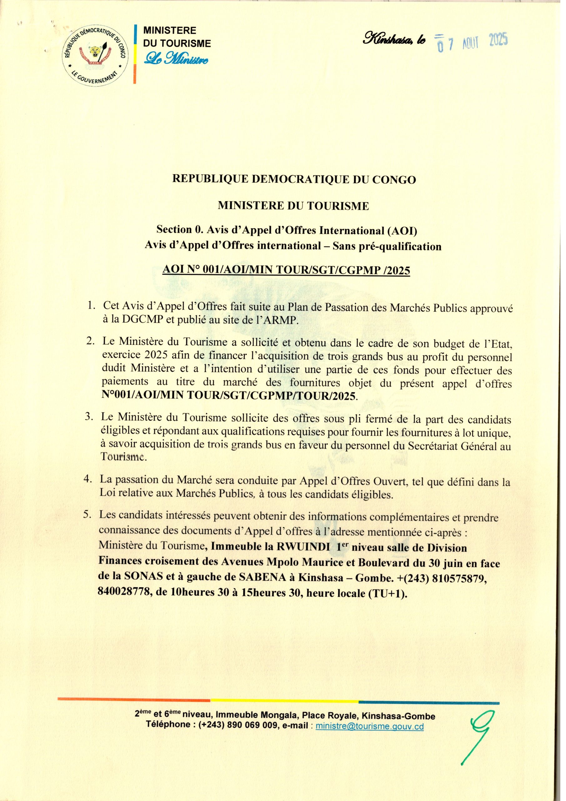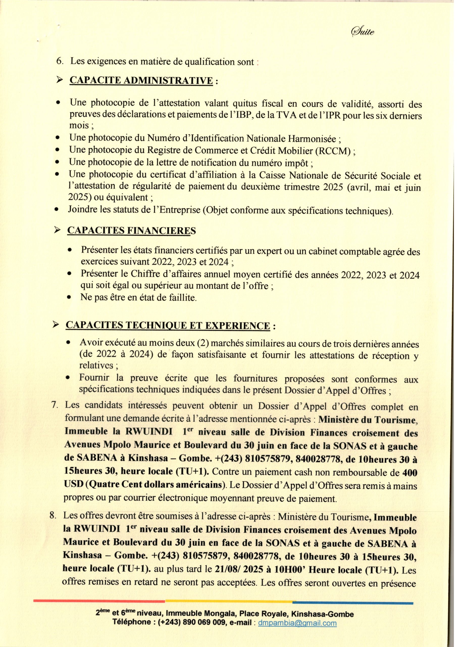 MINISTERE DU TOURISME