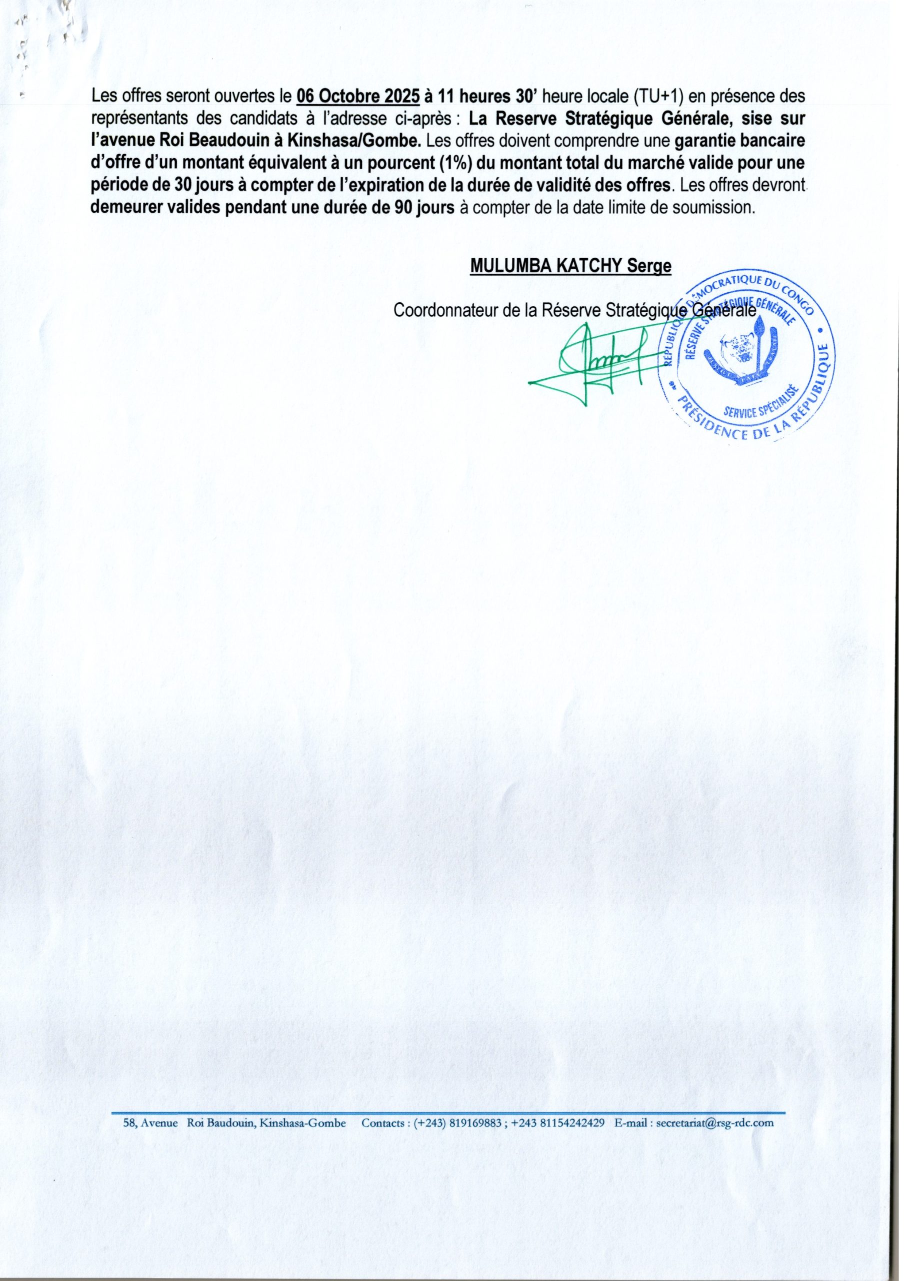 RESERVE STRATEGIQUE GENERALE