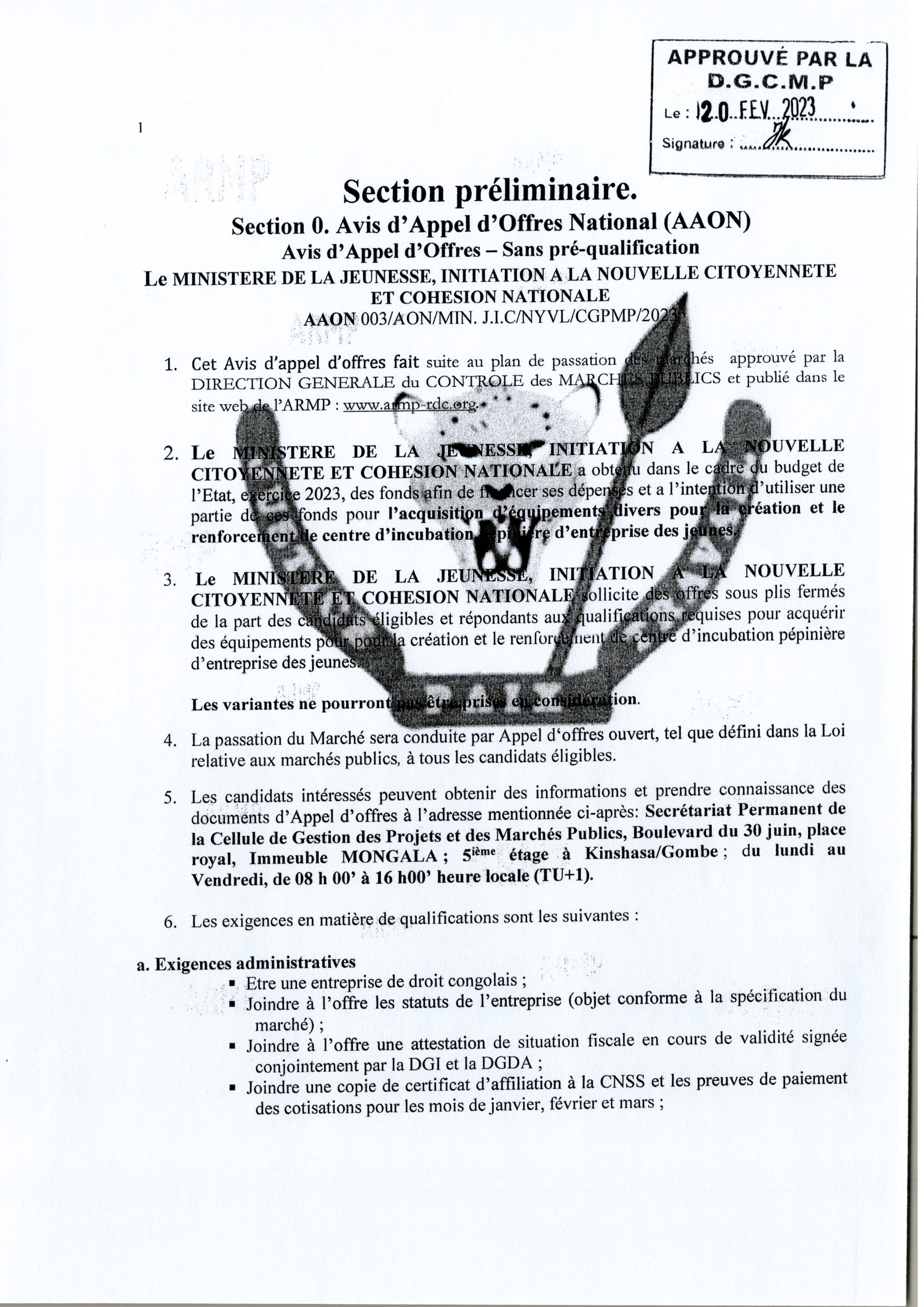 Acquisition d’équipements pour la création et le renforcement de centre d’incubation  pépinière d’entreprise des jeunes.
