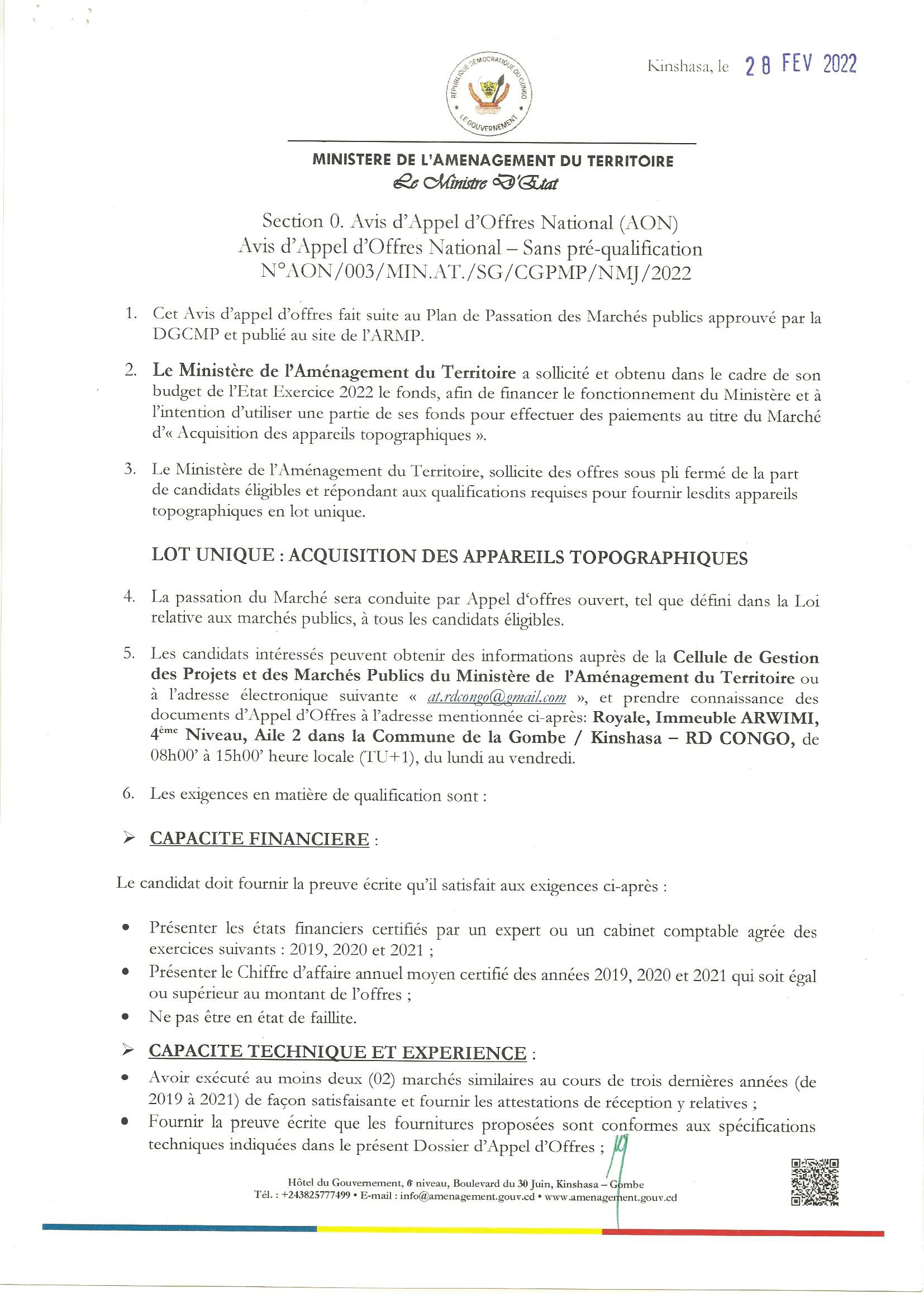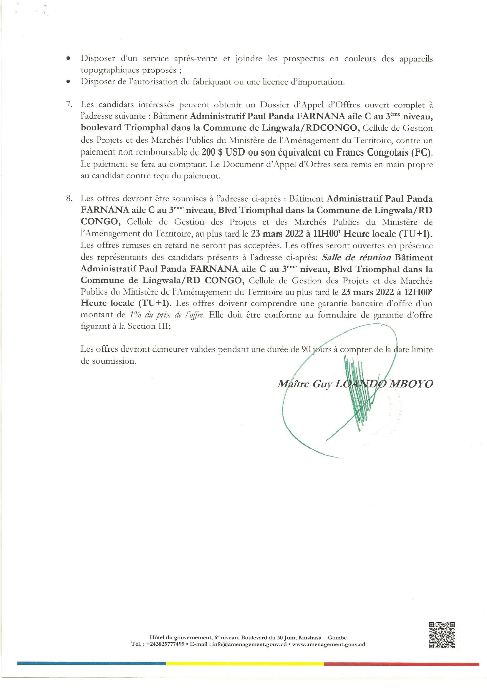 Acquisition des appareils topographiques.